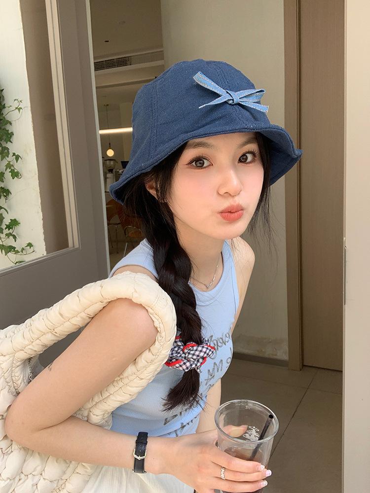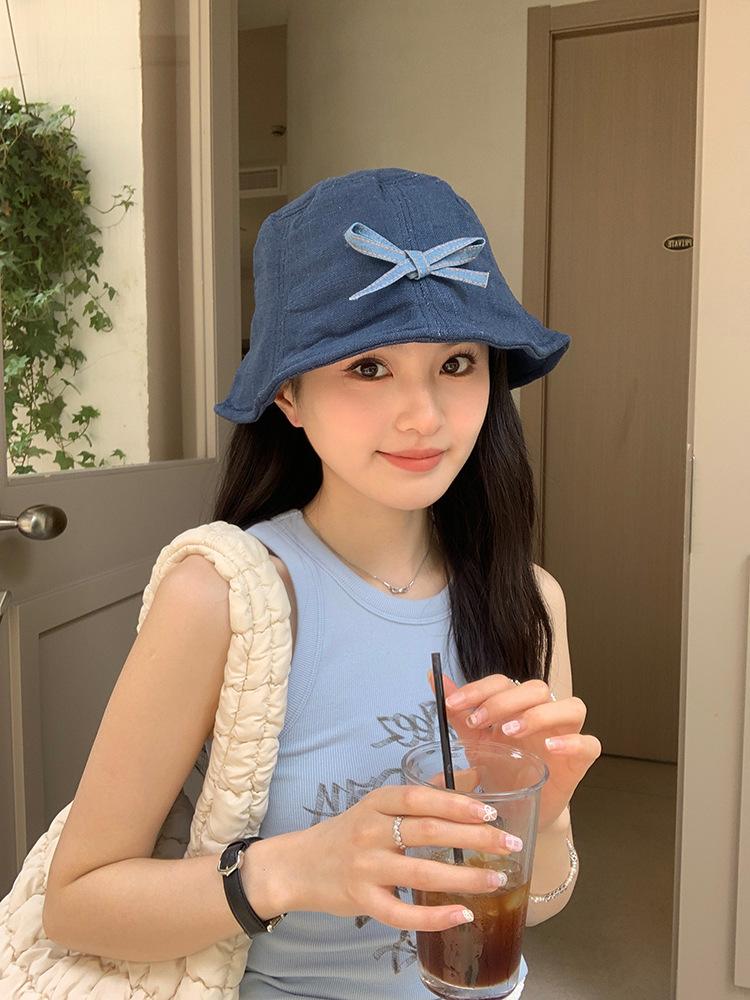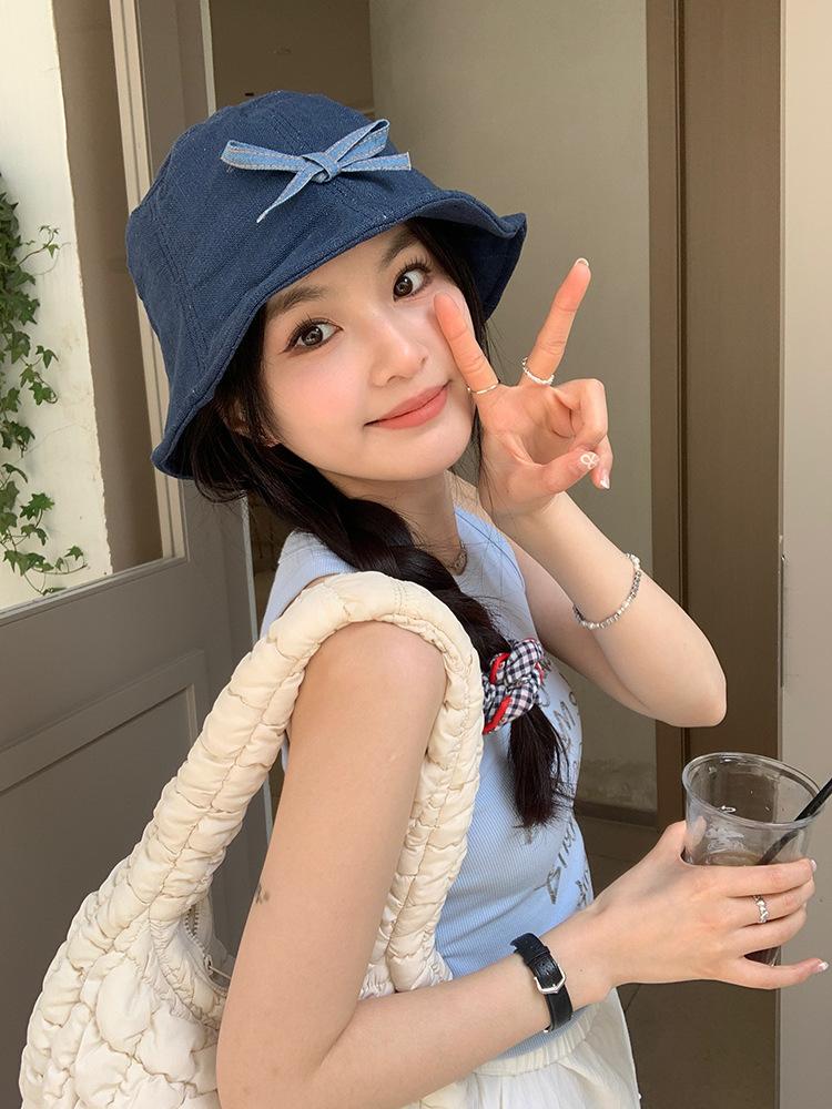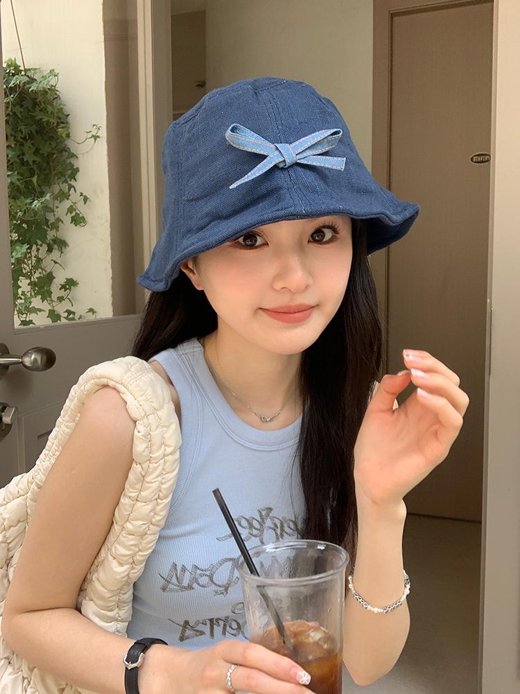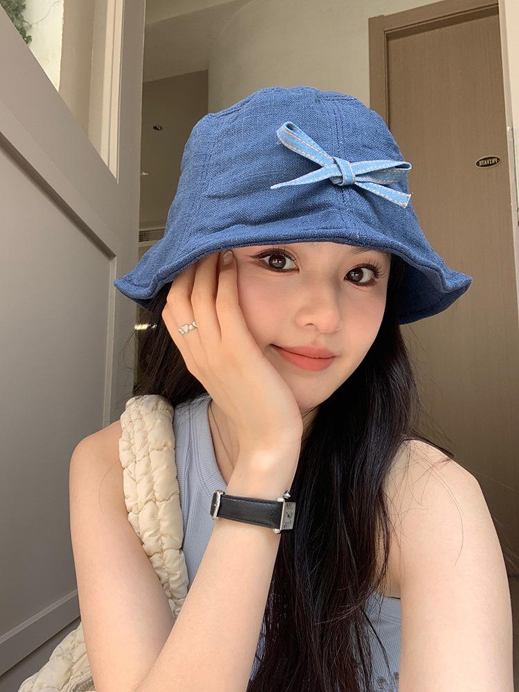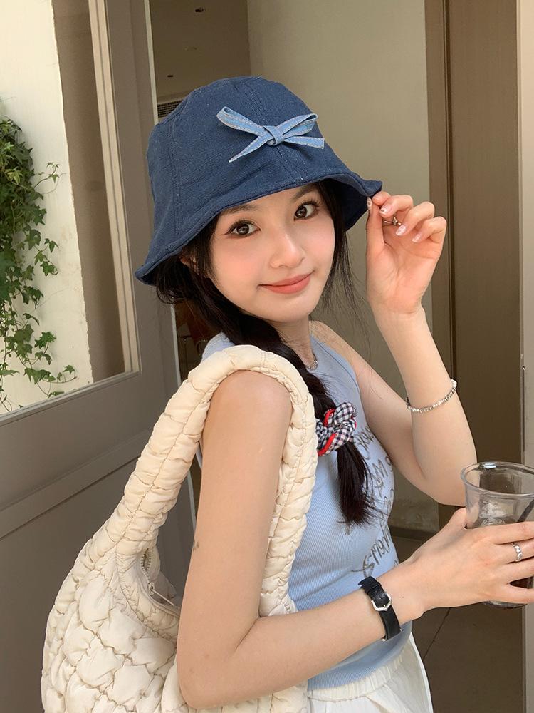 Sombrero de Pescador de Mezclilla Estilo Coreano de Verano Pequeño de Cara Mostrada Sombrero de Cubeta Sombrero para el Sol con Protección UV para Mujer