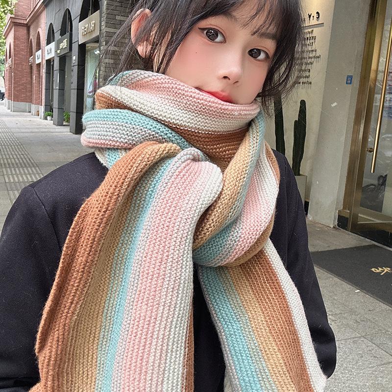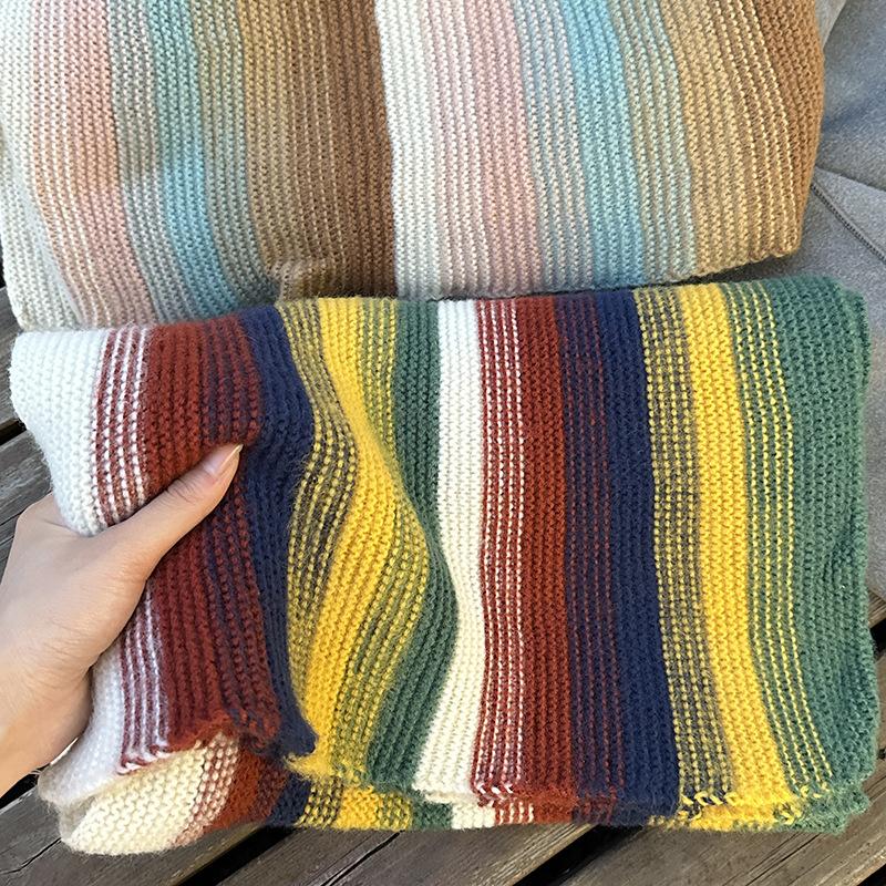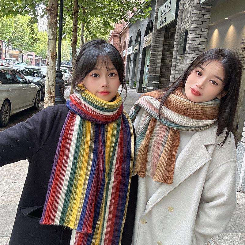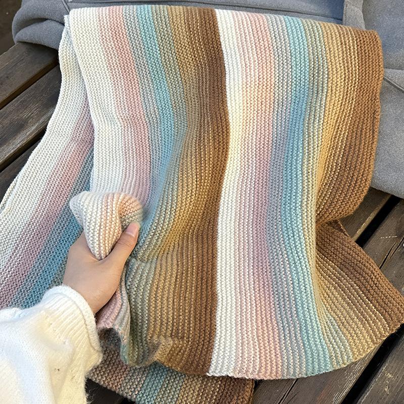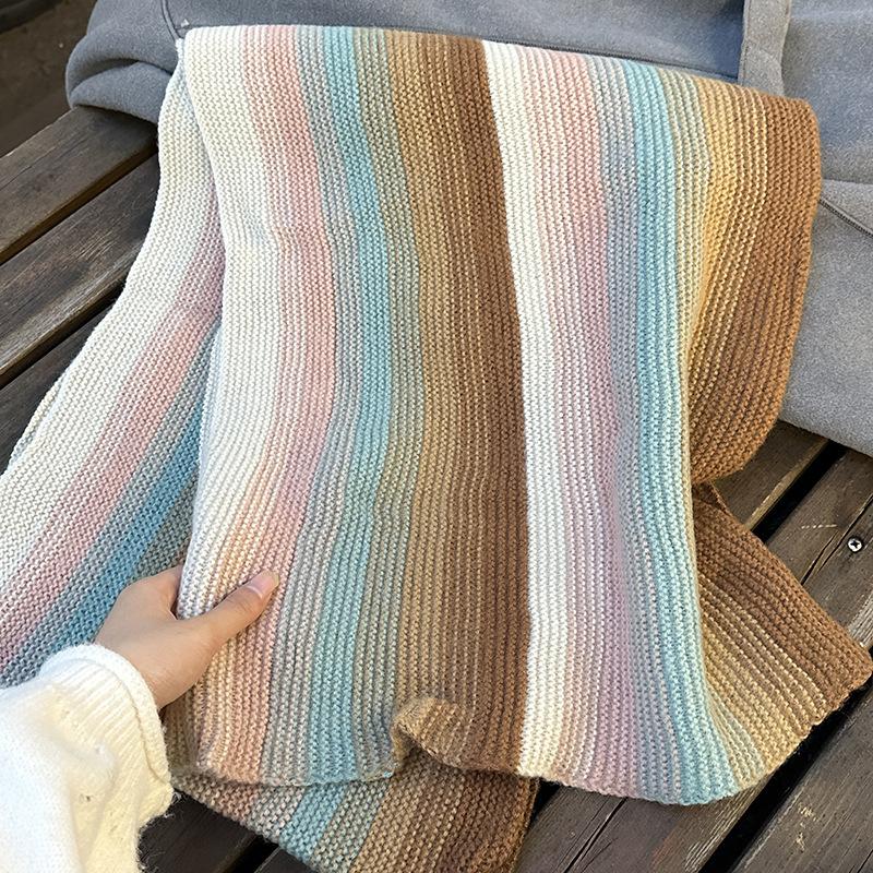 Esa Isla Arcoíris ~ bufanda tejida arcoíris azul oscuro azul claro cálida para todo combinar sensación de atmósfera bufanda gruesa invierno mujeres