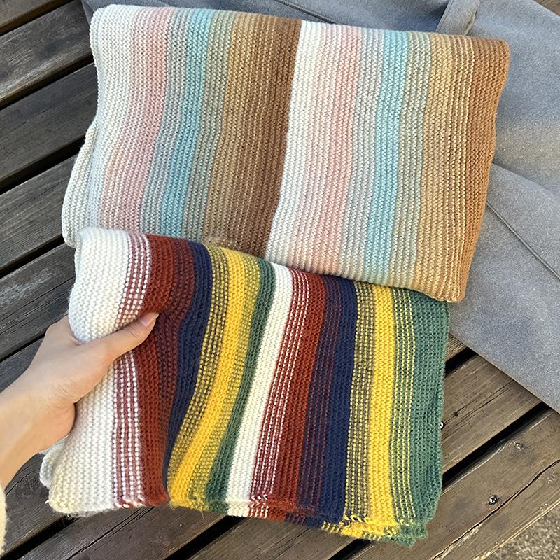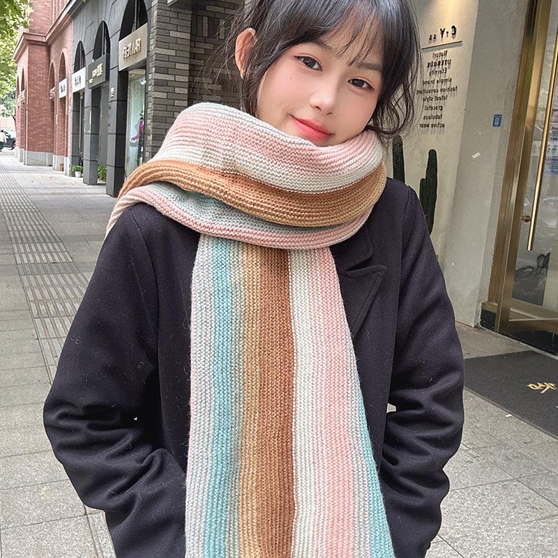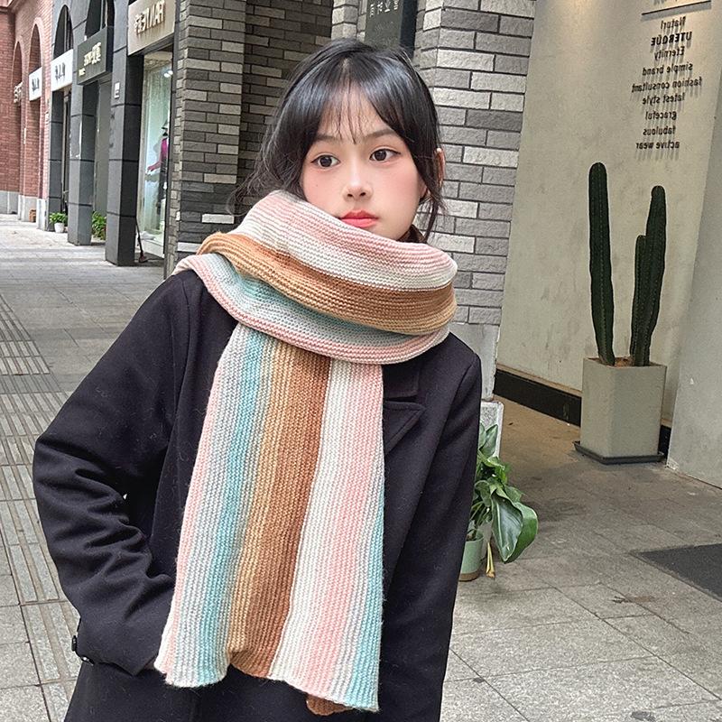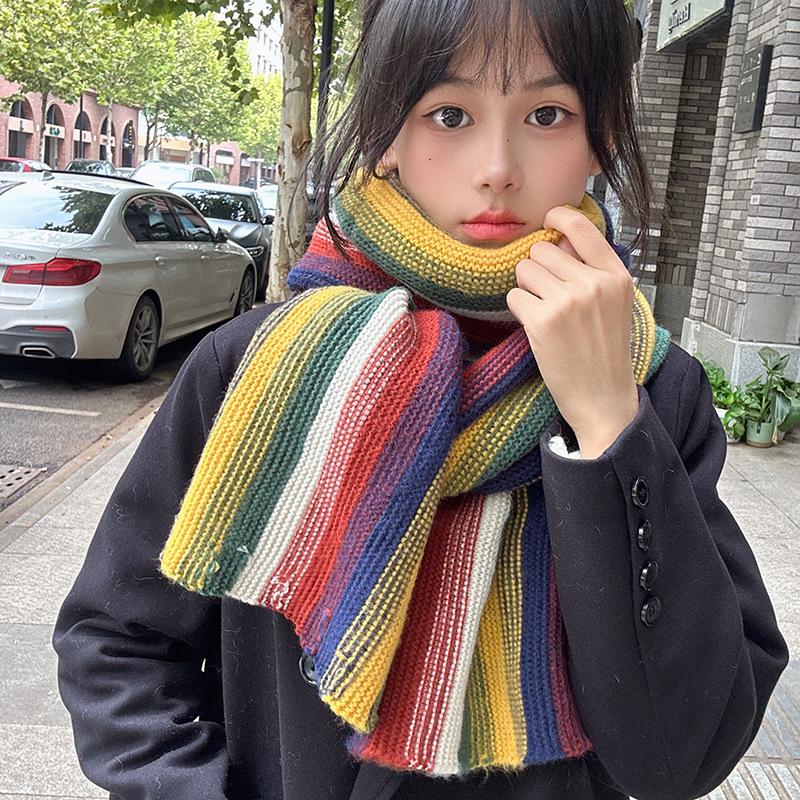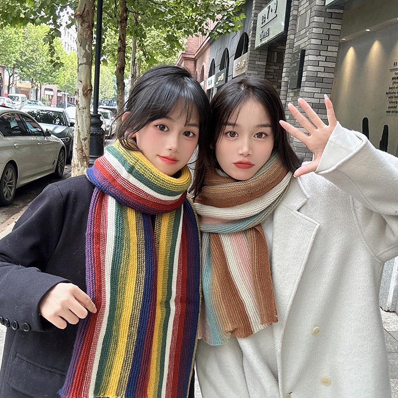 Esa Isla Arcoíris ~ bufanda tejida arcoíris azul oscuro azul claro cálida para todo combinar sensación de atmósfera bufanda gruesa invierno mujeres