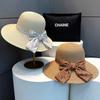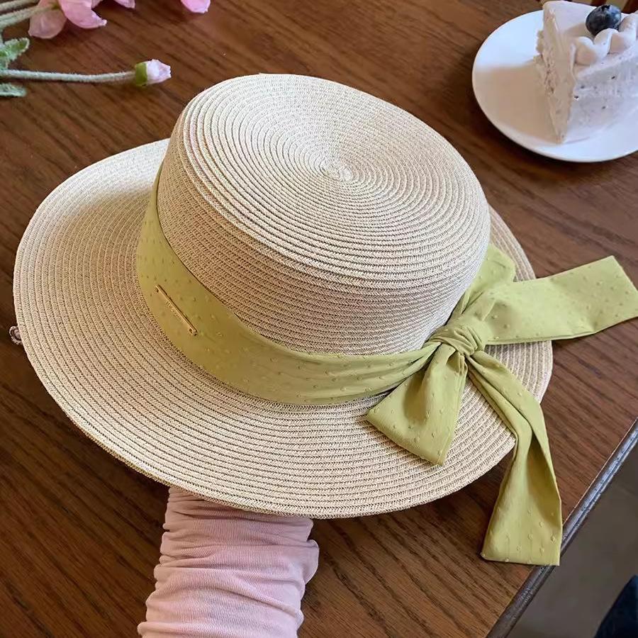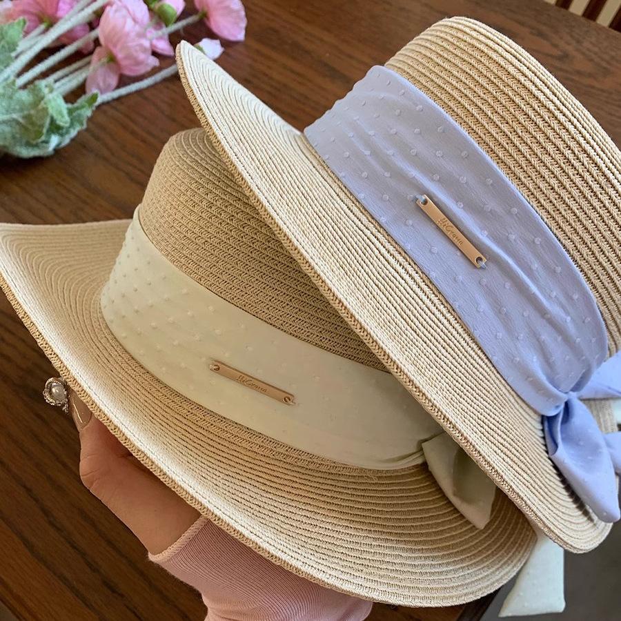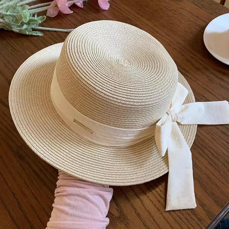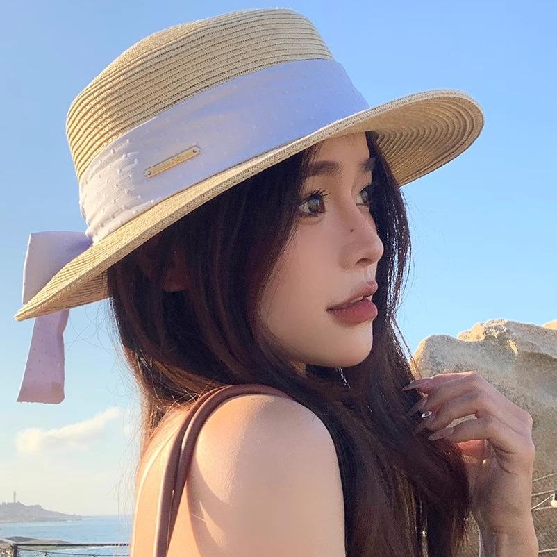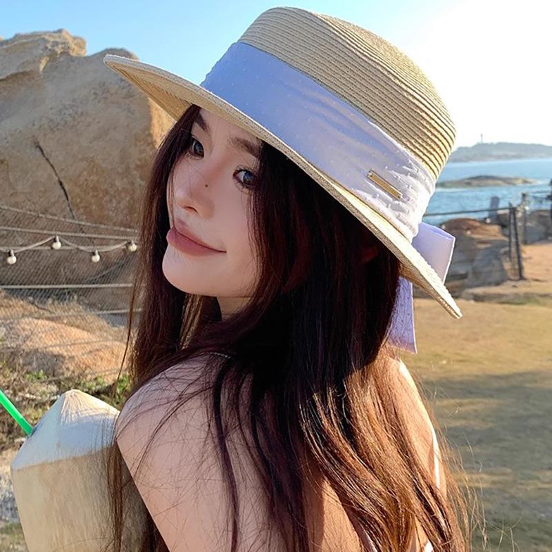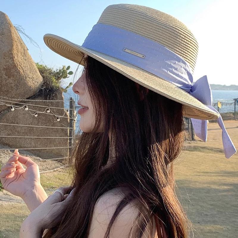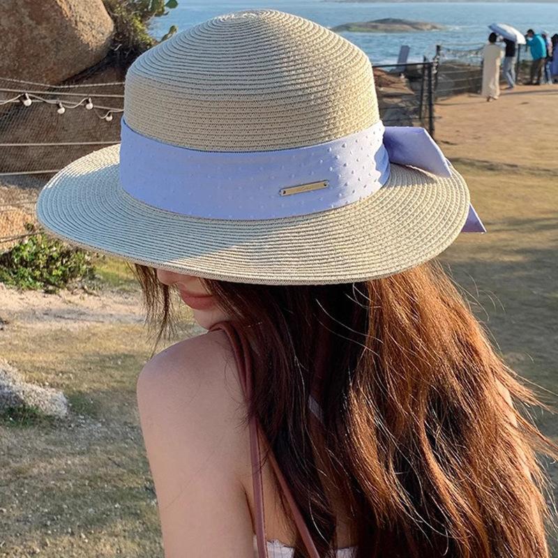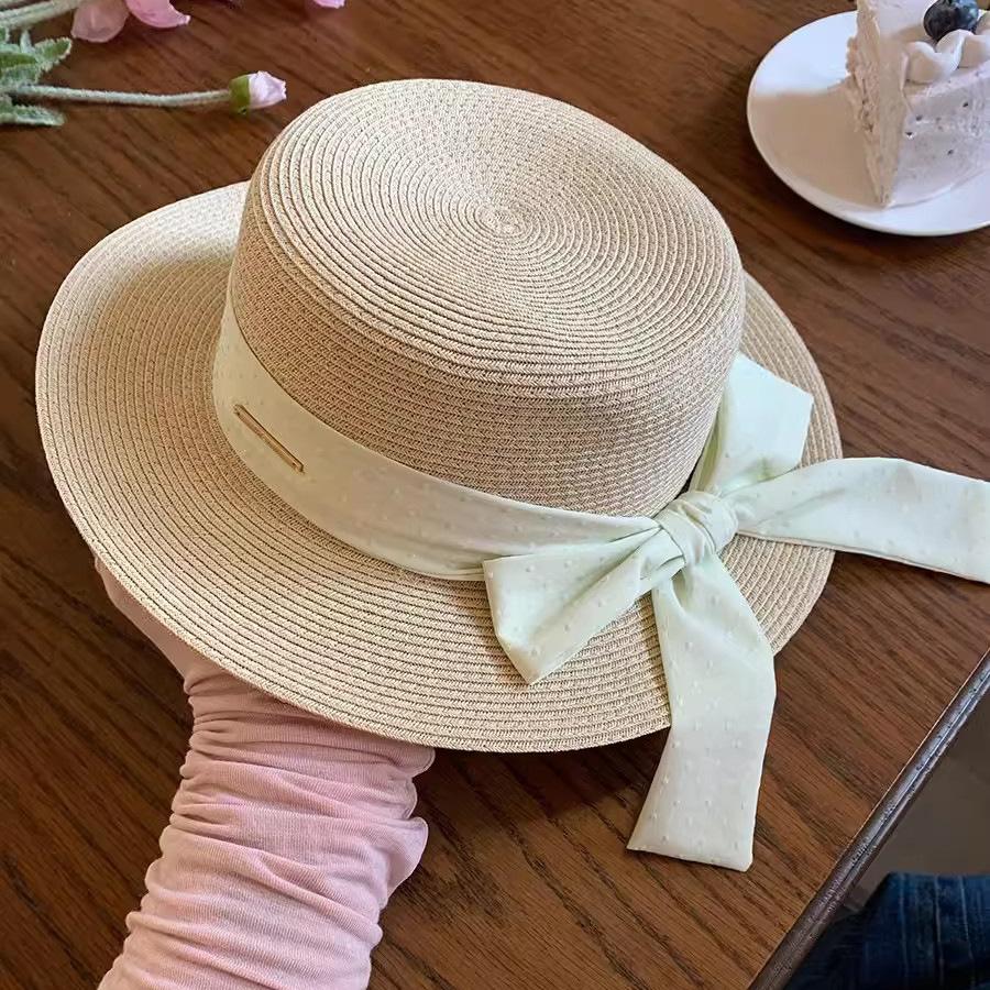 Sombrero de paja con lazo Hepburn para mujer, ideal para vacaciones en la playa, verano y exteriores.