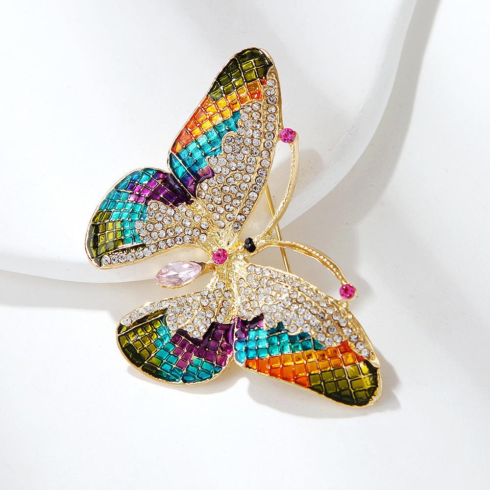 Broche de mariposa exquisito colorido de moda lujo ligero elegante esmalte coloreado Diamante incrustado ramillete hebilla de personalidad elegante de alta gama