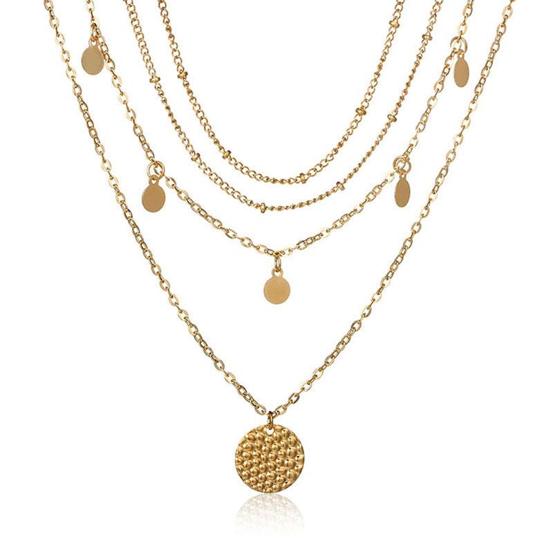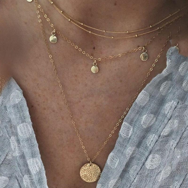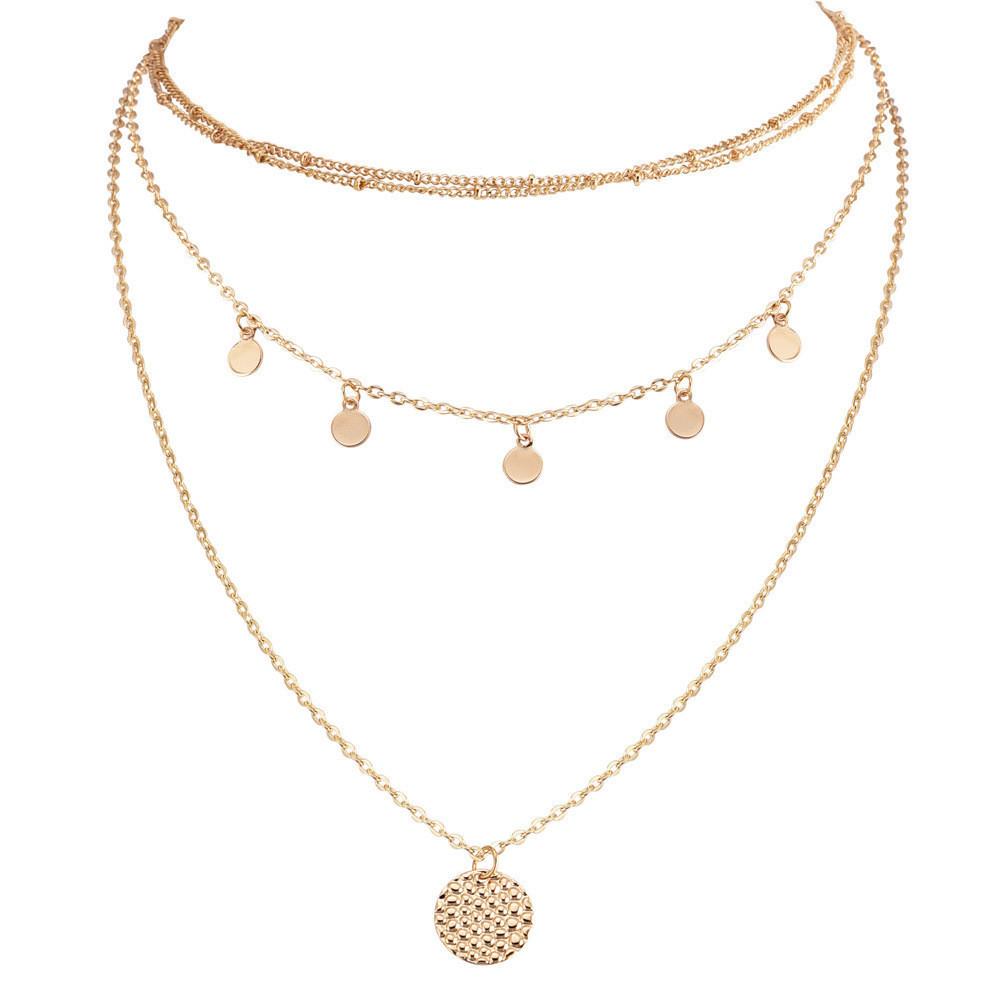 Joyería de Moda Transfronteriza Europea y Americana Nuevo Collar de Cadena para Clavícula con Colgante de Disco de Capas Múltiples para Mujer Accesorios Combinados