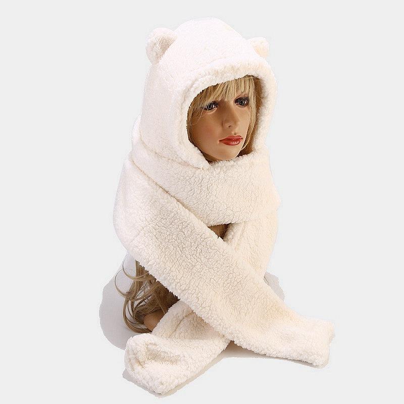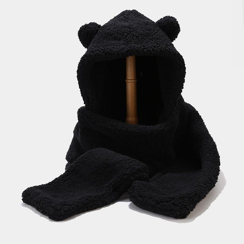 Set de dos piezas de gorro cálido con orejas de oso y bufanda, moderno, para otoño e invierno, para exteriores, resistente al frío, grueso, cálido, para hombres y mujeres