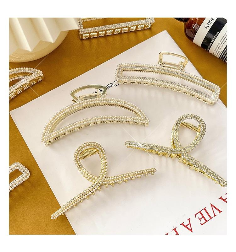 Pinza para el cabello con diamantes de imitación y perlas, gran pinza para el cabello de verano con diseño de tiburón, accesorios para el cabello con sentido avanzado, nuevo estilo 2021