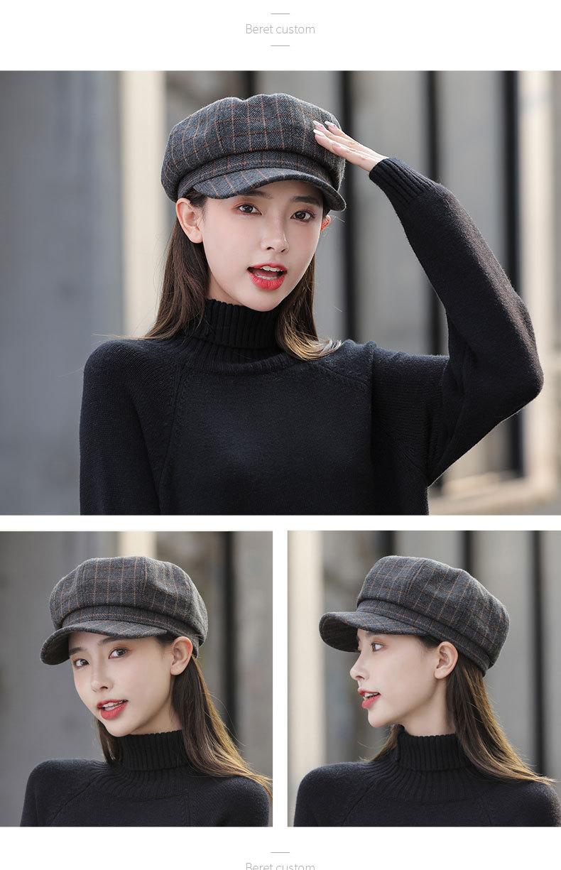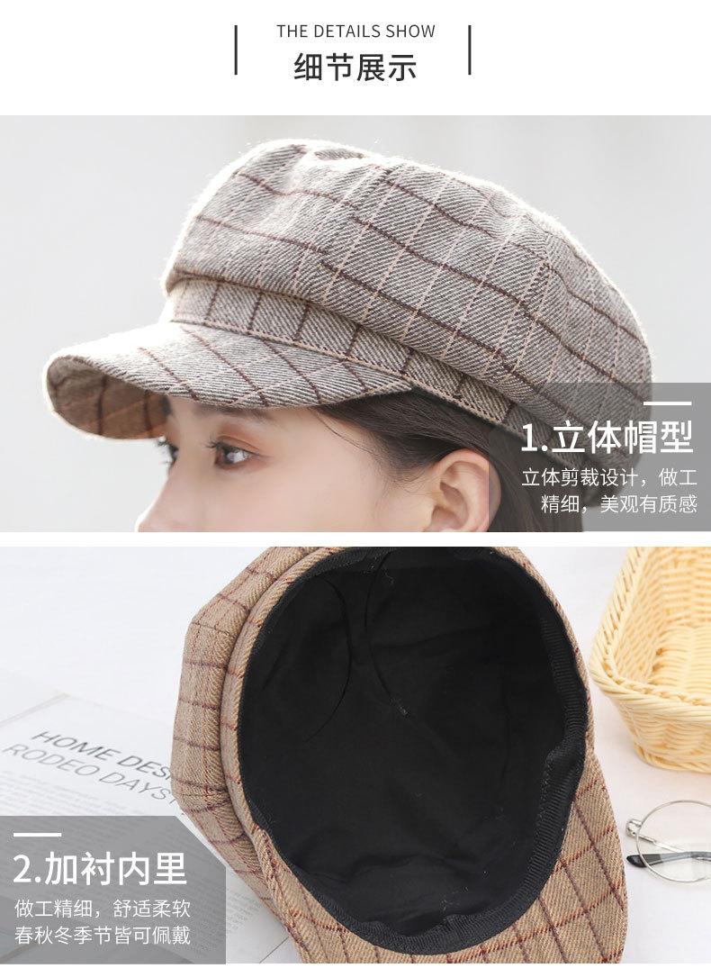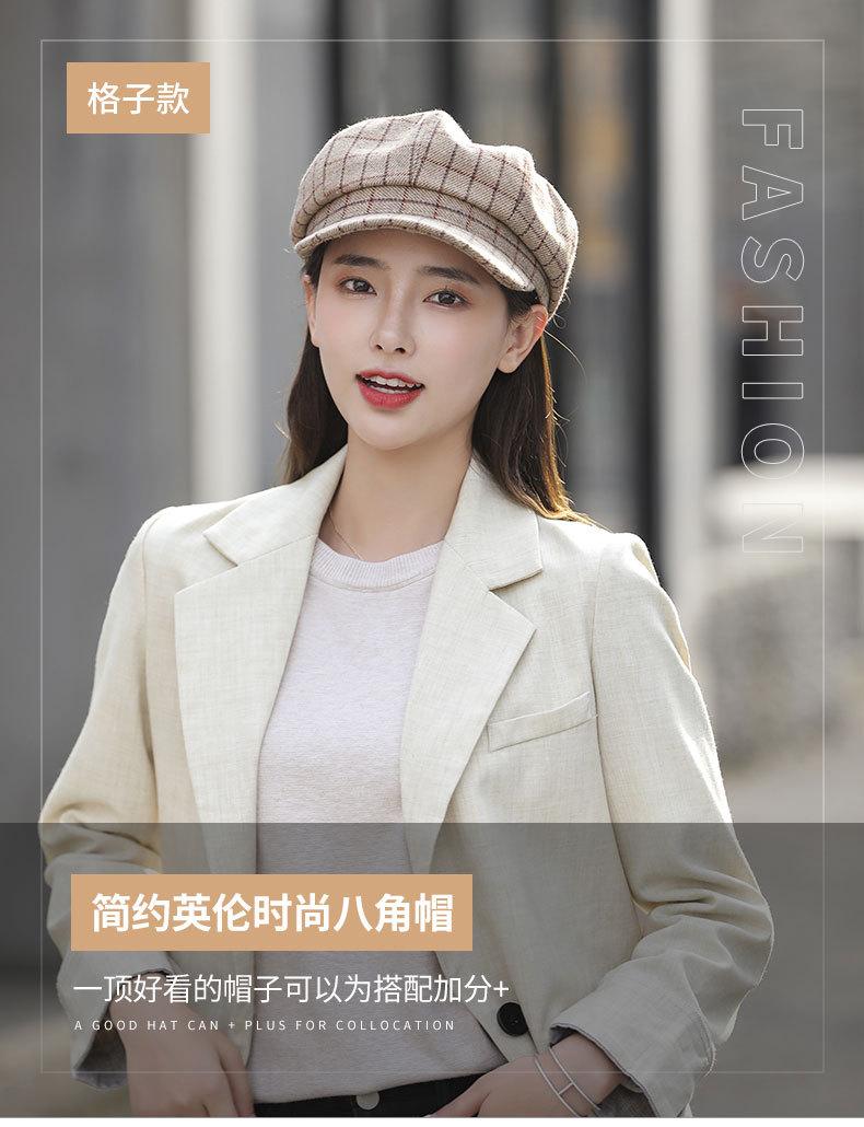 Sombrero octogonal de celebridad de Internet para otoño e invierno, nuevo sombrero de pintor a cuadros retro británico, boina de moda simple coreana para mujer