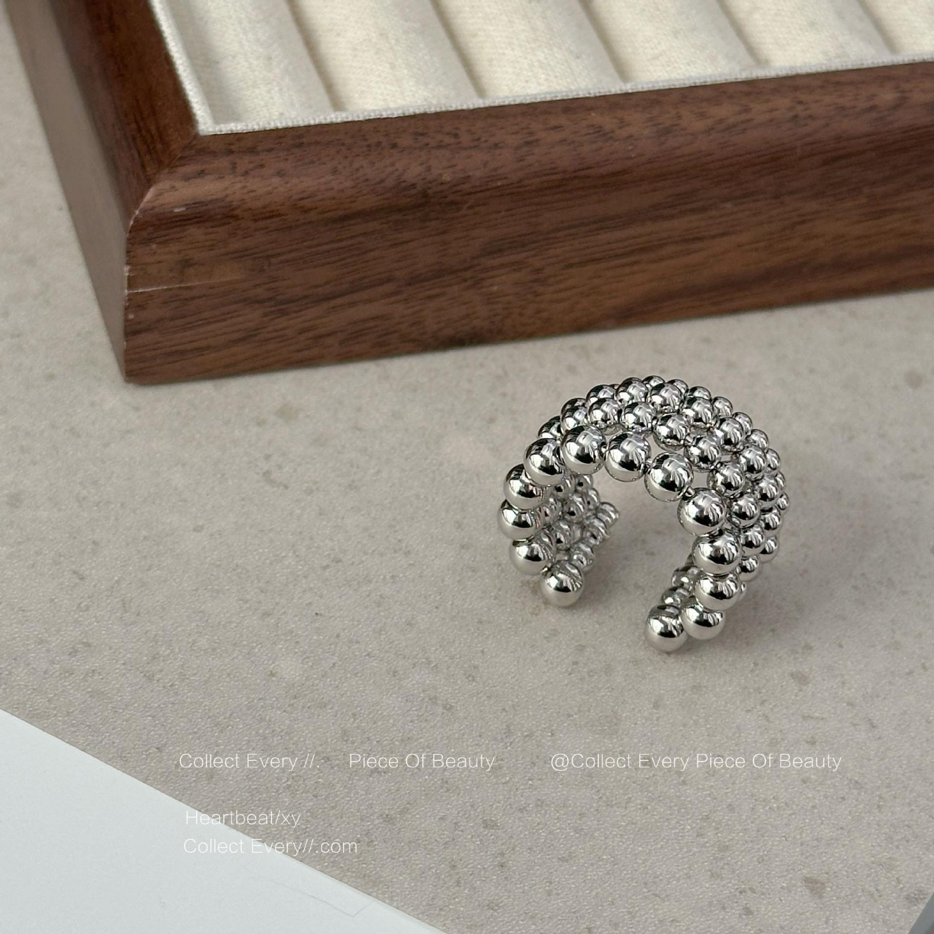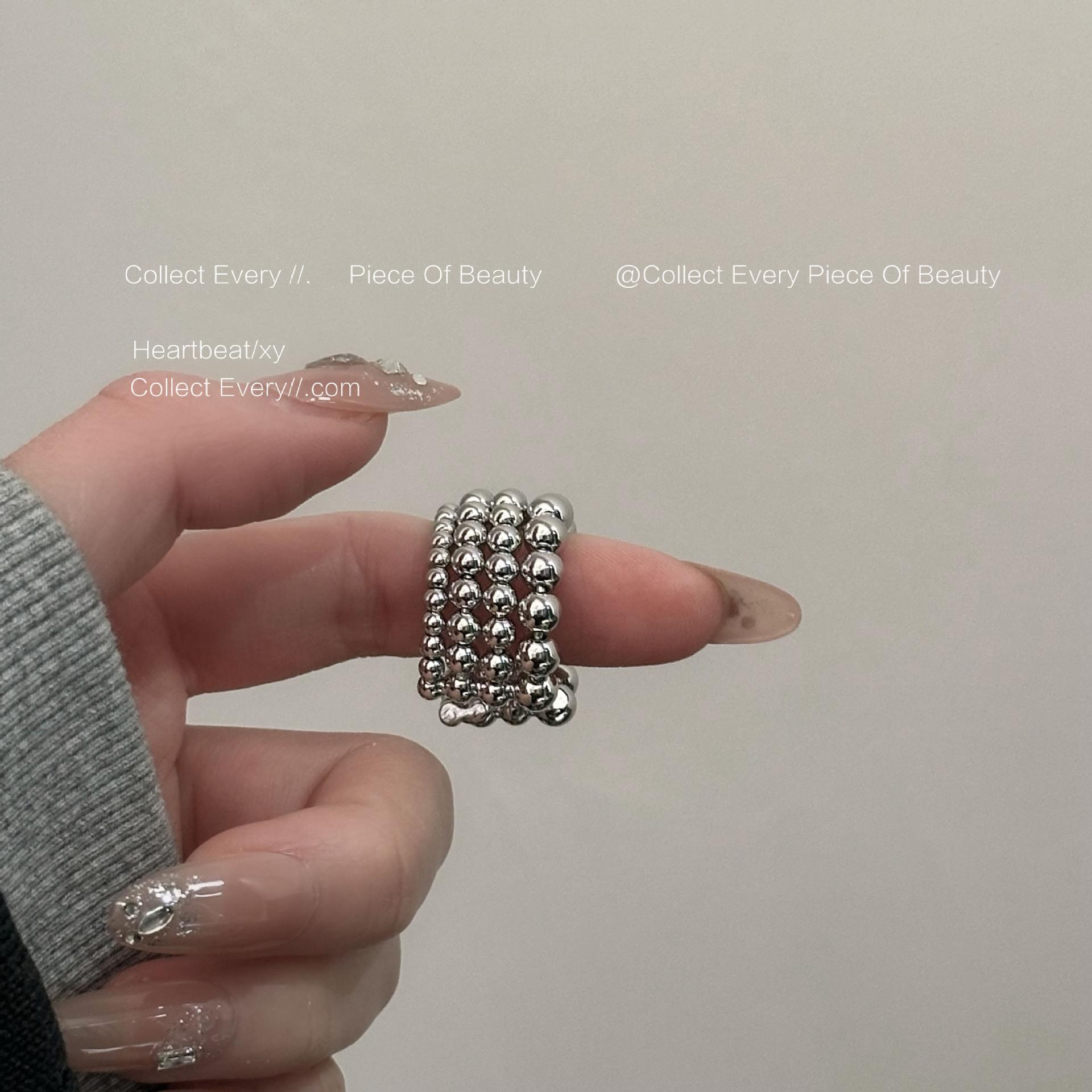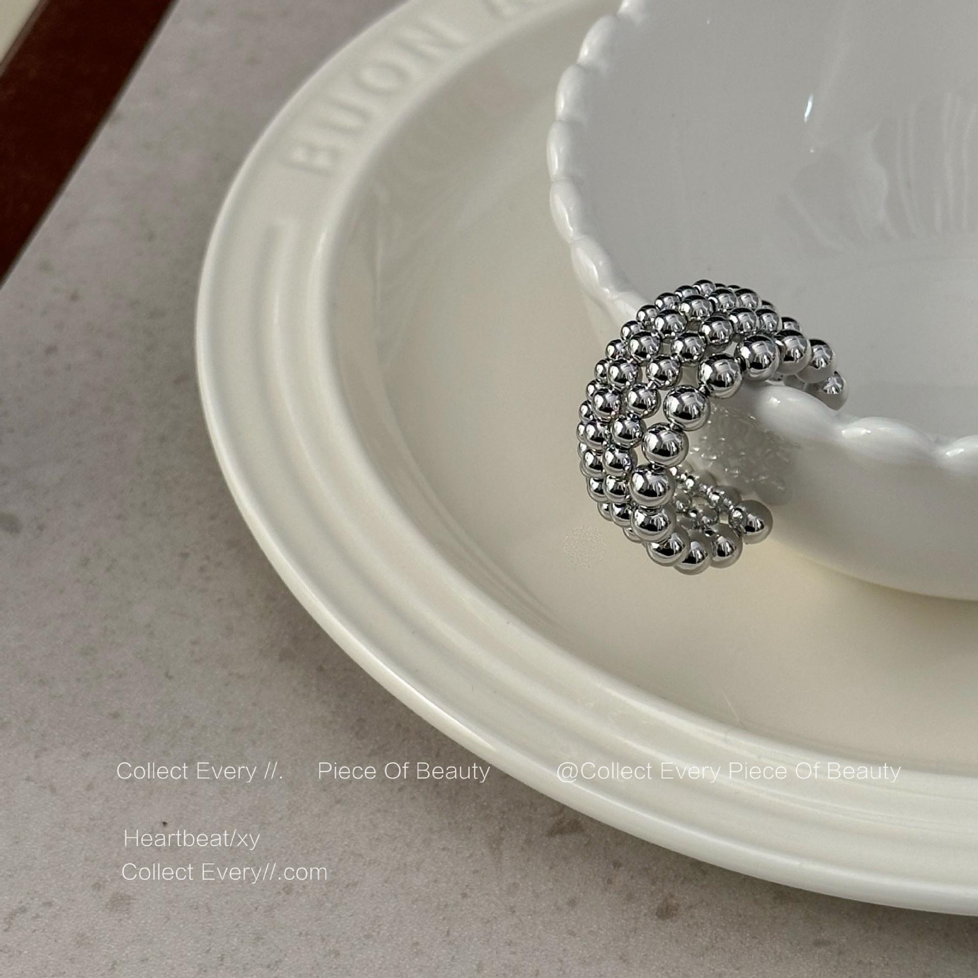 Anillo de cuentas redondas de moda coreana para mujer, diseño de nicho, retro, elegante, abierto, sencillo, ligero y de lujo.