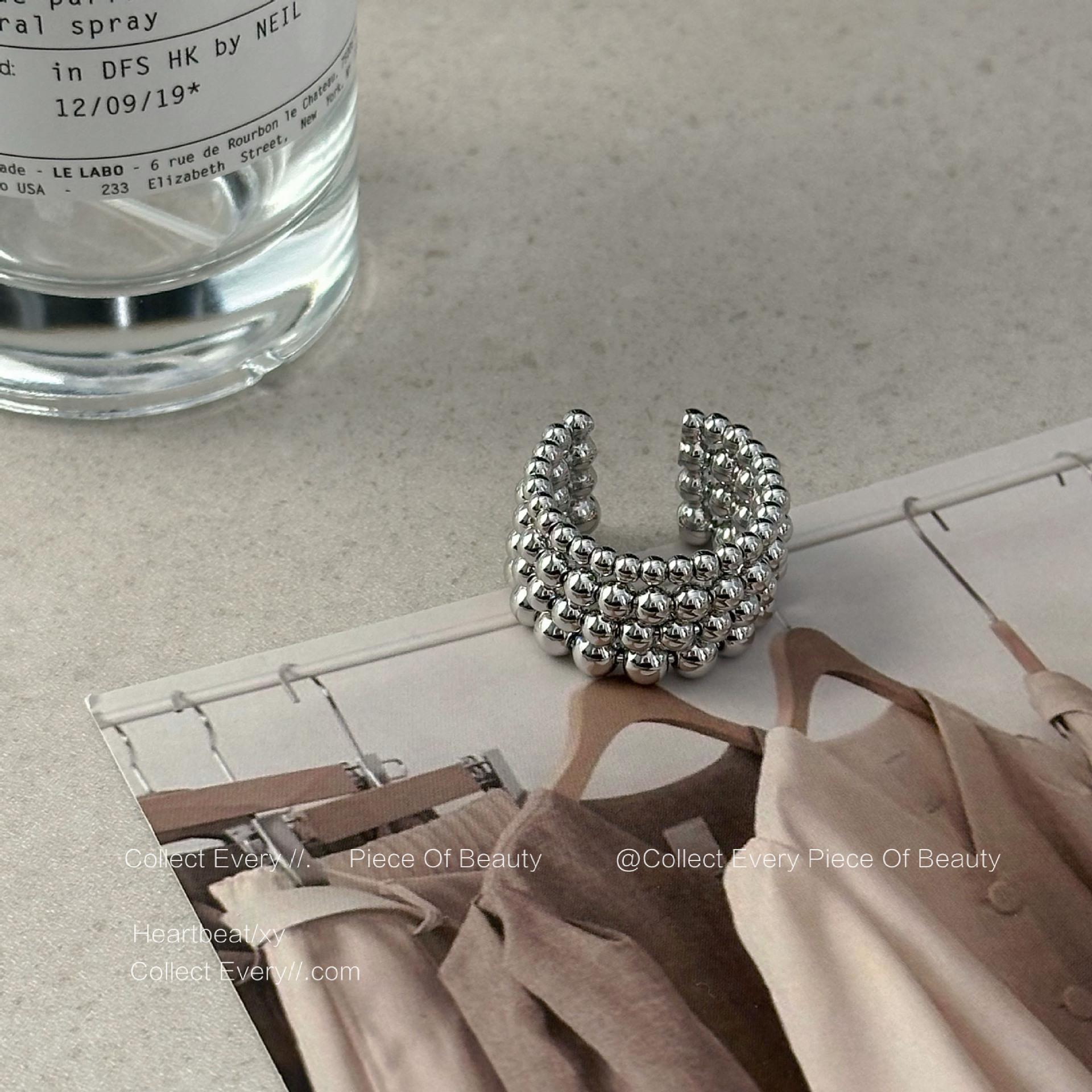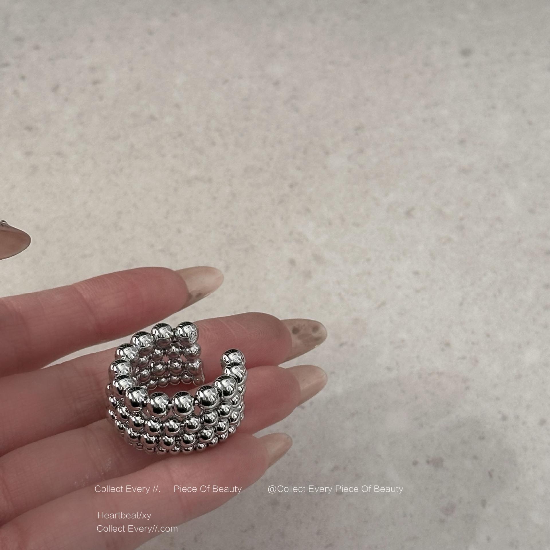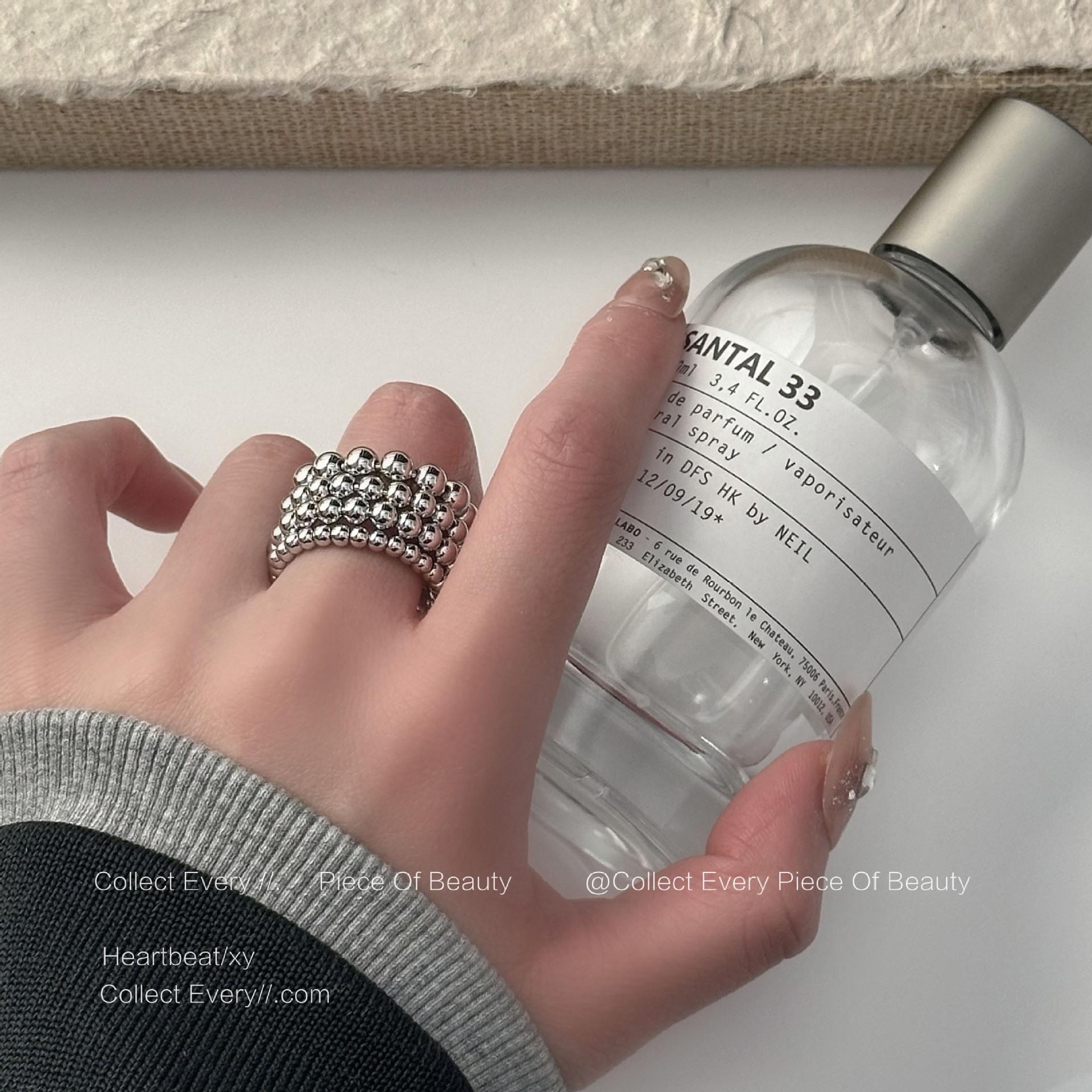 Anillo de cuentas redondas de moda coreana para mujer, diseño de nicho, retro, elegante, abierto, sencillo, ligero y de lujo.