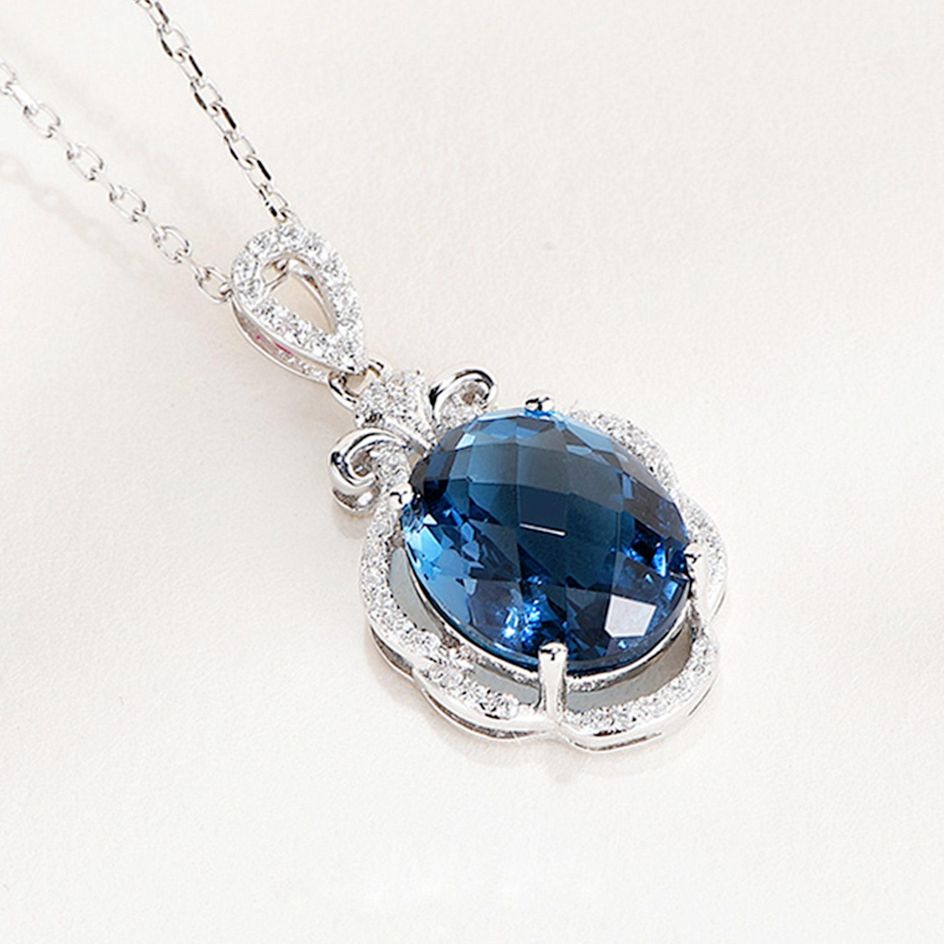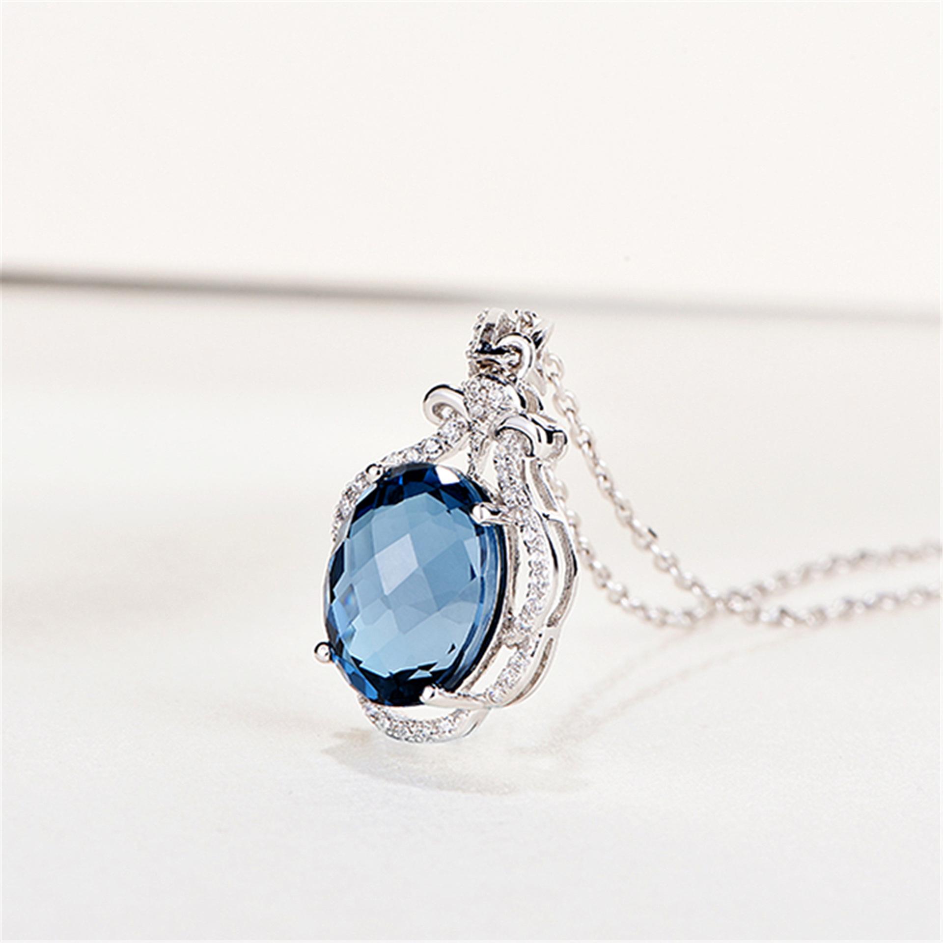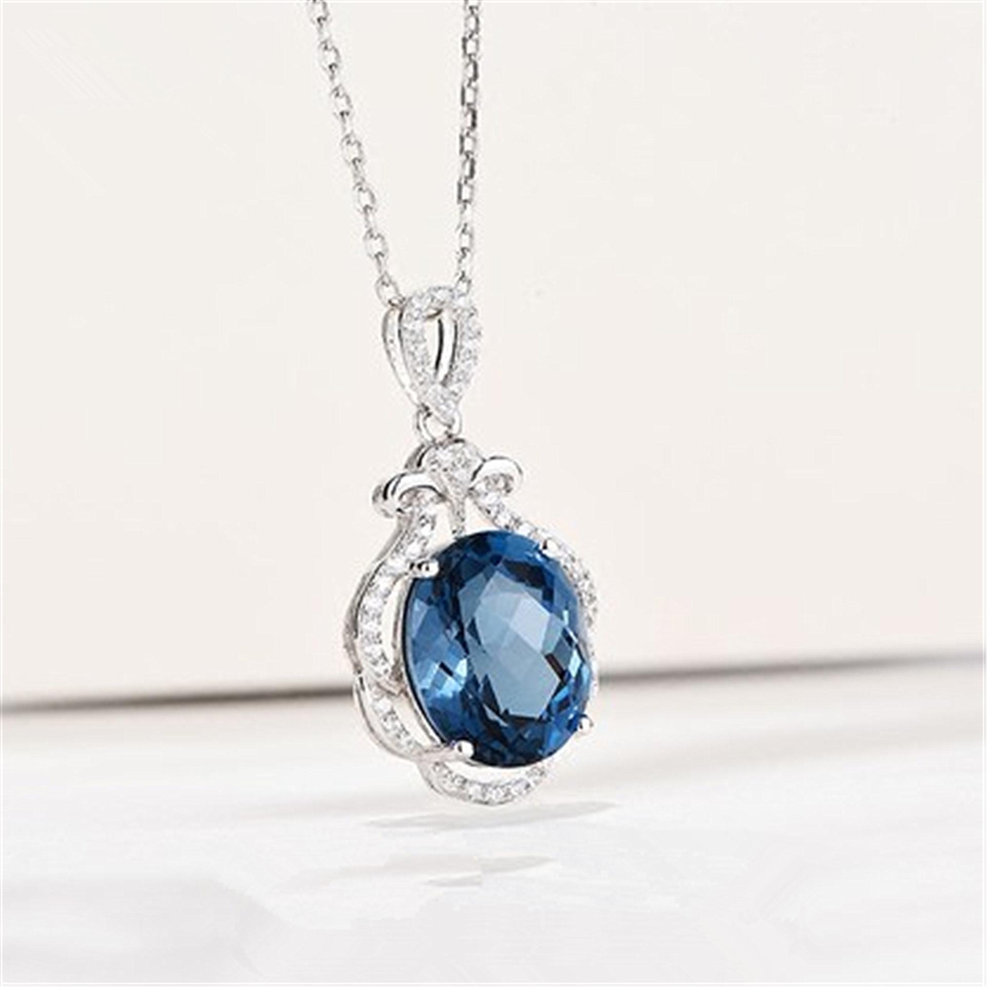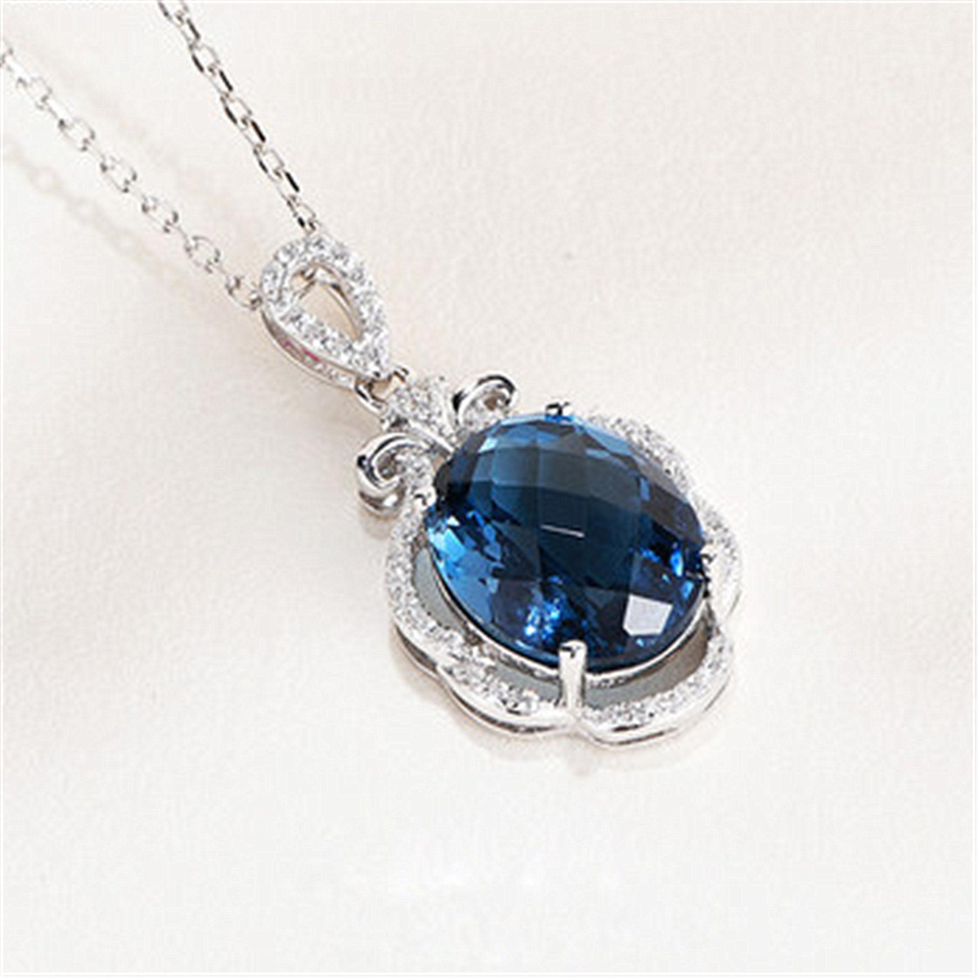 Collar de cristal estilo coreano para mujer, estilo europeo y americano, elegante y sencillo, cadena de clavícula con colgante de gema de topacio azul natural.