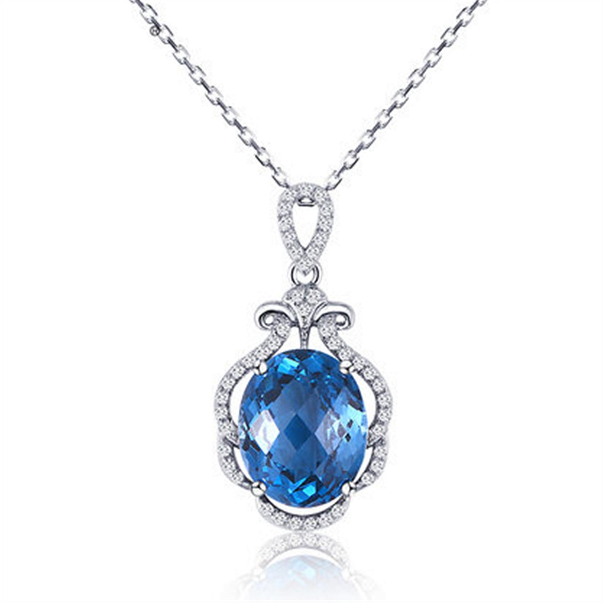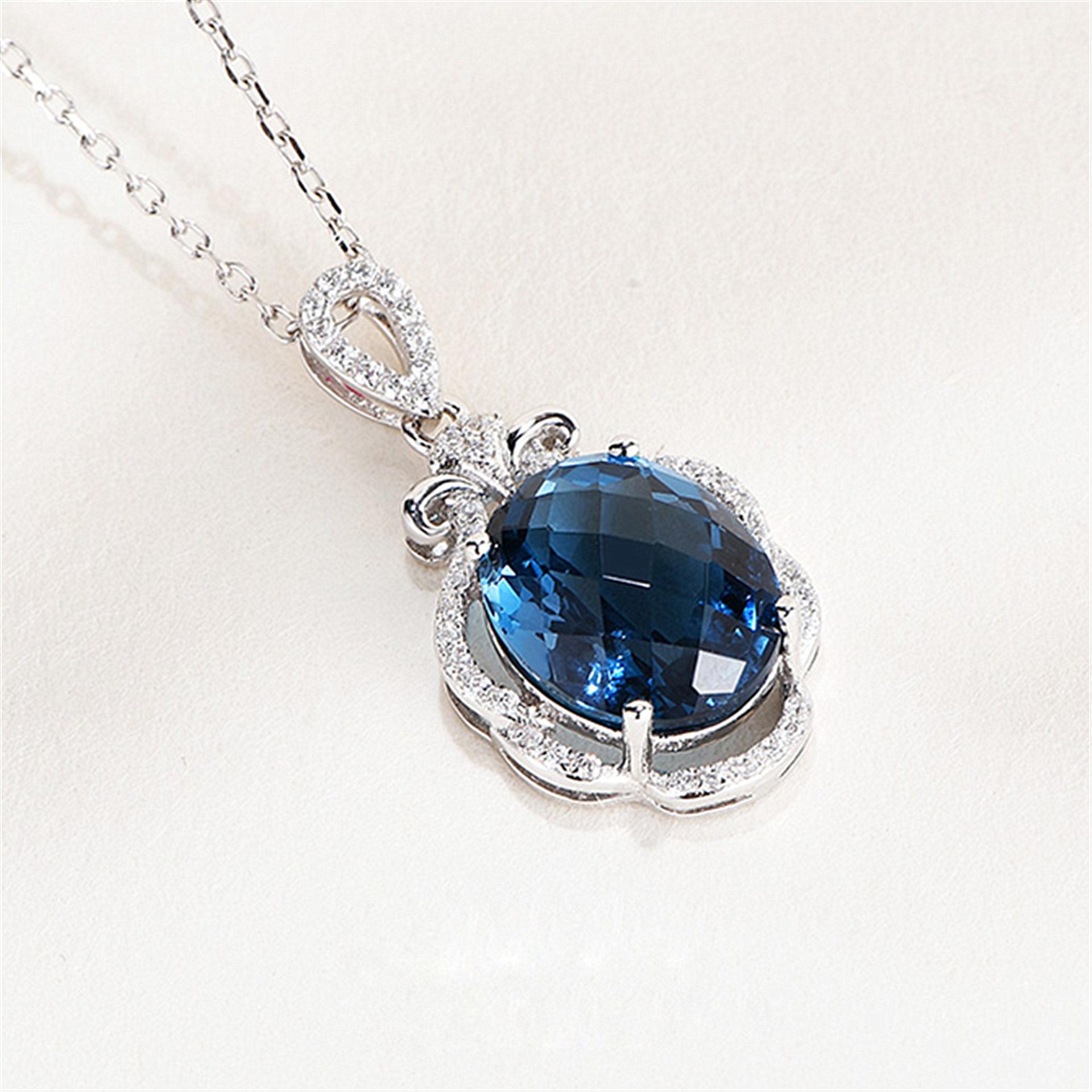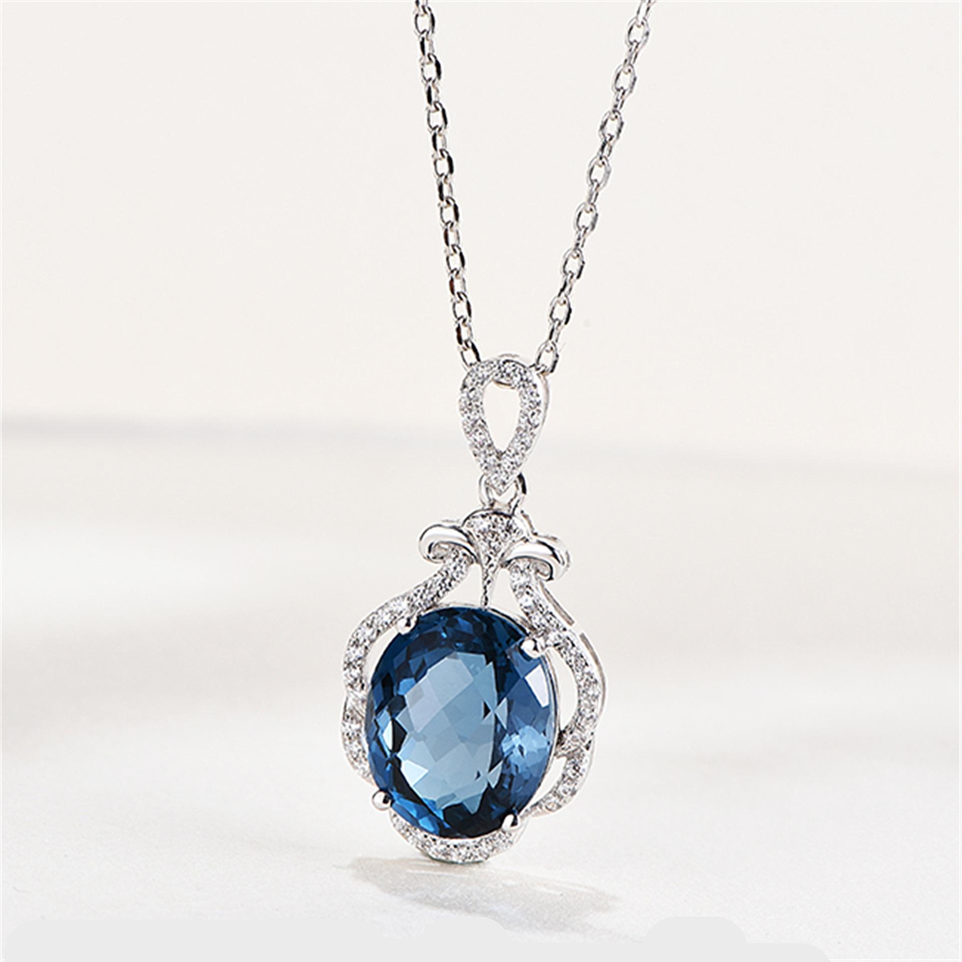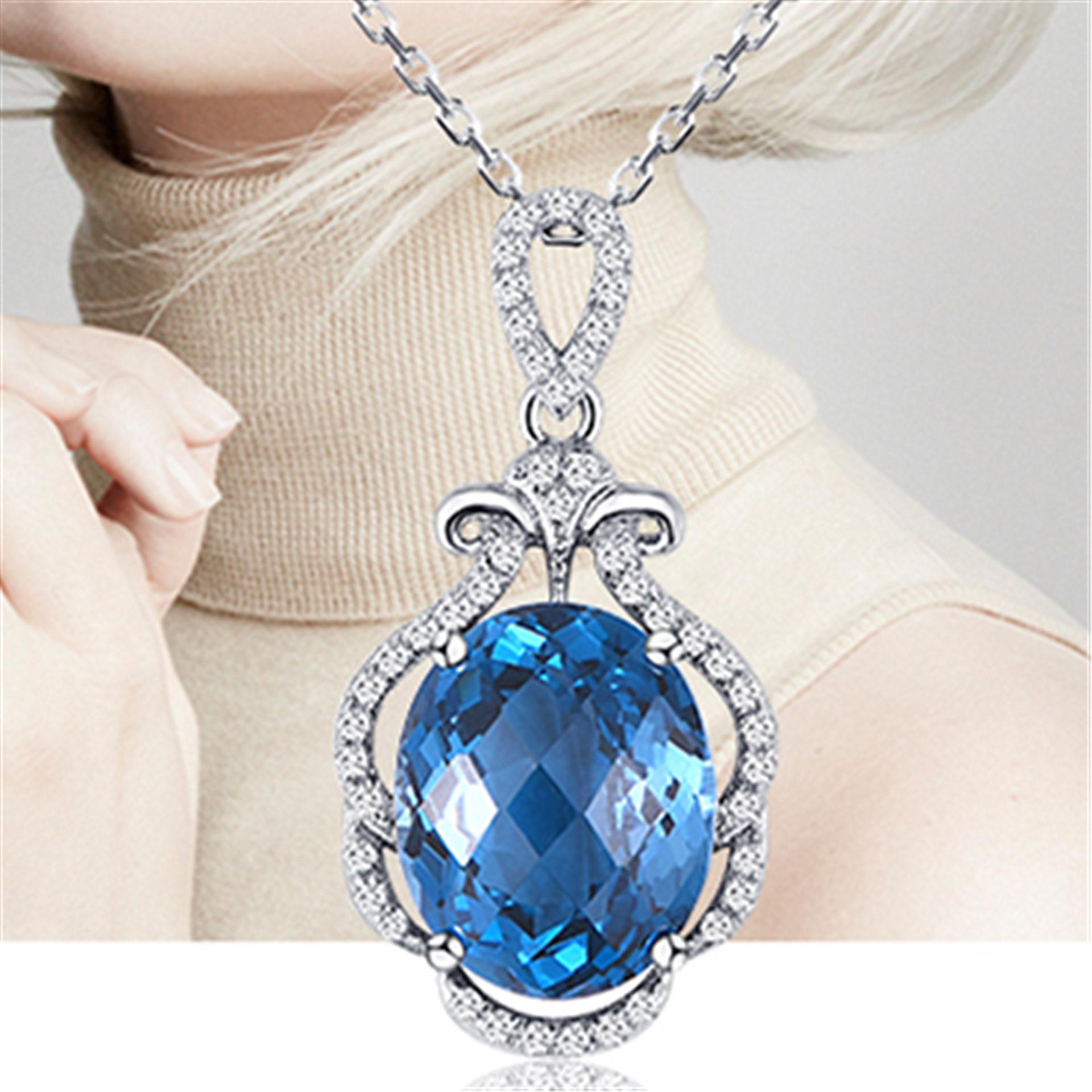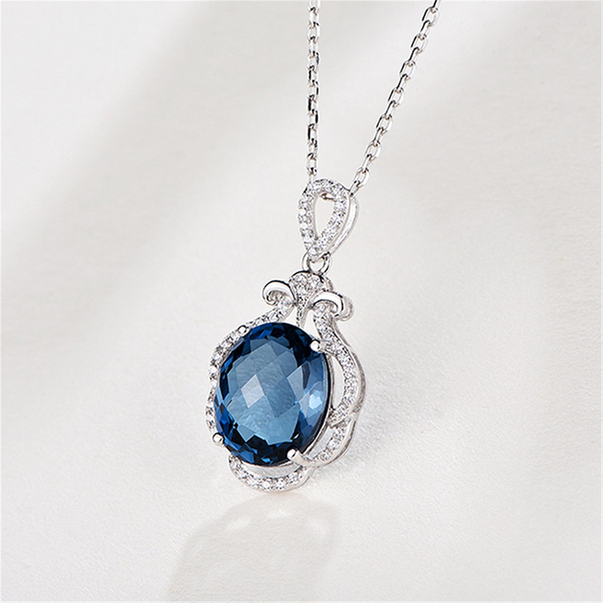 Collar de cristal estilo coreano para mujer, estilo europeo y americano, elegante y sencillo, cadena de clavícula con colgante de gema de topacio azul natural.