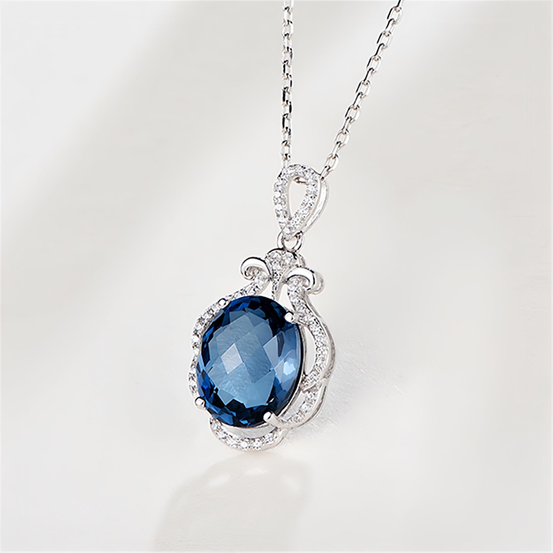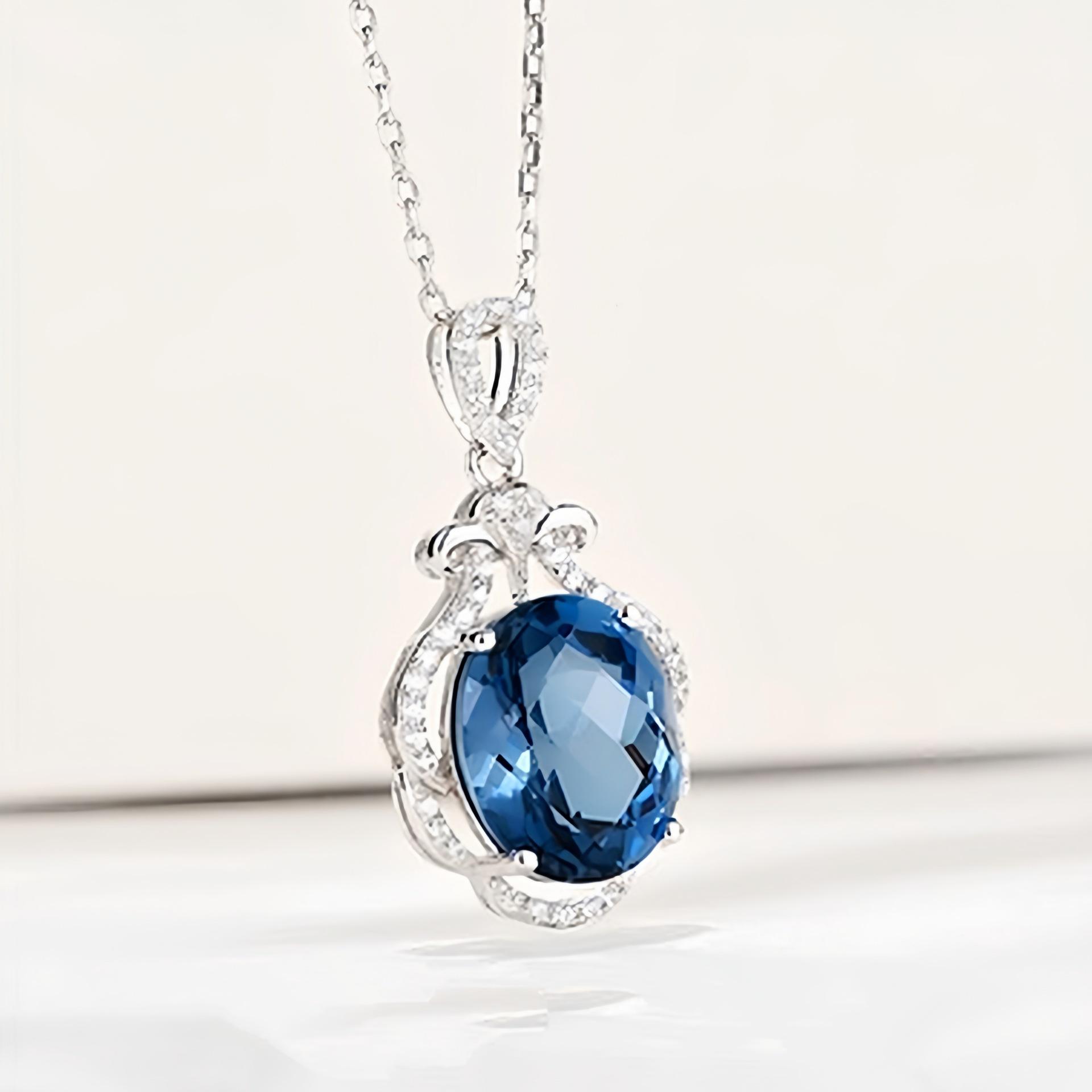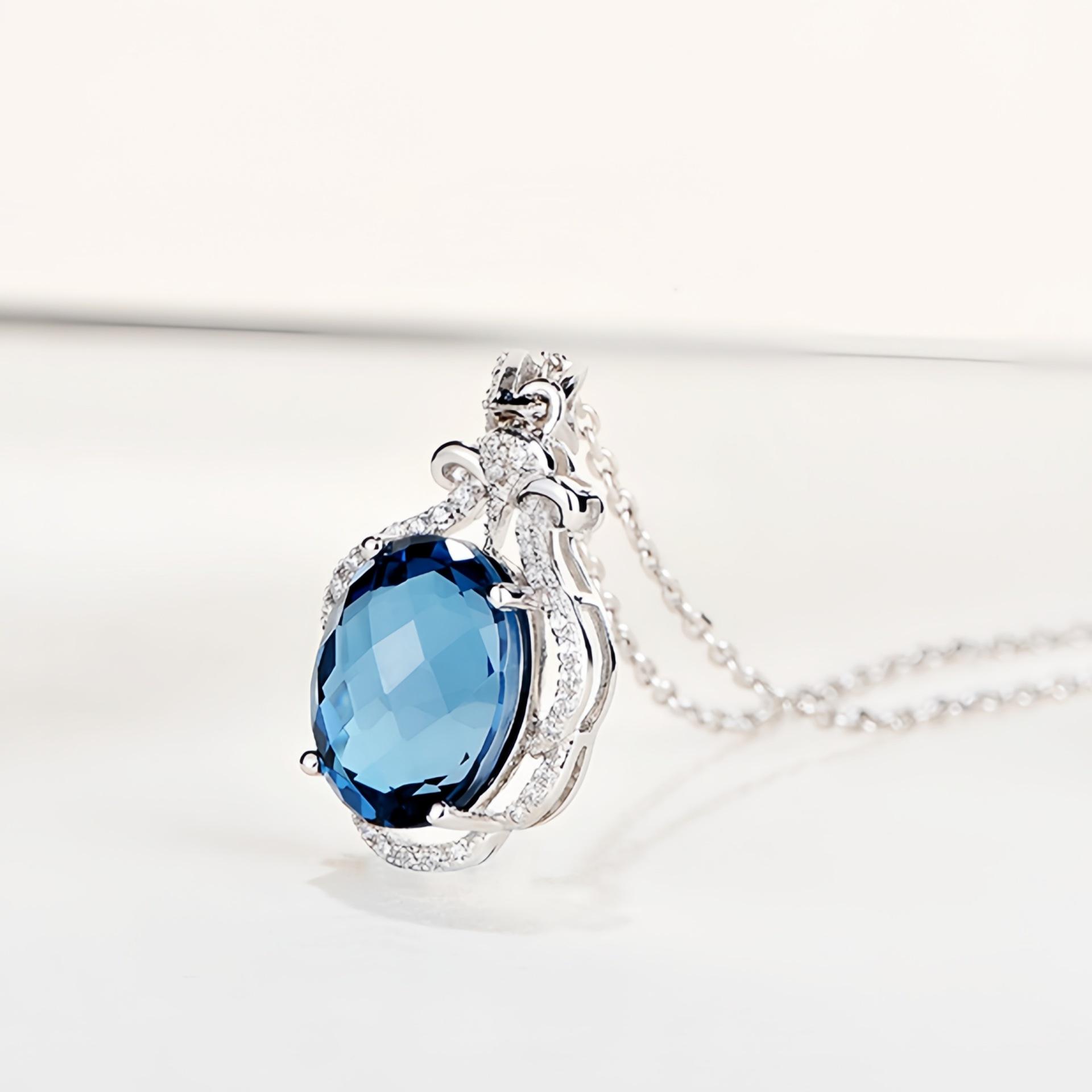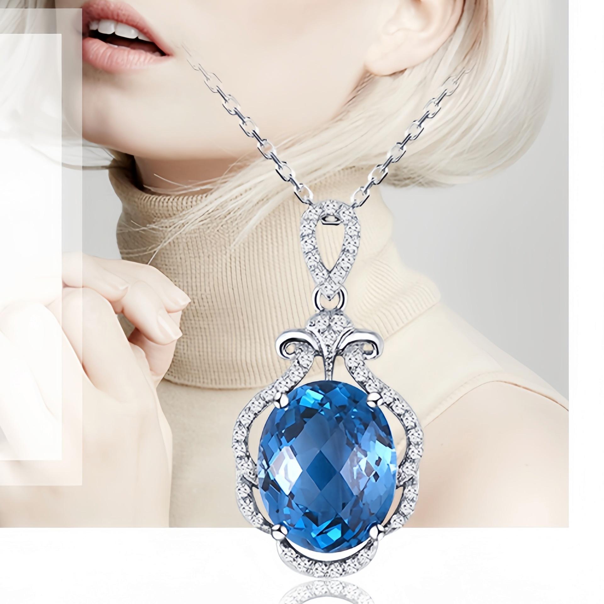 Collar de cristal estilo coreano para mujer, estilo europeo y americano, elegante y sencillo, cadena de clavícula con colgante de gema de topacio azul natural.