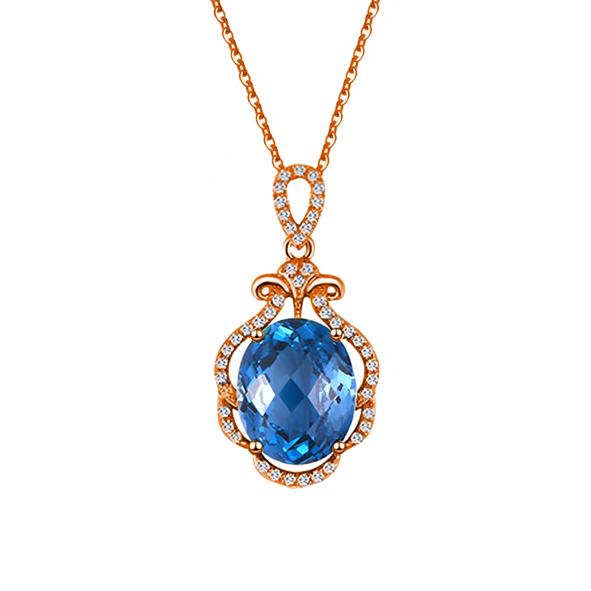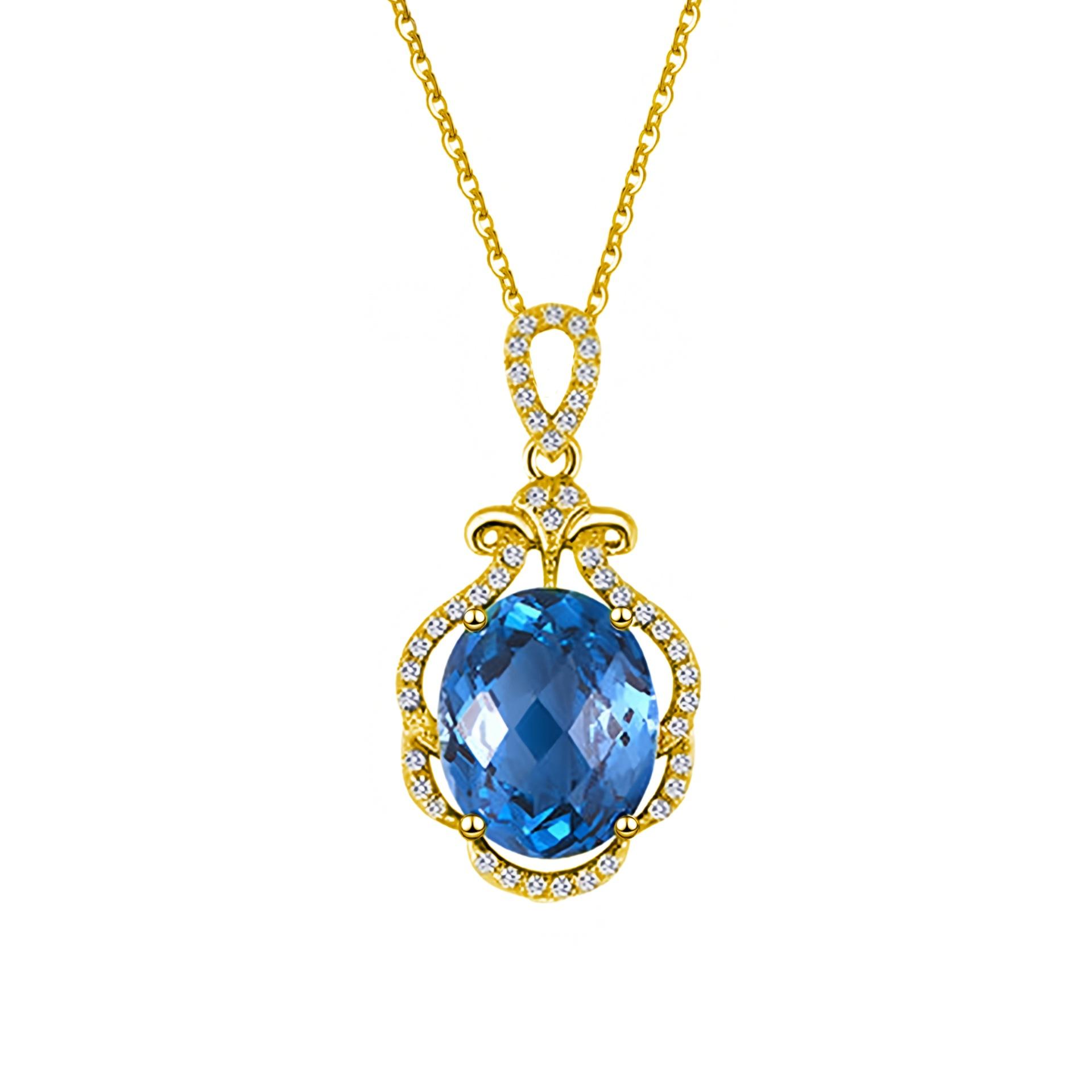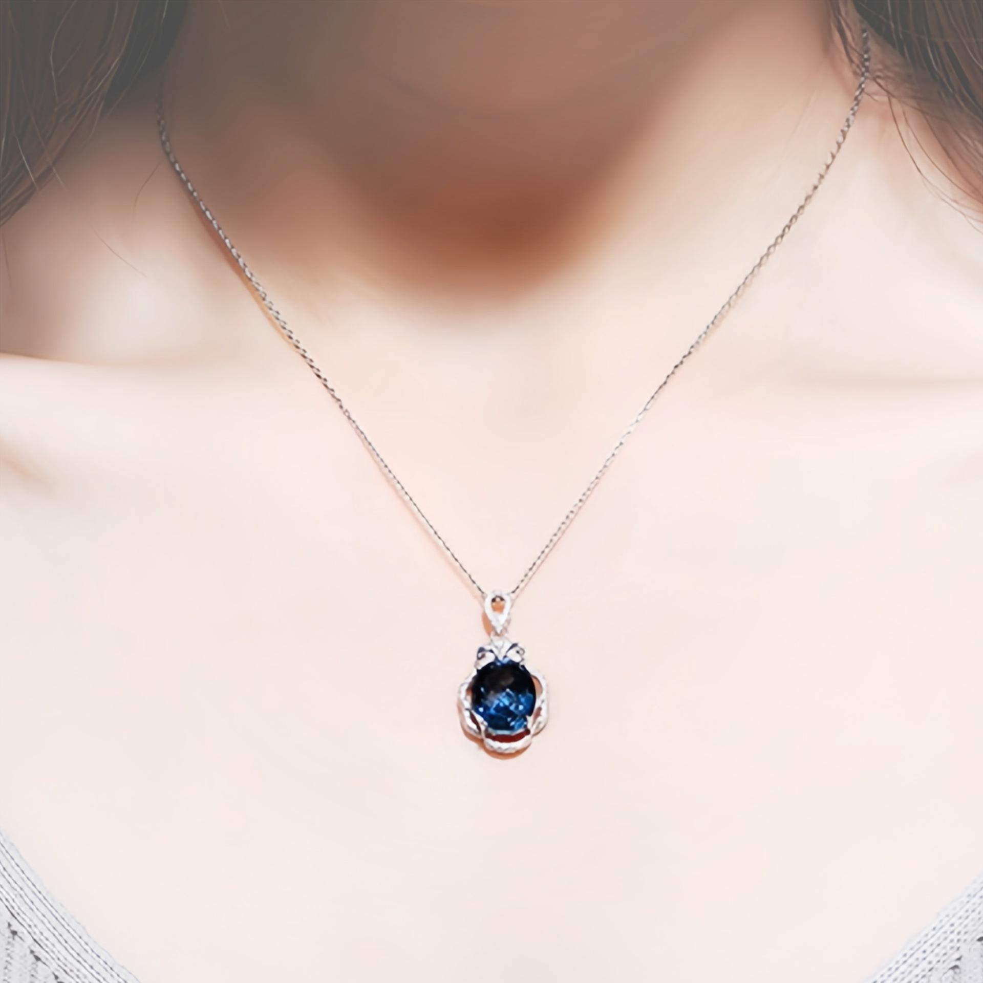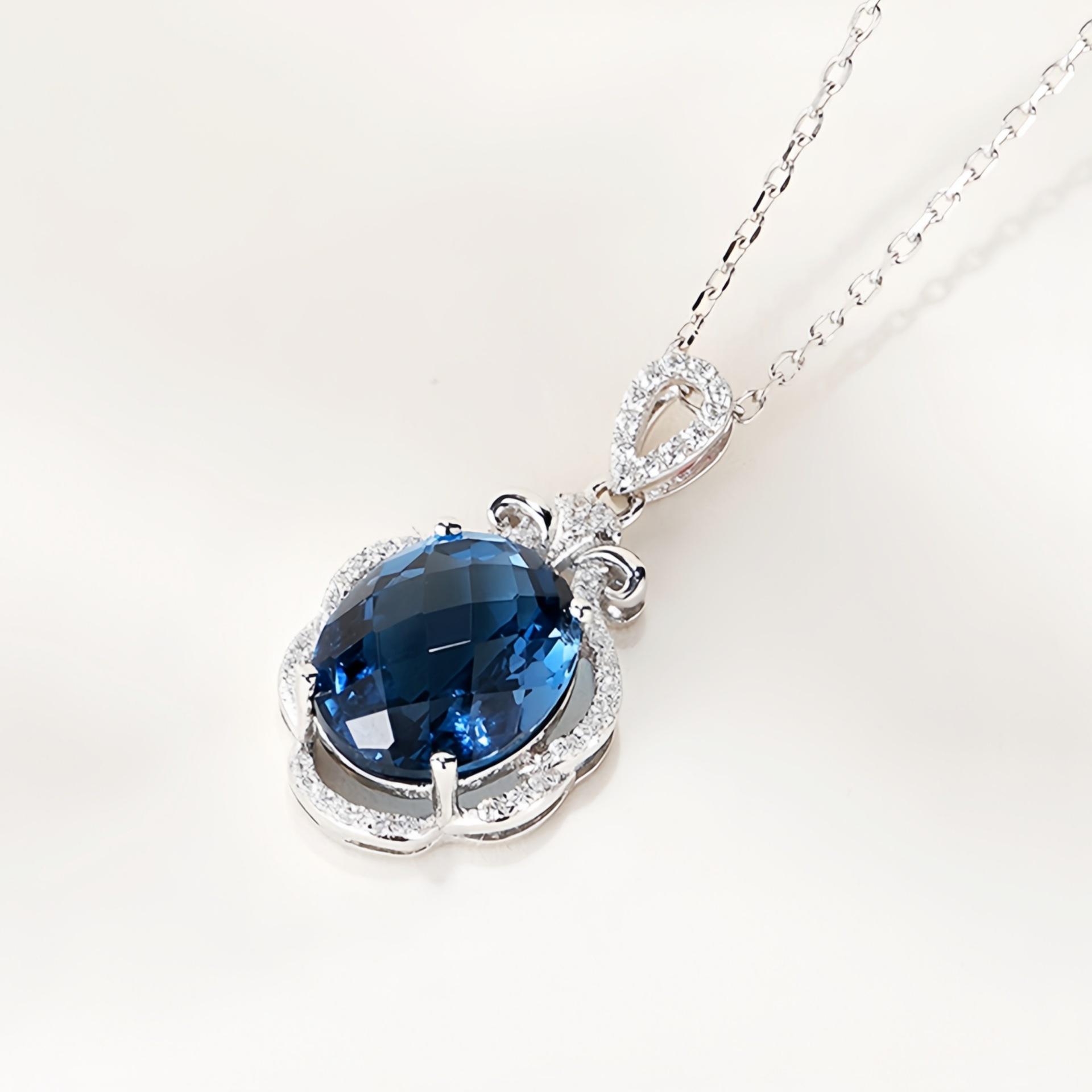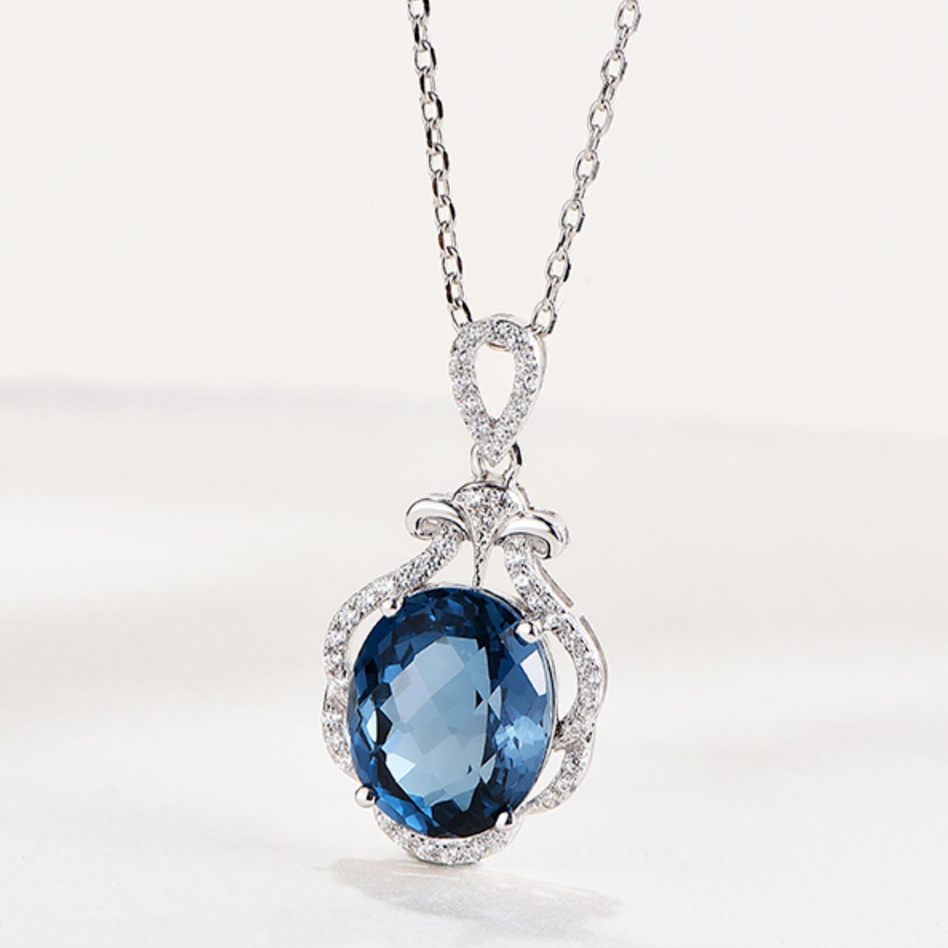 Collar de cristal estilo coreano para mujer, estilo europeo y americano, elegante y sencillo, cadena de clavícula con colgante de gema de topacio azul natural.