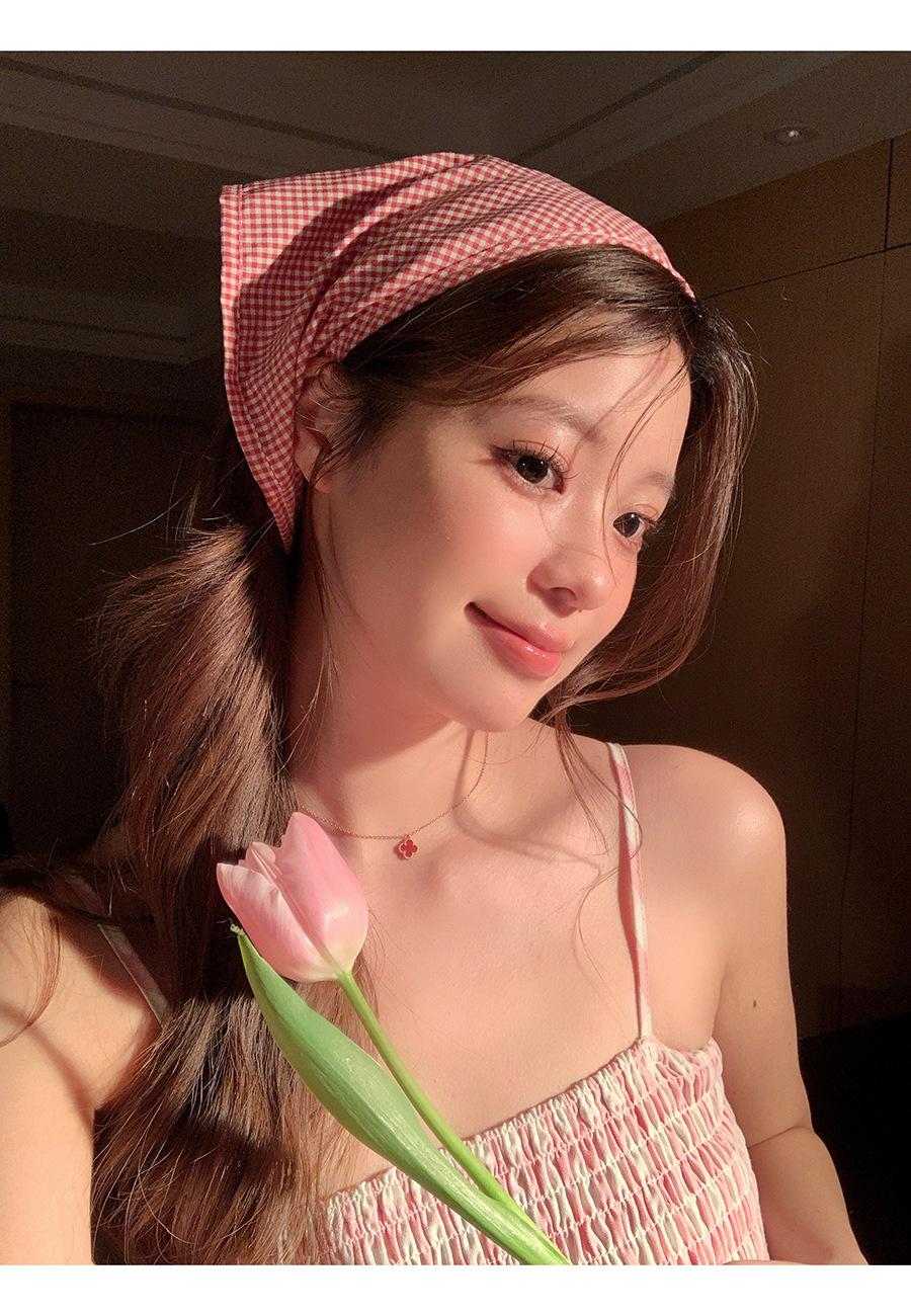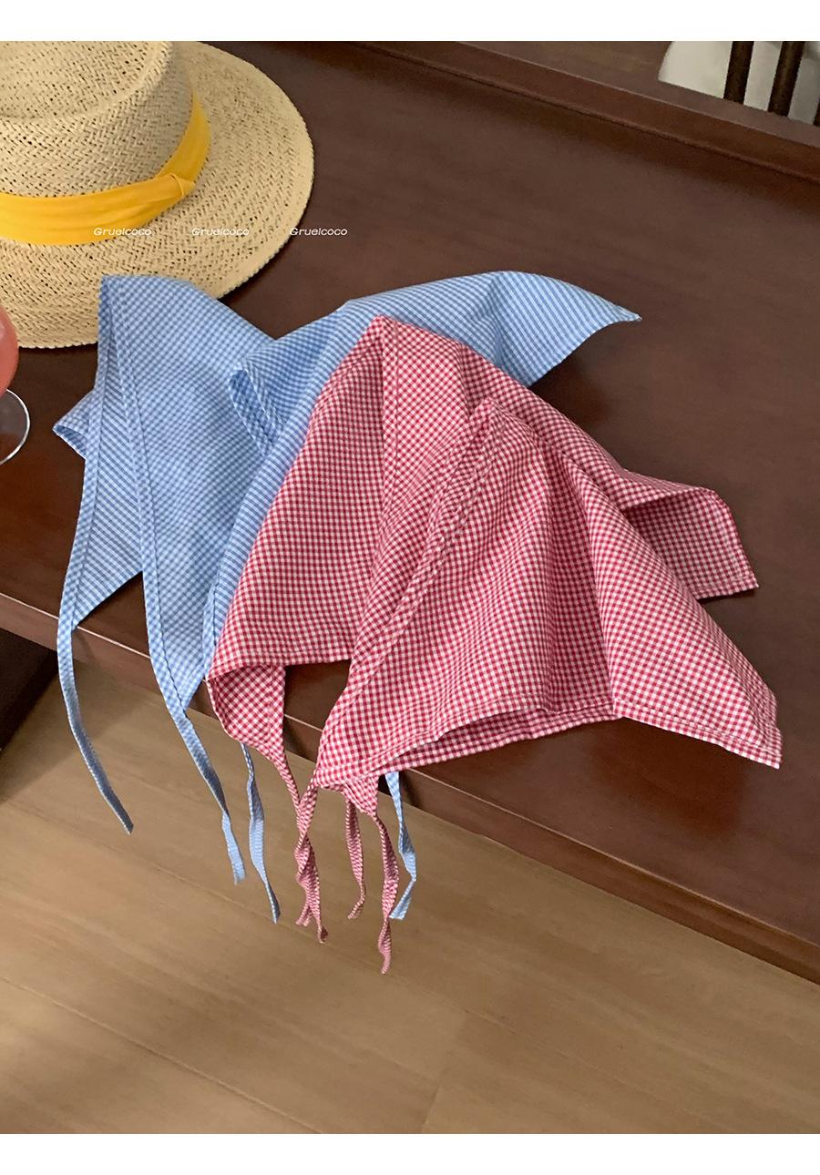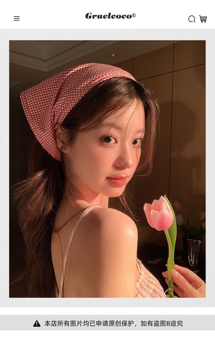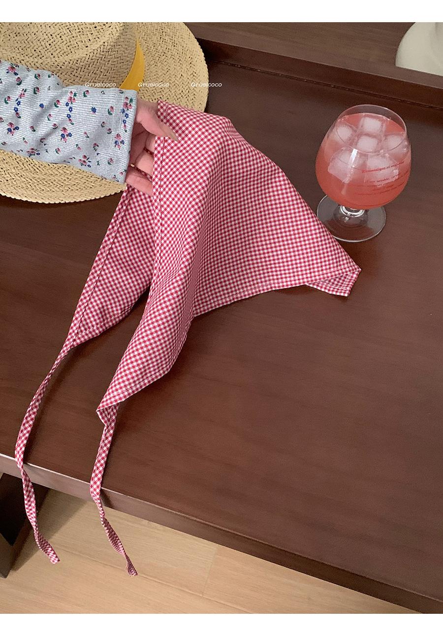 Atmósfera de fotografía dopamina pañuelo para la cabeza triángulo ins de alta calidad verano rojo a cuadros bufanda francés punta cerrada banda para el cabello