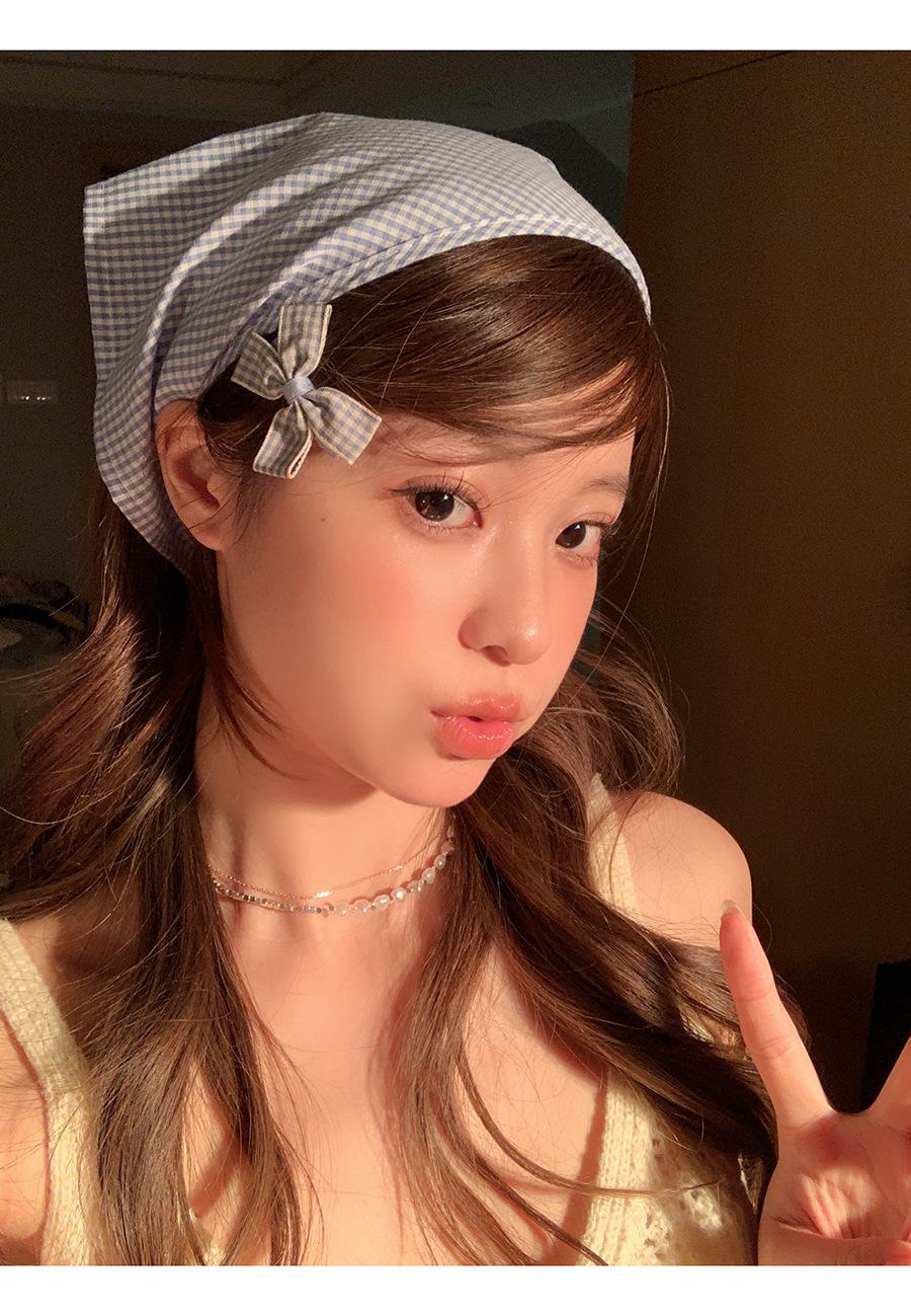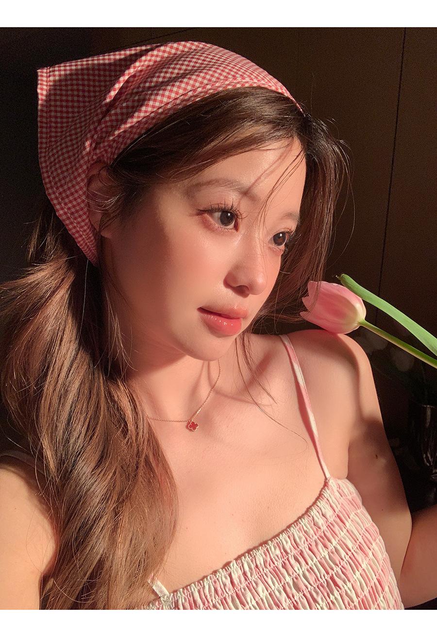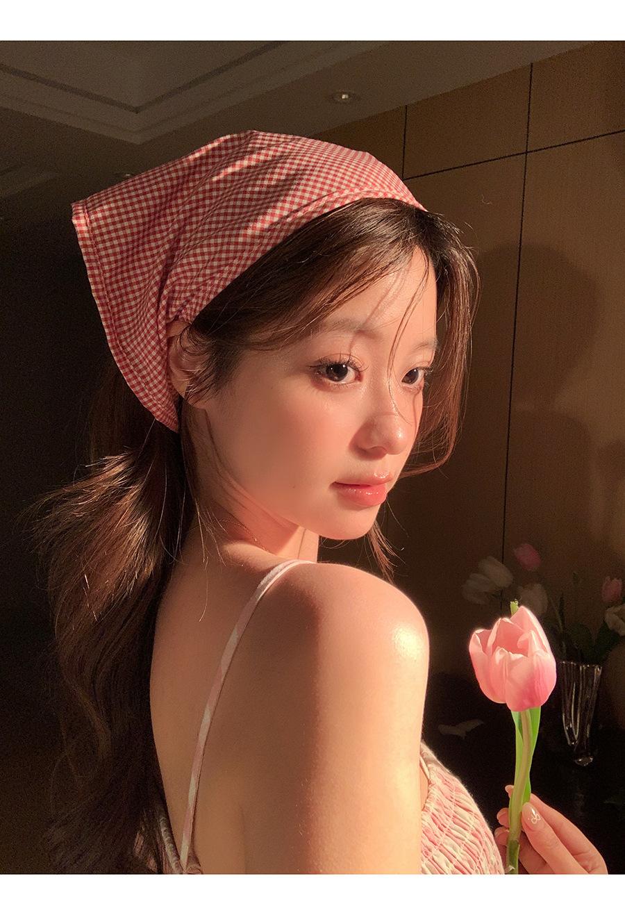 Atmósfera de fotografía dopamina pañuelo para la cabeza triángulo ins de alta calidad verano rojo a cuadros bufanda francés punta cerrada banda para el cabello