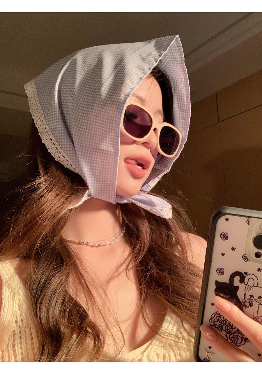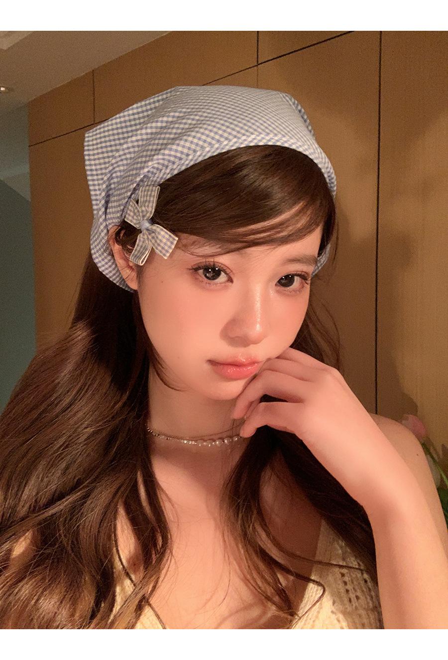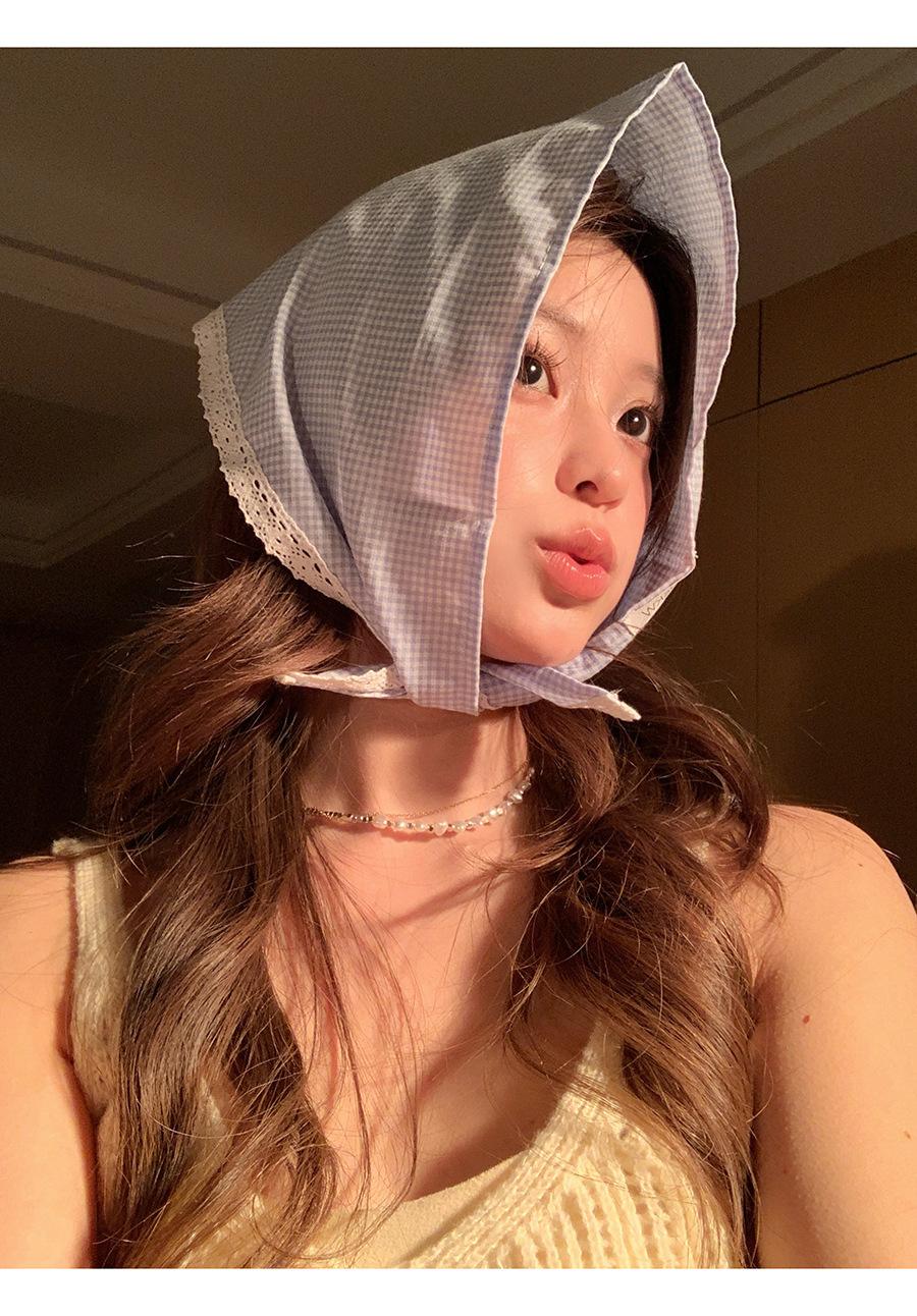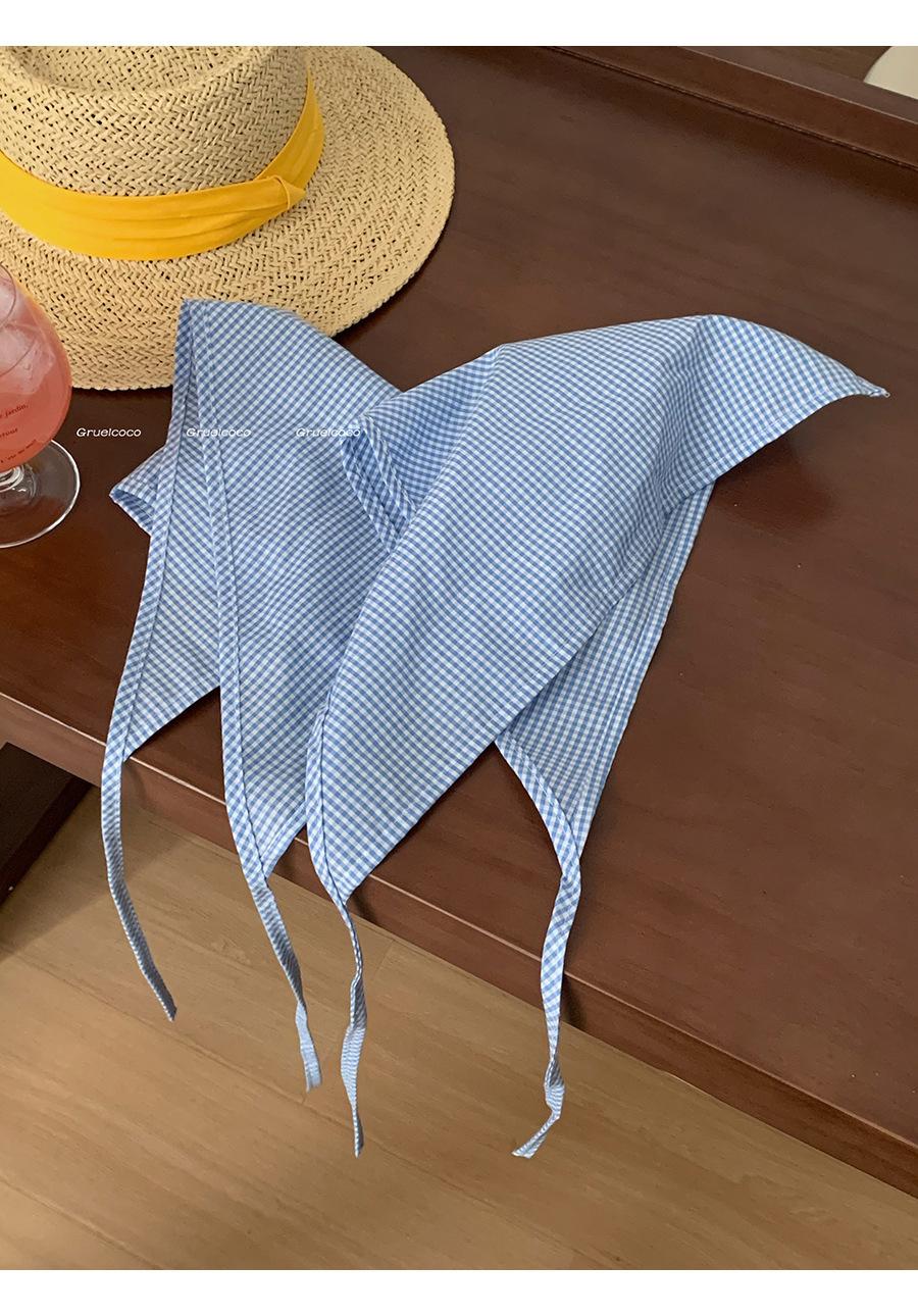 Atmósfera de fotografía dopamina pañuelo para la cabeza triángulo ins de alta calidad verano rojo a cuadros bufanda francés punta cerrada banda para el cabello