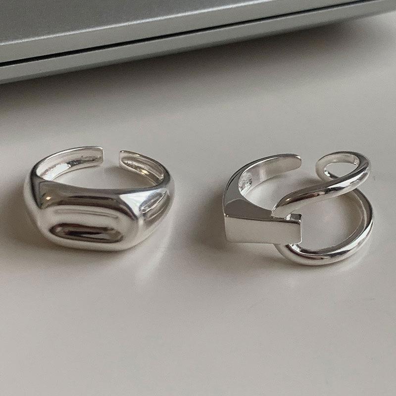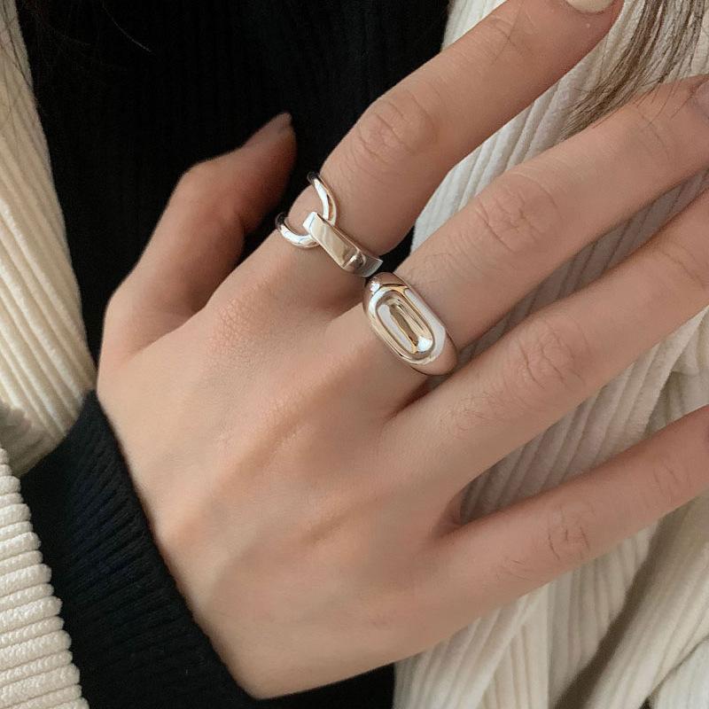 Anillo Geométrico Asimétrico para Mujer Anillo Abierto Ovalado con Bulto Plata S925 Moda Personalizada Hip-hop Versátil Anillo de Dedo