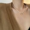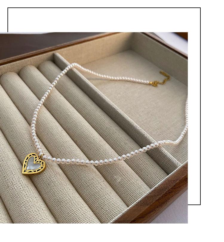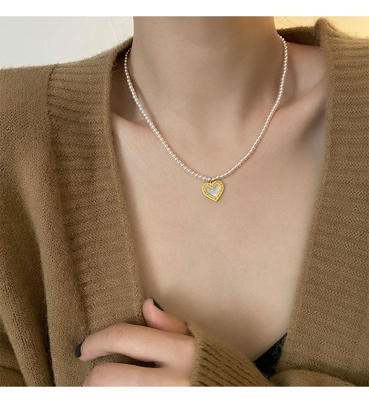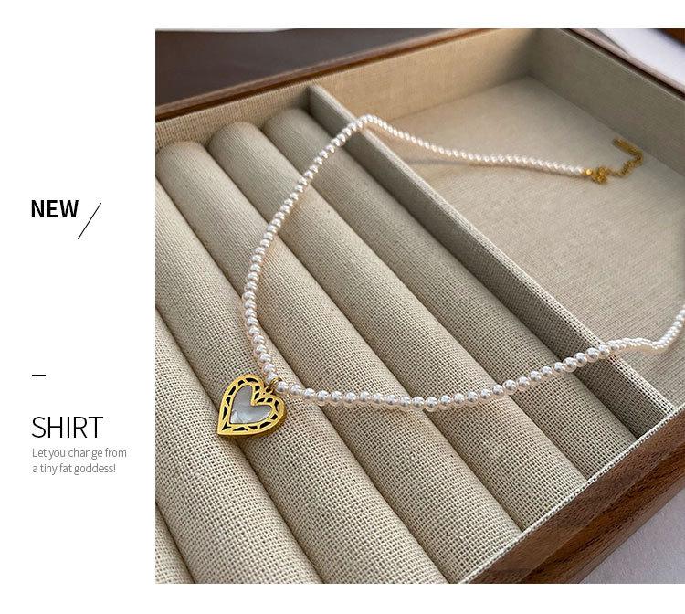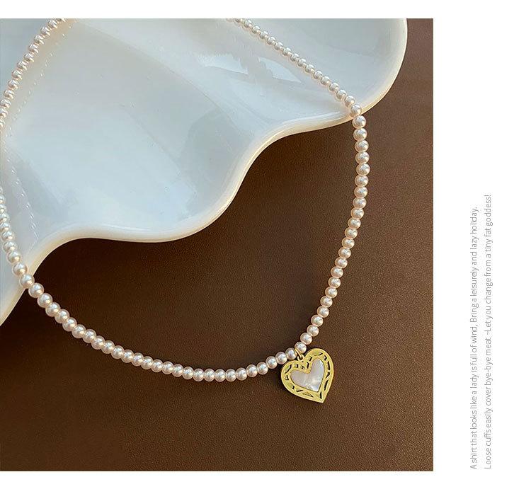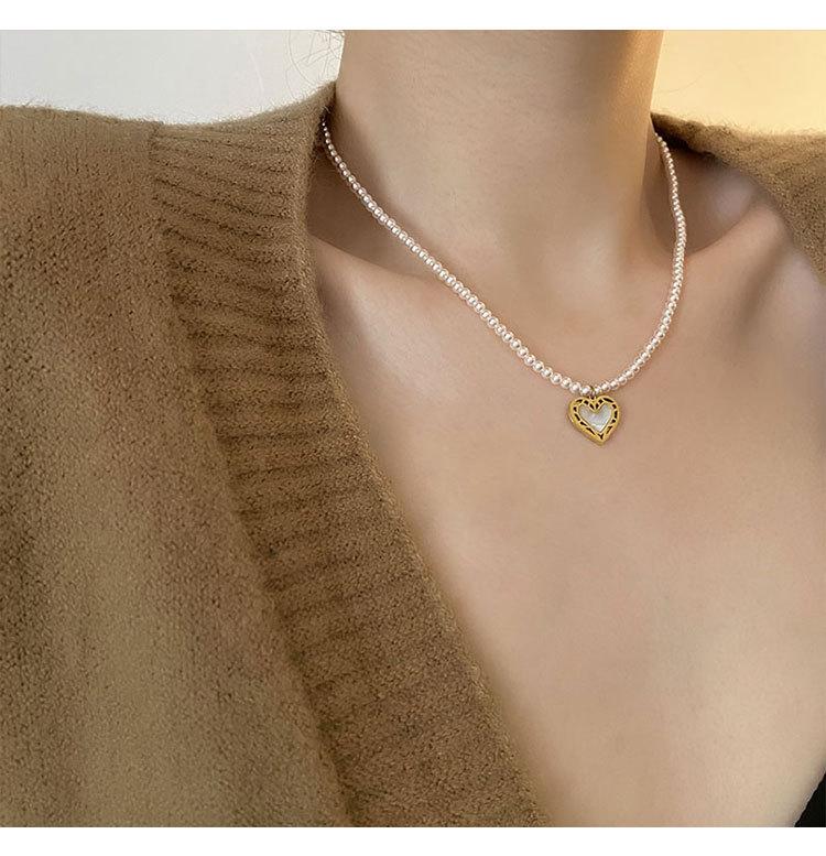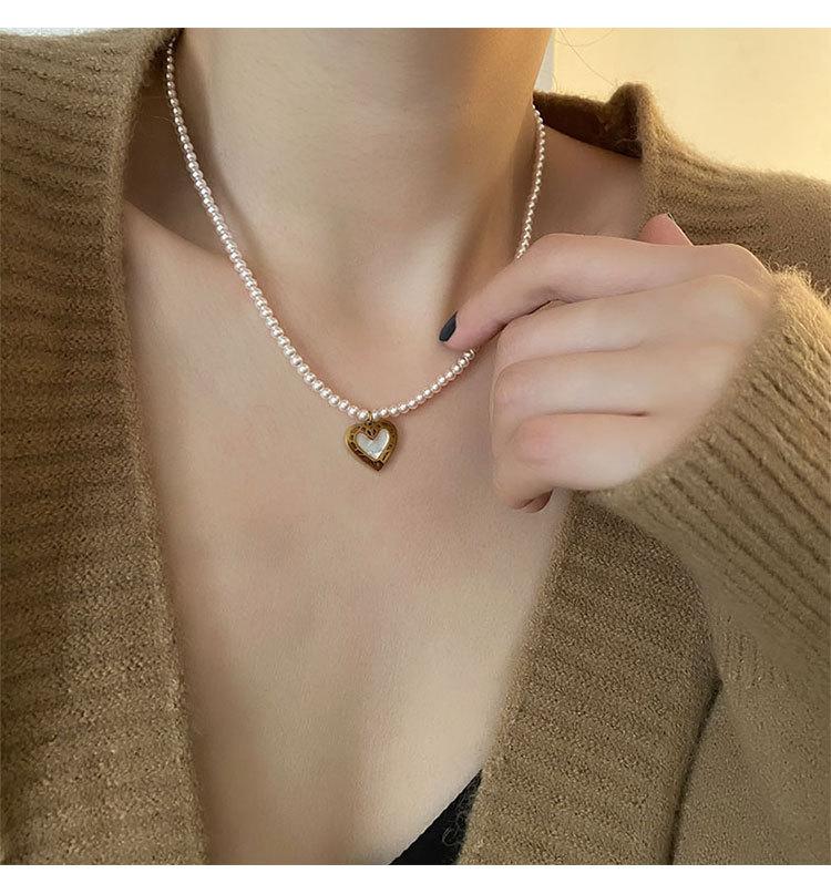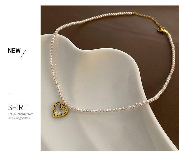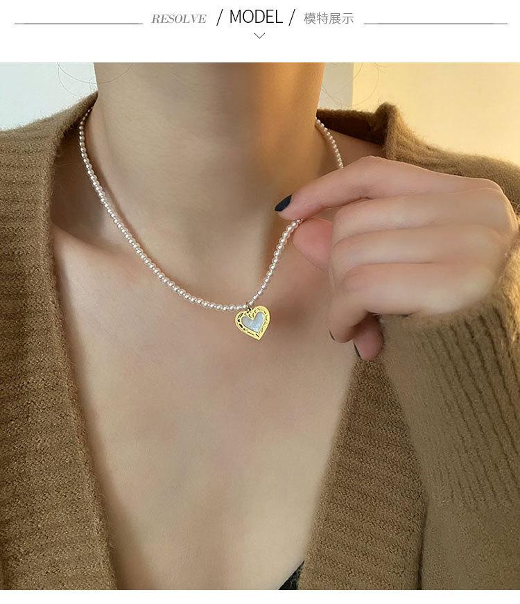 Collar de Acero de Titanio con Colgante en Forma de Corazón de Cuentas Rosas Naturales Cadena para Clavícula Fácil de Sentir Collar de Moda Nuevo para Mujer que Combina con Todo