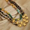 05-C16 pink beaded titanium steel love necklace