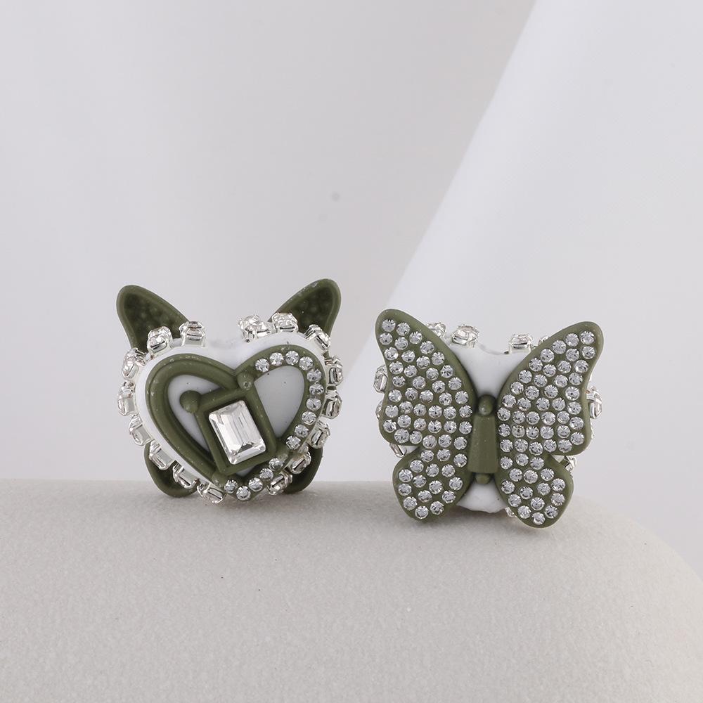 Bola de cerámica blanda de Nepal con diseño de mariposa y corazón de amor de doble cara, cuentas de agujero recto, llavero para teléfono móvil, collar, accesorios DIY