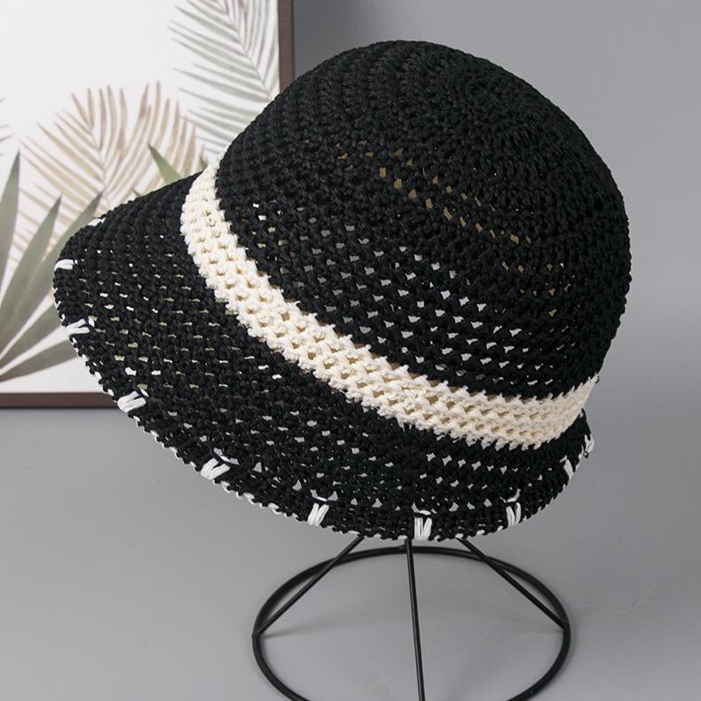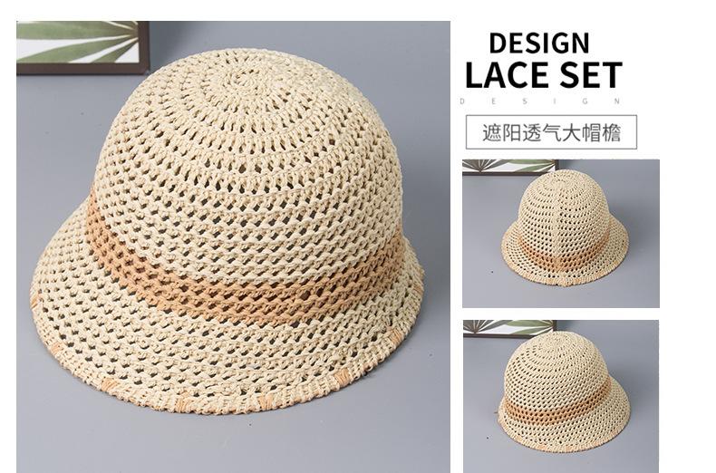 Sombrero de pescador de primavera y verano para niños, moda coreana, color a juego, transpirable, de algodón y lino hueco, sombrero de cubo de punto, sombrero para el sol