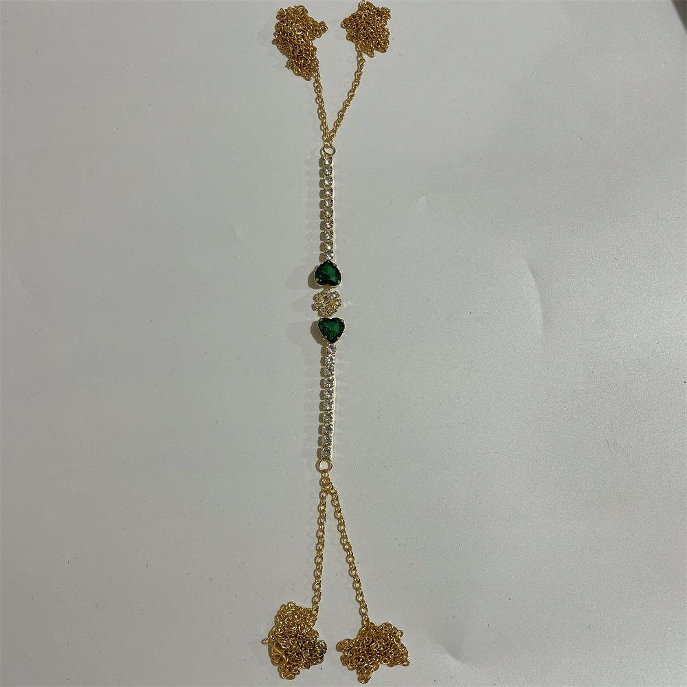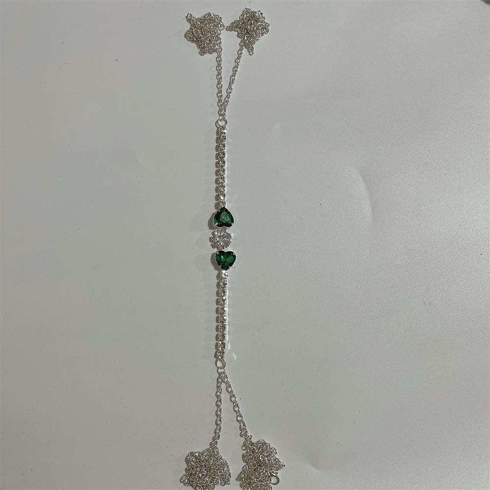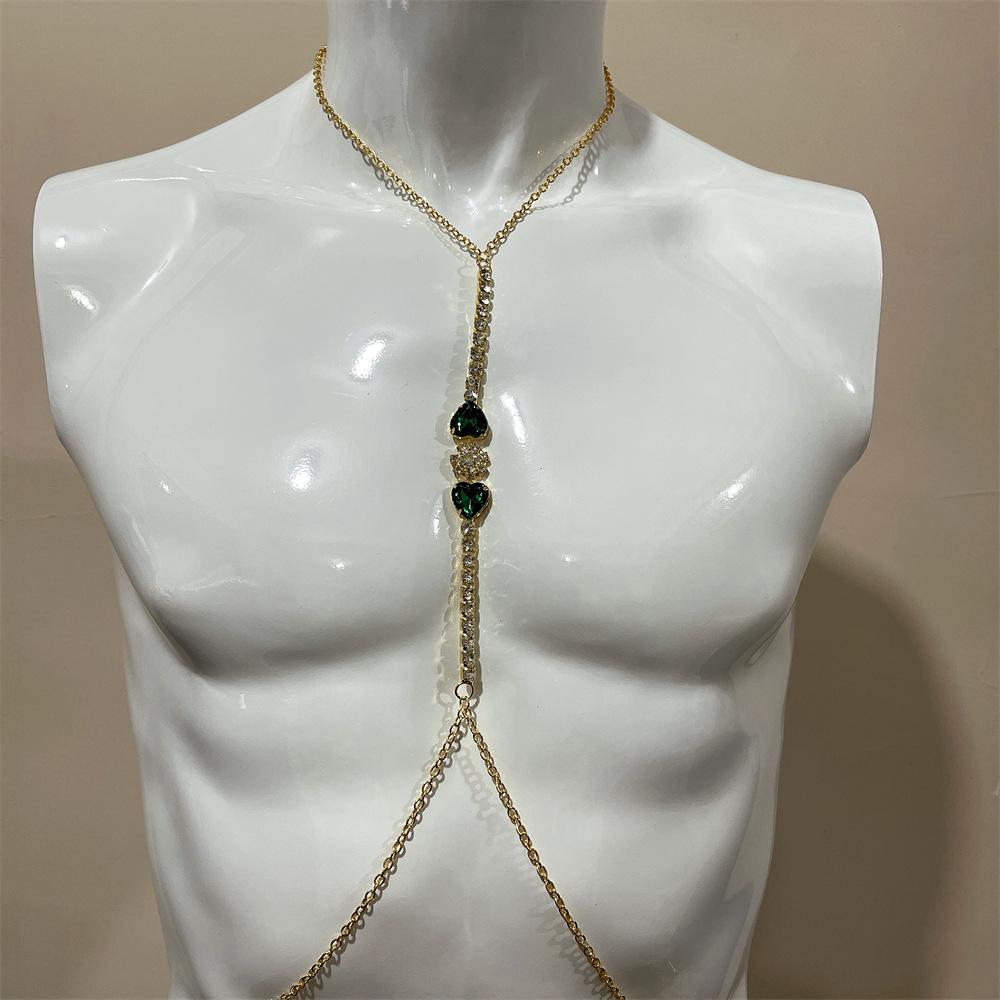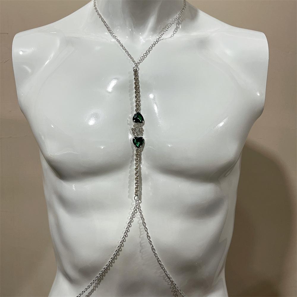 Explosiones de AliExpress diamante verde doble amor cadena de pecho joyería de club nocturno europea y americana cadena corporal sexy de pedrería