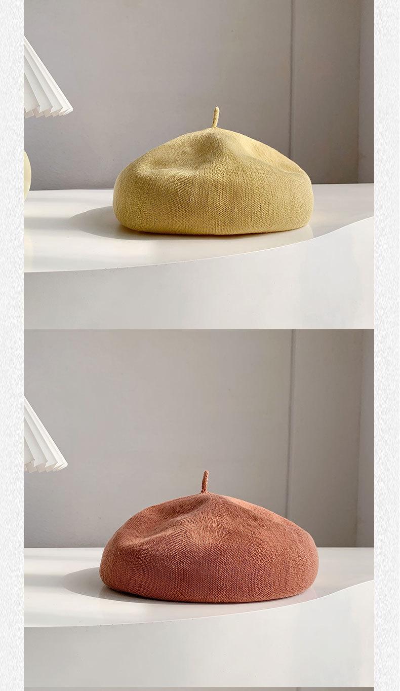 Boina de Verano para Mujer Transpirable que Afina el Rostro Pequeña Elegante Literaria Color Puro Lino Estilo Coreano Sombrero de Pintor Sombrero de Capullo