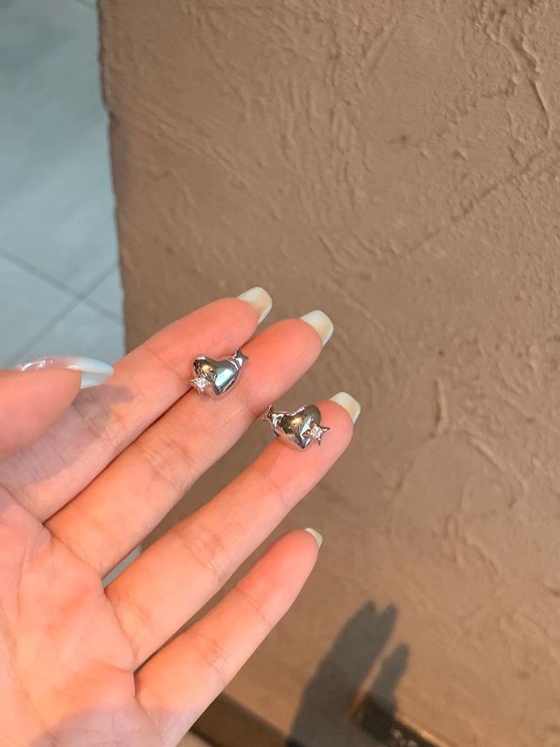 Pendientes de botón de amor para mujer, sencillos, de estilo japonés y coreano, con forma de corazón, dulces y geniales, con forma de estrella de circonita de metal.