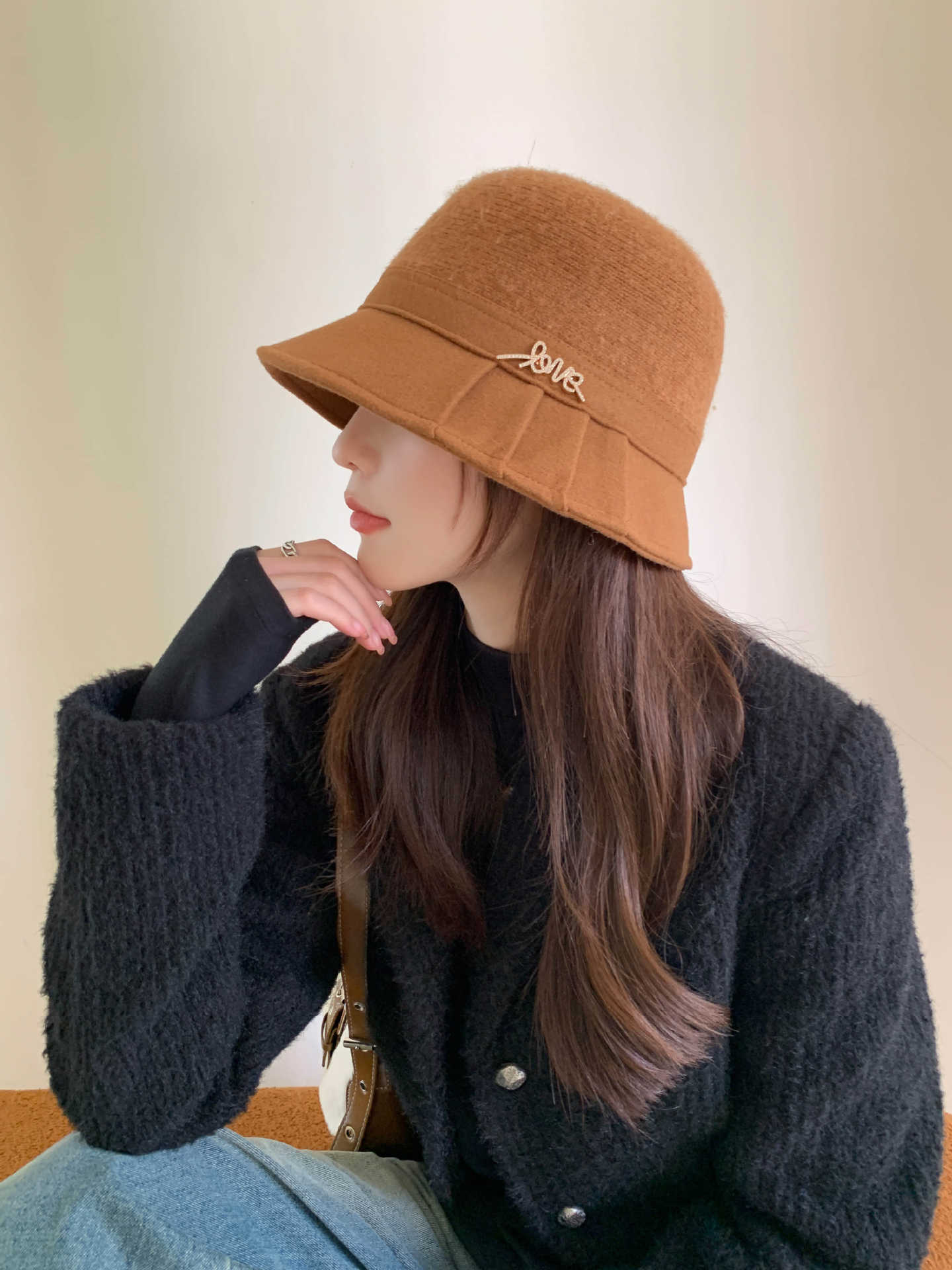 Sombrero de pescador cálido de moda de otoño e invierno para mujer, sombrero de cubo pequeño de red con cara roja, sombrero de lavabo de punto combinable de estilo coreano