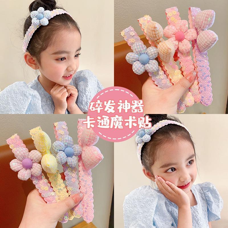 Nueva banda para el cabello con velcro de dibujos animados de Ertong, palillo para el cabello de niña, banda para el cabello de bebé, pegatinas para flequillo, artefacto para cabello roto, venta al por mayor
