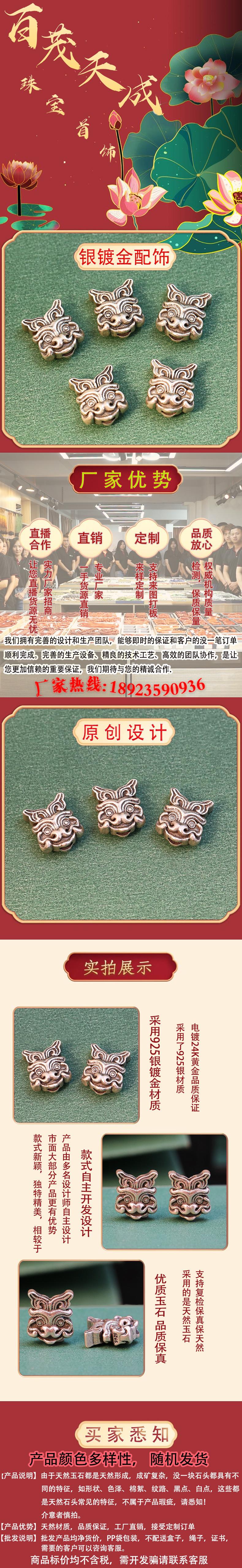 Kirin de plata S925 de cuerpo completo de doble cara trasera Nube accesorios de agujero recto DIY pulsera collar estilo Tíbet pequeños accesorios versátiles
