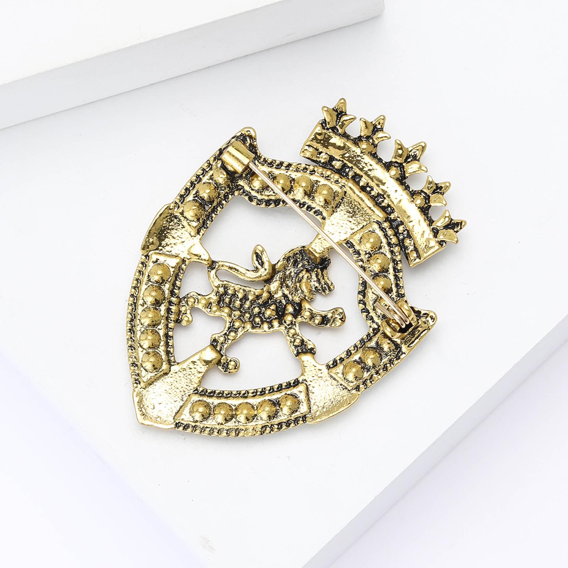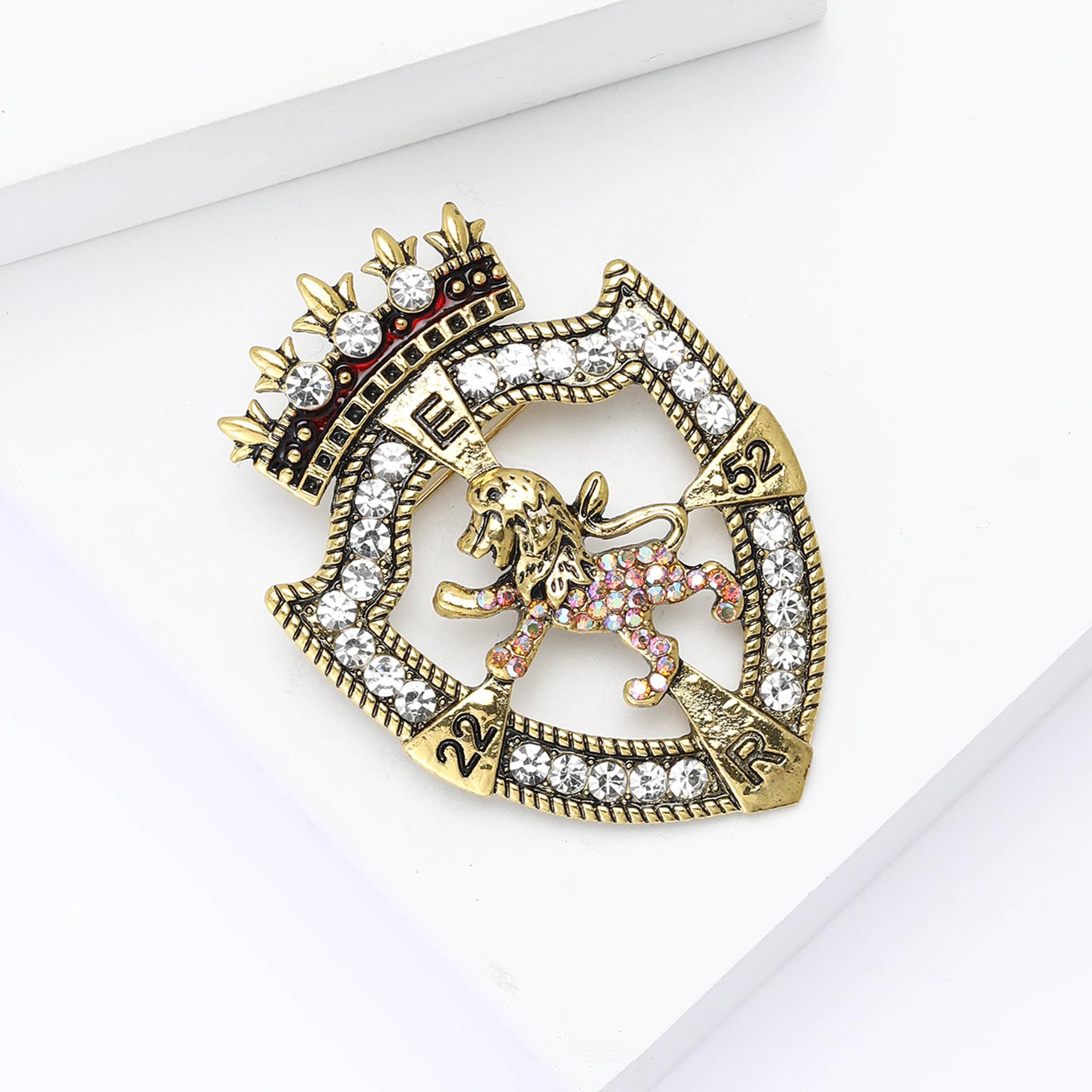 Broche Corona León Escudo Retro Aleación Pedrería Estilo Coreano Pin Joyería Corsage Ropa Hombre y Mujer Creativo de Alta Gama