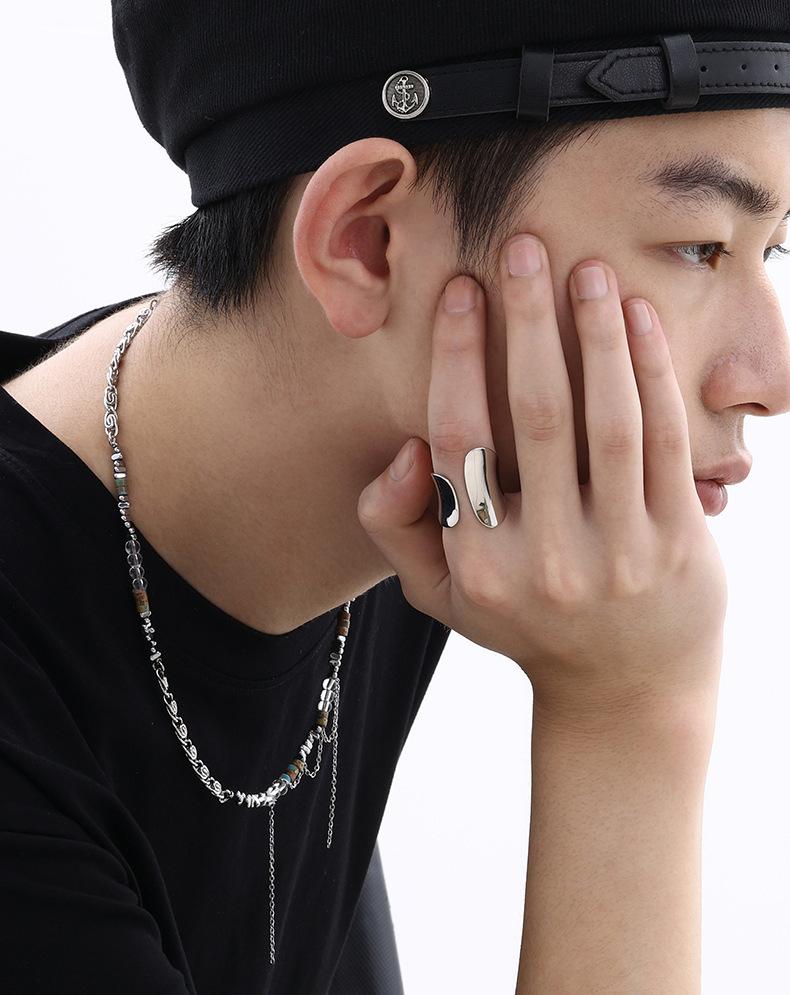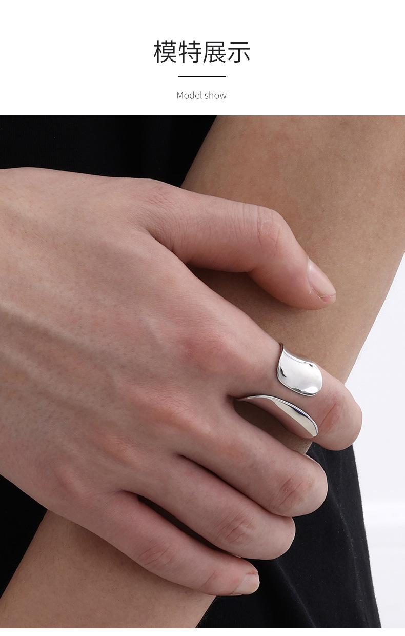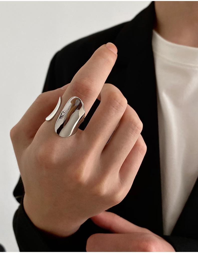 Anillo Ancho Irregular para Mujer, Moderno, Simple, Estilo Minimalista, Anillo Abierto Plateado en Plata S925, Anillo de Dedo Índice Nicho Ins