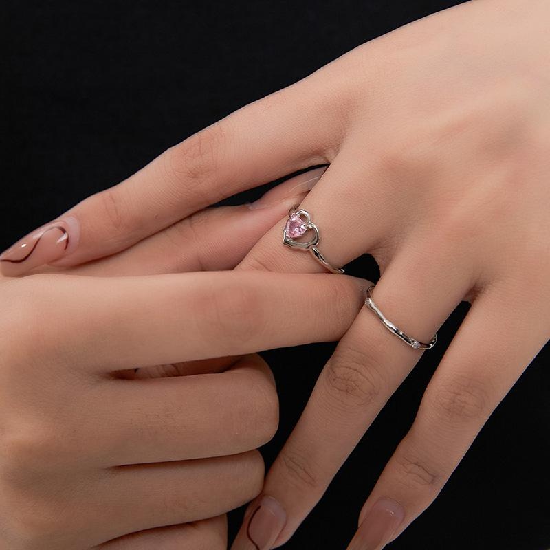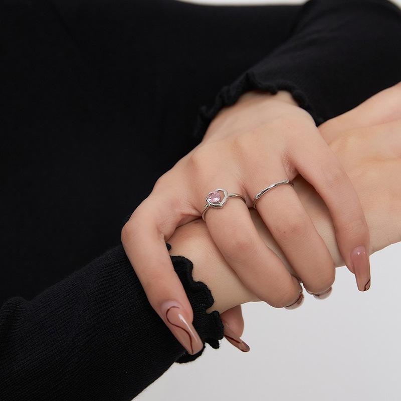 Exquisito Anillo de Zircón Rosa para Mujer, Estilo Dulce y Cool, Moderno Elegante, Trendy, Versátil, de Alta Gama, Anillo de Dedo Índice de Nicho
