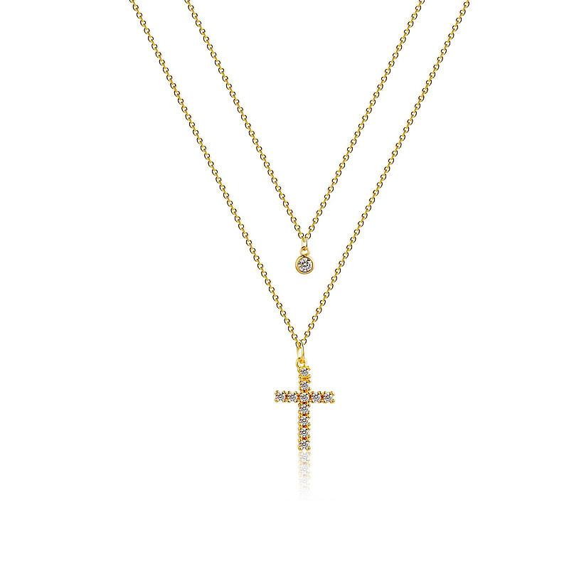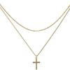 Collar de moda elegante con colgante de cadena de clavícula de Amazon, collar de cruz de diamantes de doble capa para mujer