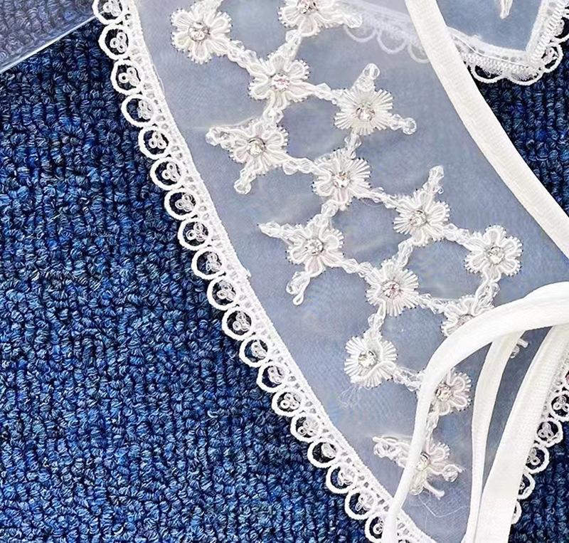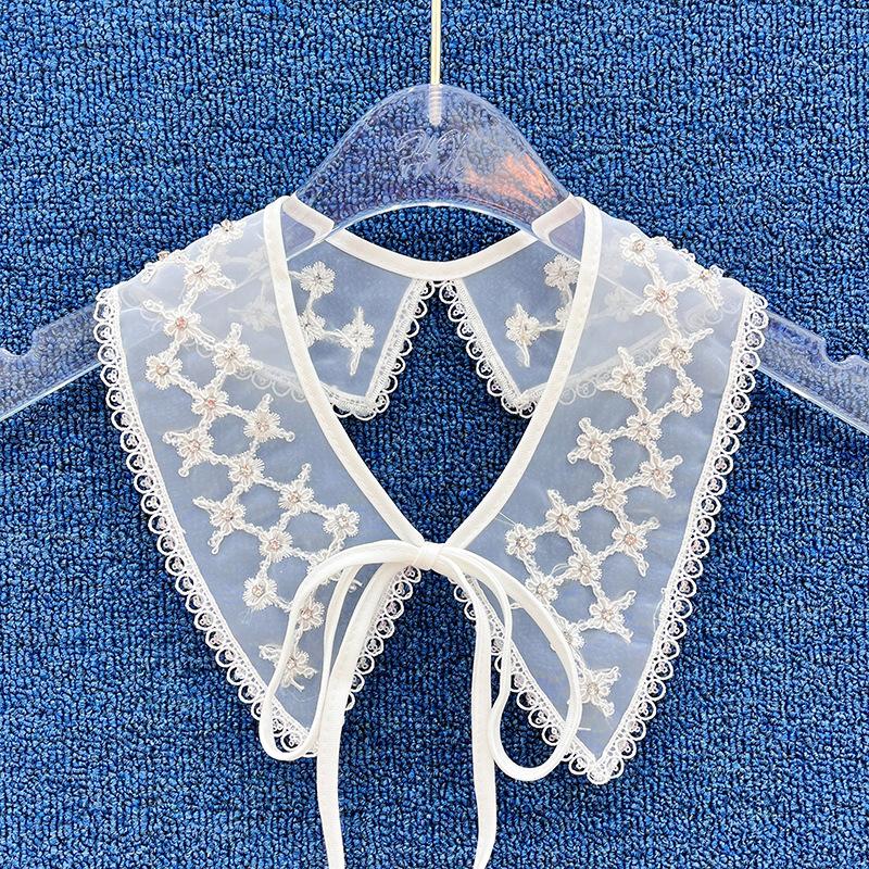 Fabricante Venta al por Mayor Nuevo Negro Bordado Cuello Chal con Cuentas Comercio Encaje Lazo Decoración Cuello Falso Ropa de Mujer