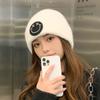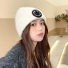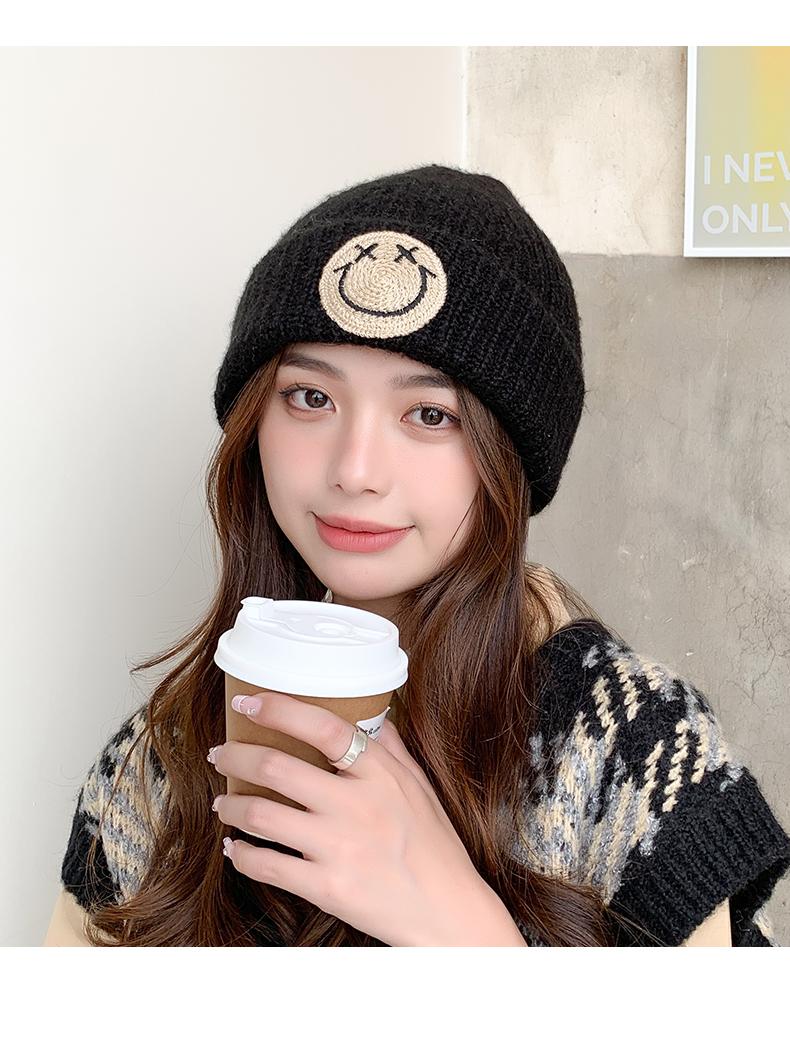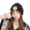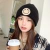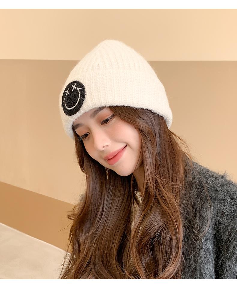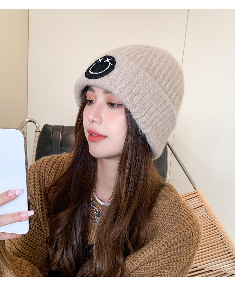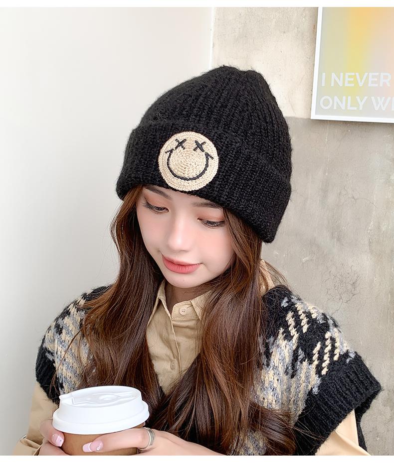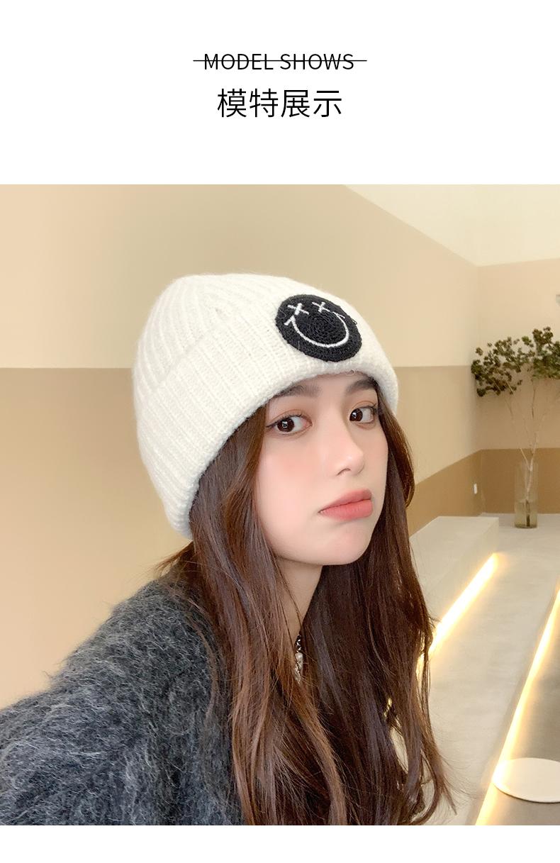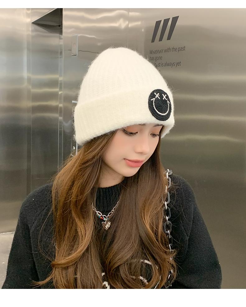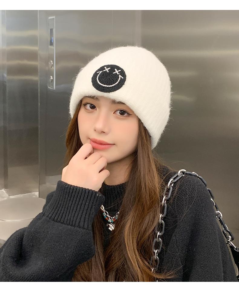 Gorro de lana para mujer, otoño e invierno, con cara sonriente, moda coreana, pequeño, cálido, suelto, con protección para las orejas, gorro de punto frío