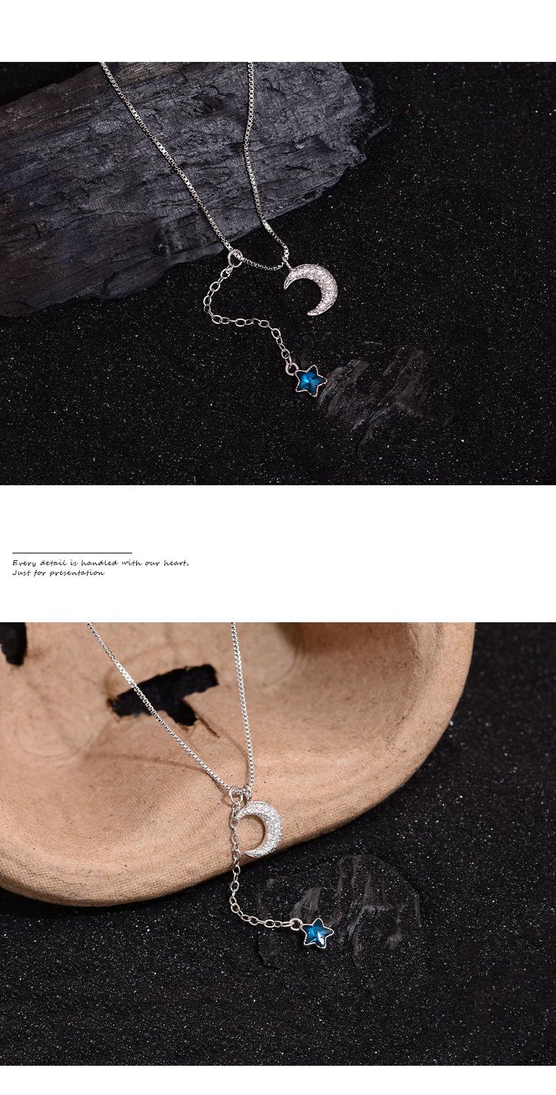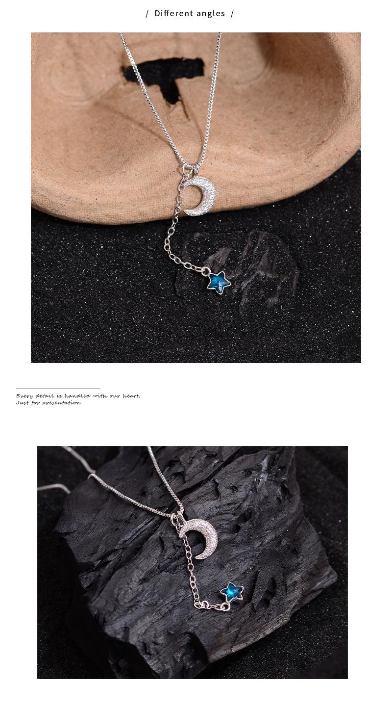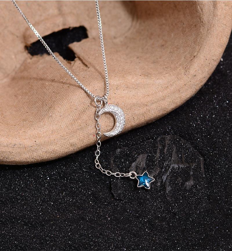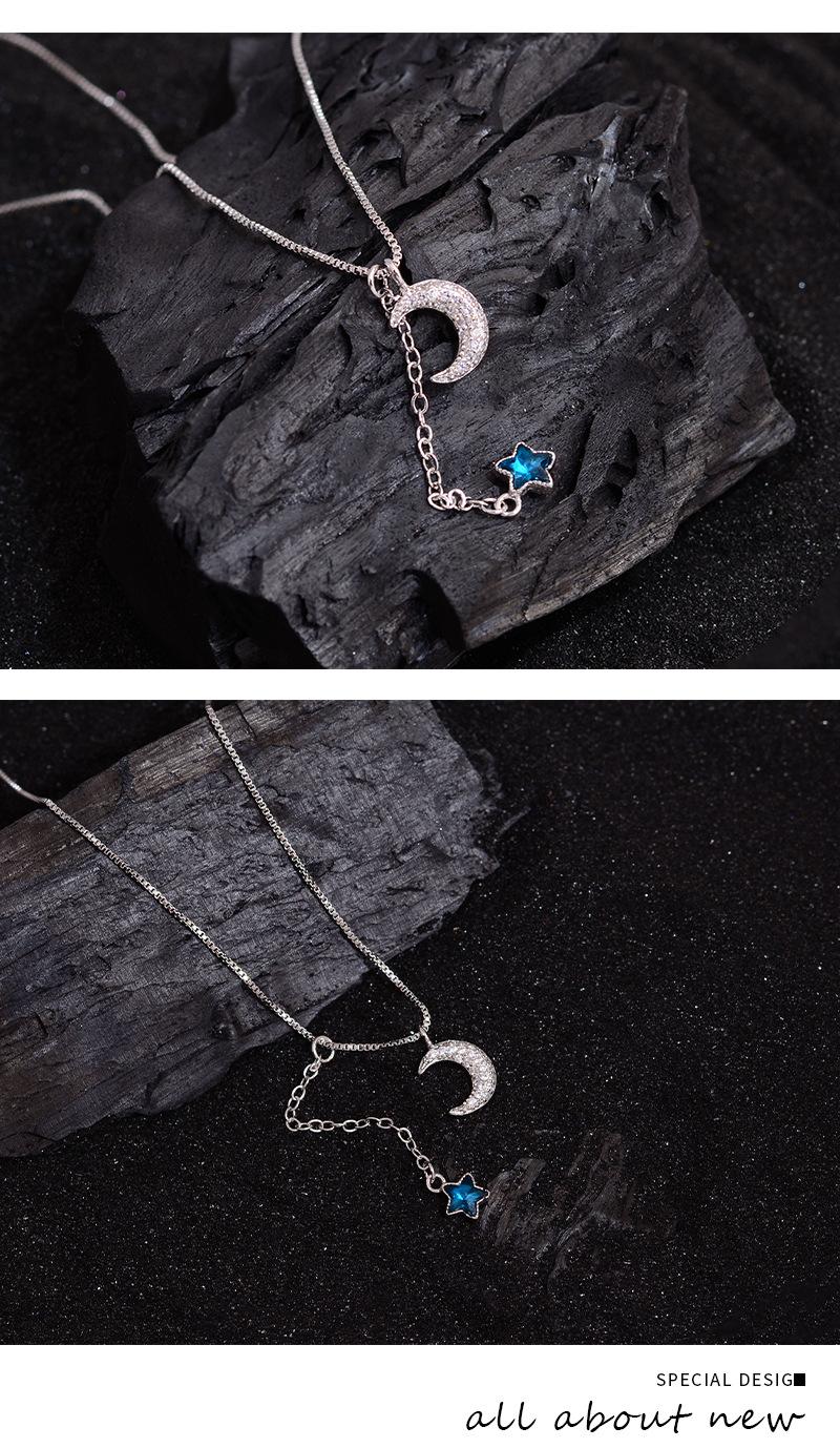 Collar elegante de estilo rojo en línea con circonita de Luna de Estrella para mujer, diseño de nicho de lujo ligero, sentido del diseño, accesorios de cadena para clavícula de Estrella Azul, superventas