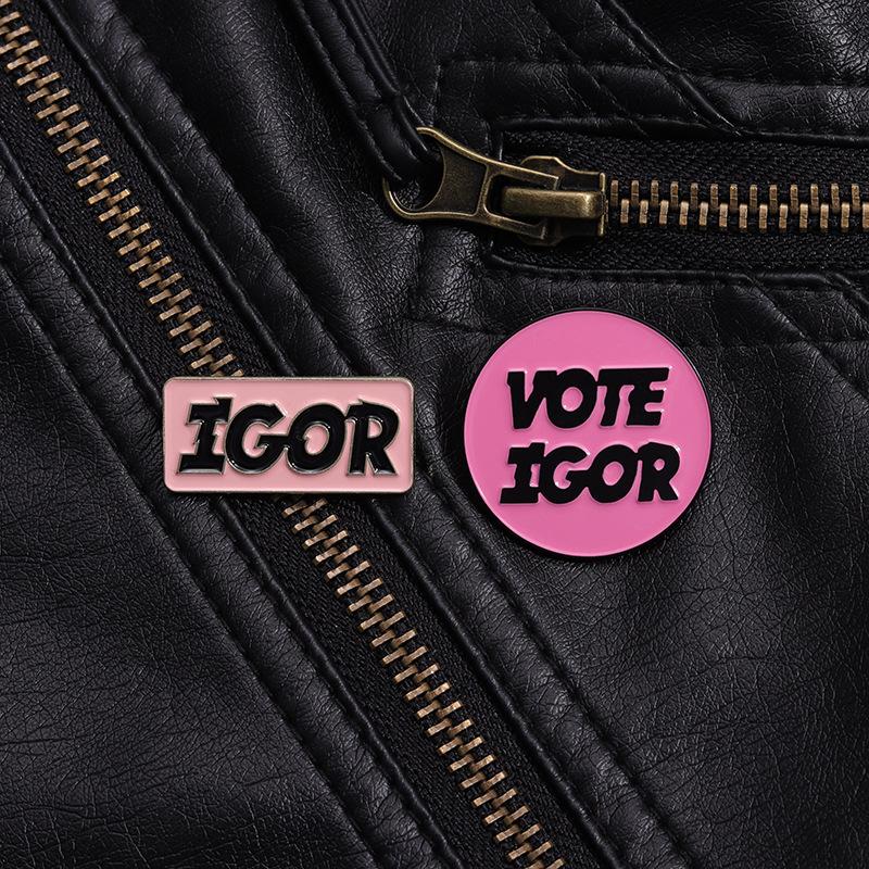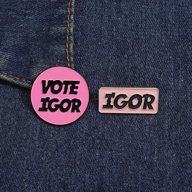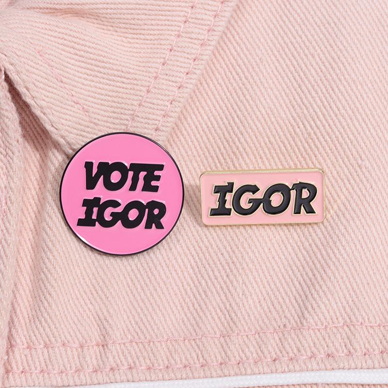 Broche rosa personalizado con temática musical, insignia de metal, accesorios transfronterizos, votación creativa europea y americana para Igor