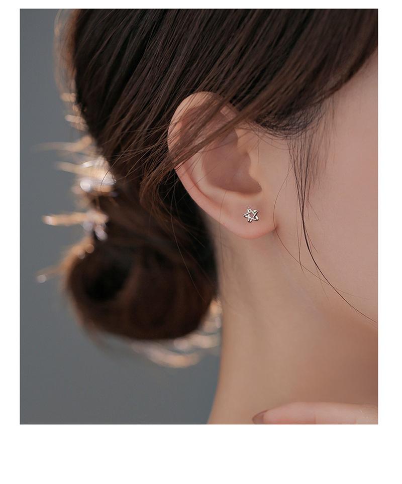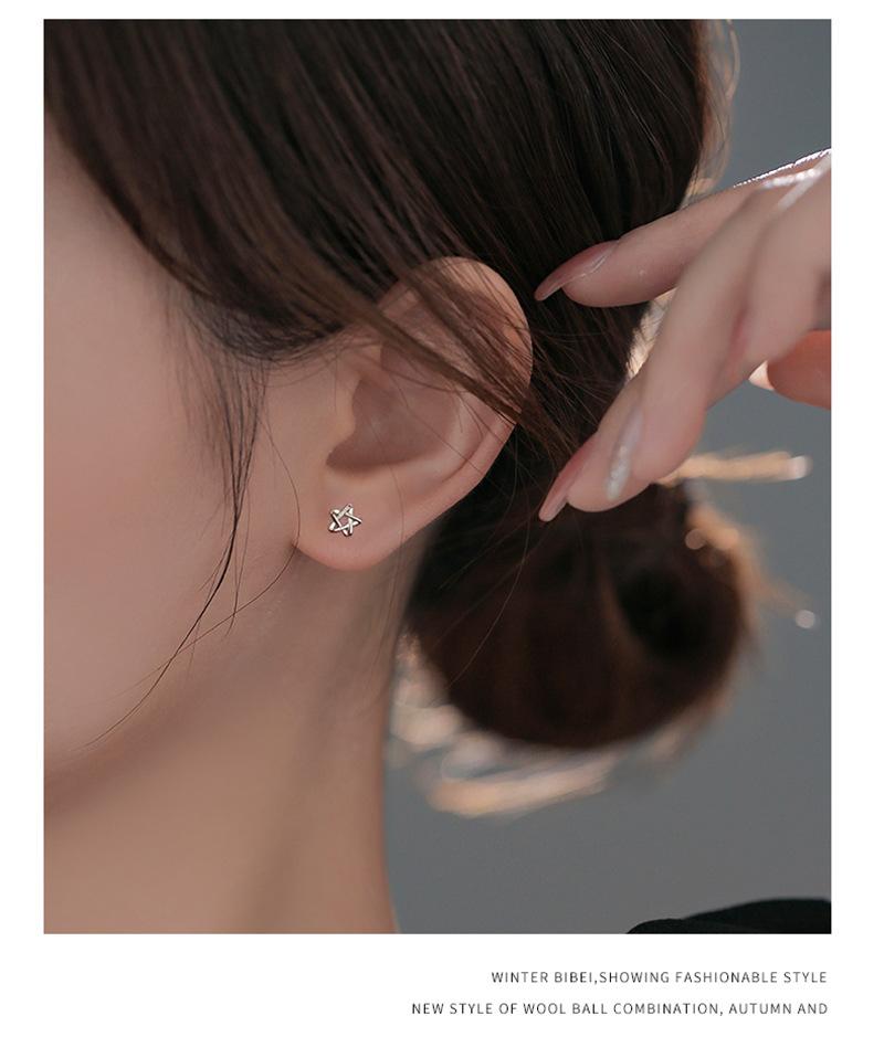 Aretes de Estrella de Cinco Puntas para Mujer Otoño e Invierno Elegantes Simples Tornillos Hebilla de Tornillo Agujeros para las Orejas Aretes de Estrella Clavos para el Hueso de la Oreja Dormir Libre