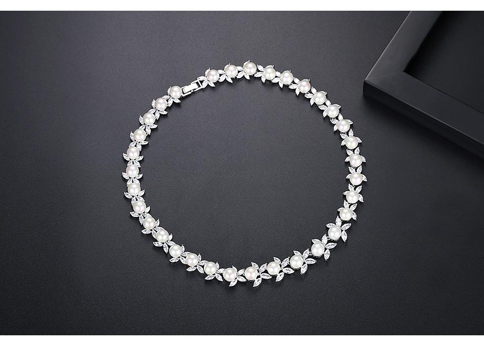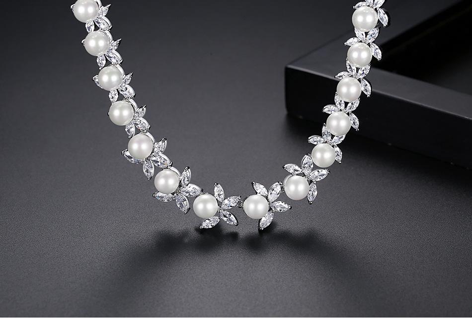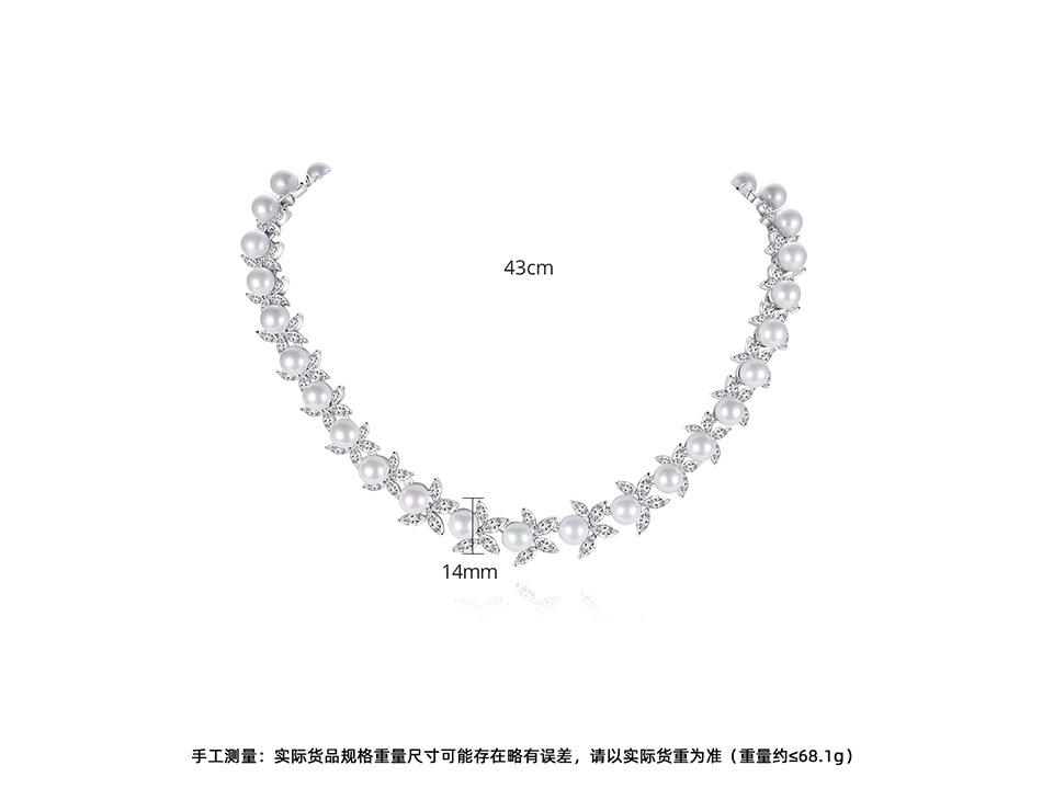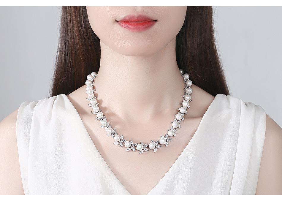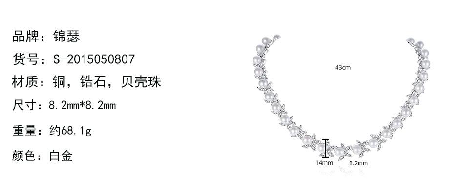Collar de cobre y circonita Jinse, conjunto de lujo europeo y americano para banquete de boda, cadena, collar de concha y perla para mujer