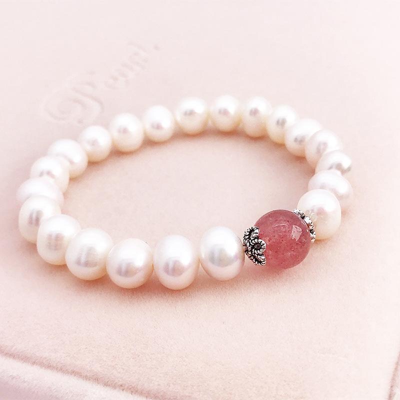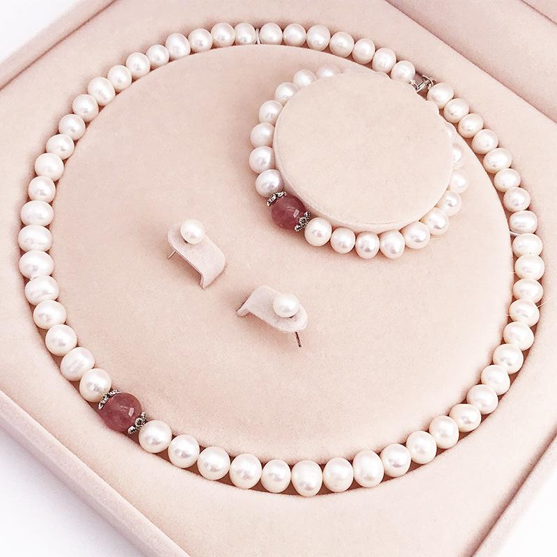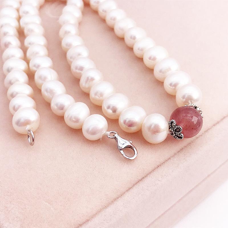 Accesorios Plata 925 Cuentas de Cristal de Fresa Regalo para Mujer Suegra Collar de Perlas Naturales Regalo Día de la Mujer