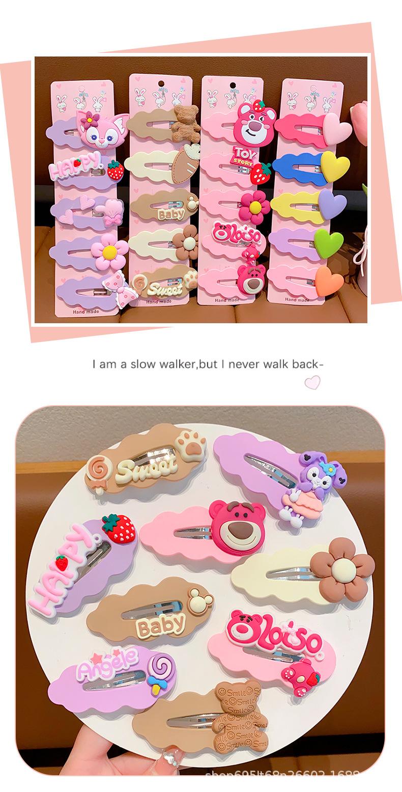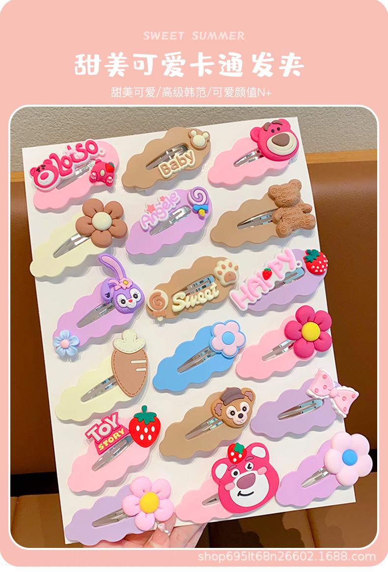 Horquilla rota para niños, linda horquilla de dibujos animados de oso de fresa, horquilla para niñas, pinza lateral para bebé, pinza para flequillo para niña pequeña