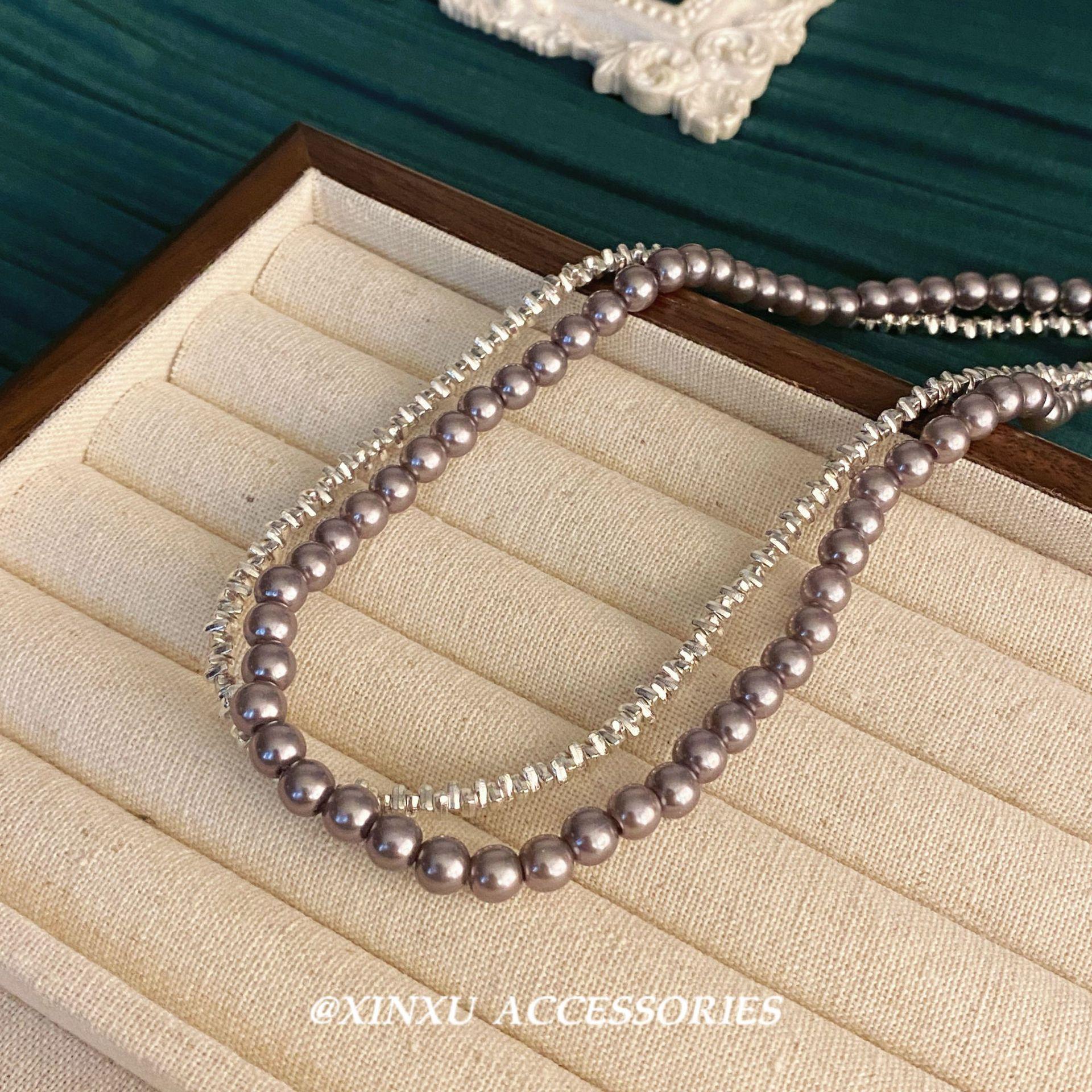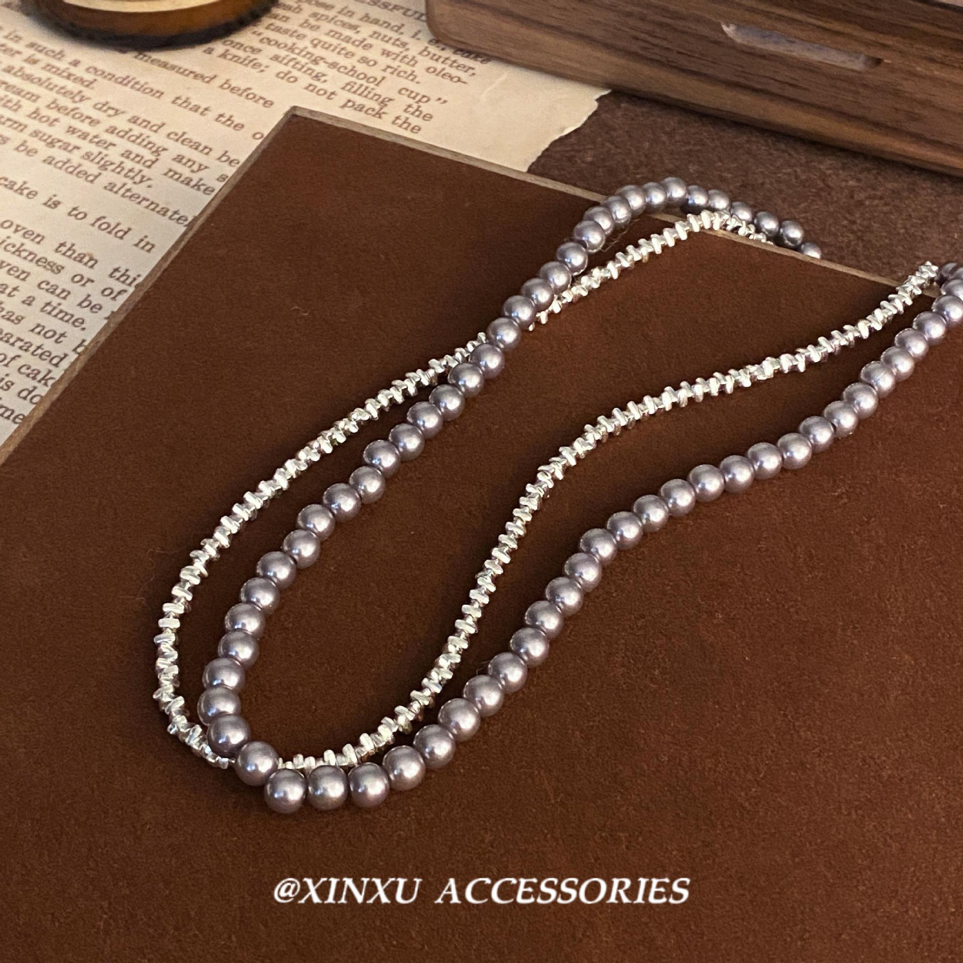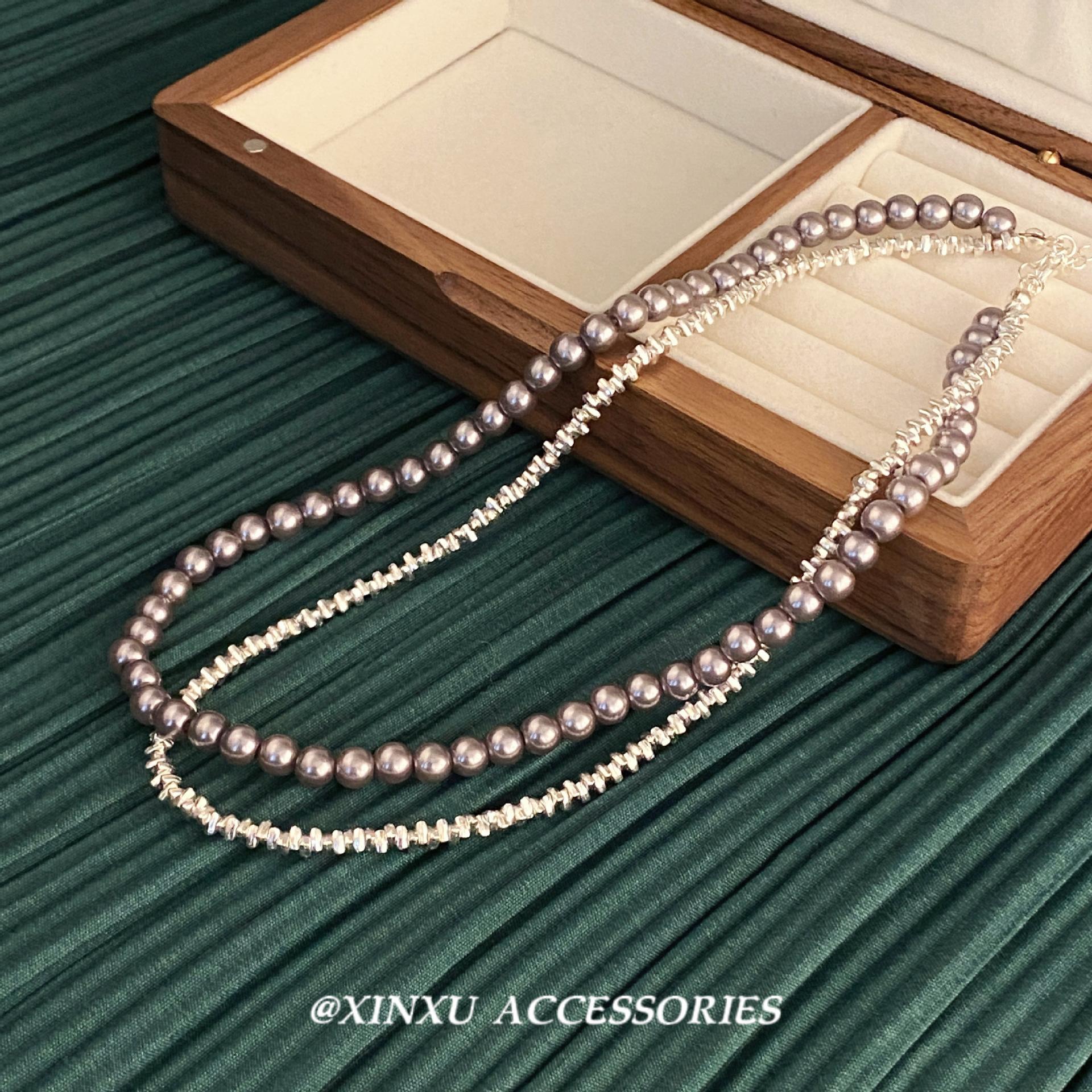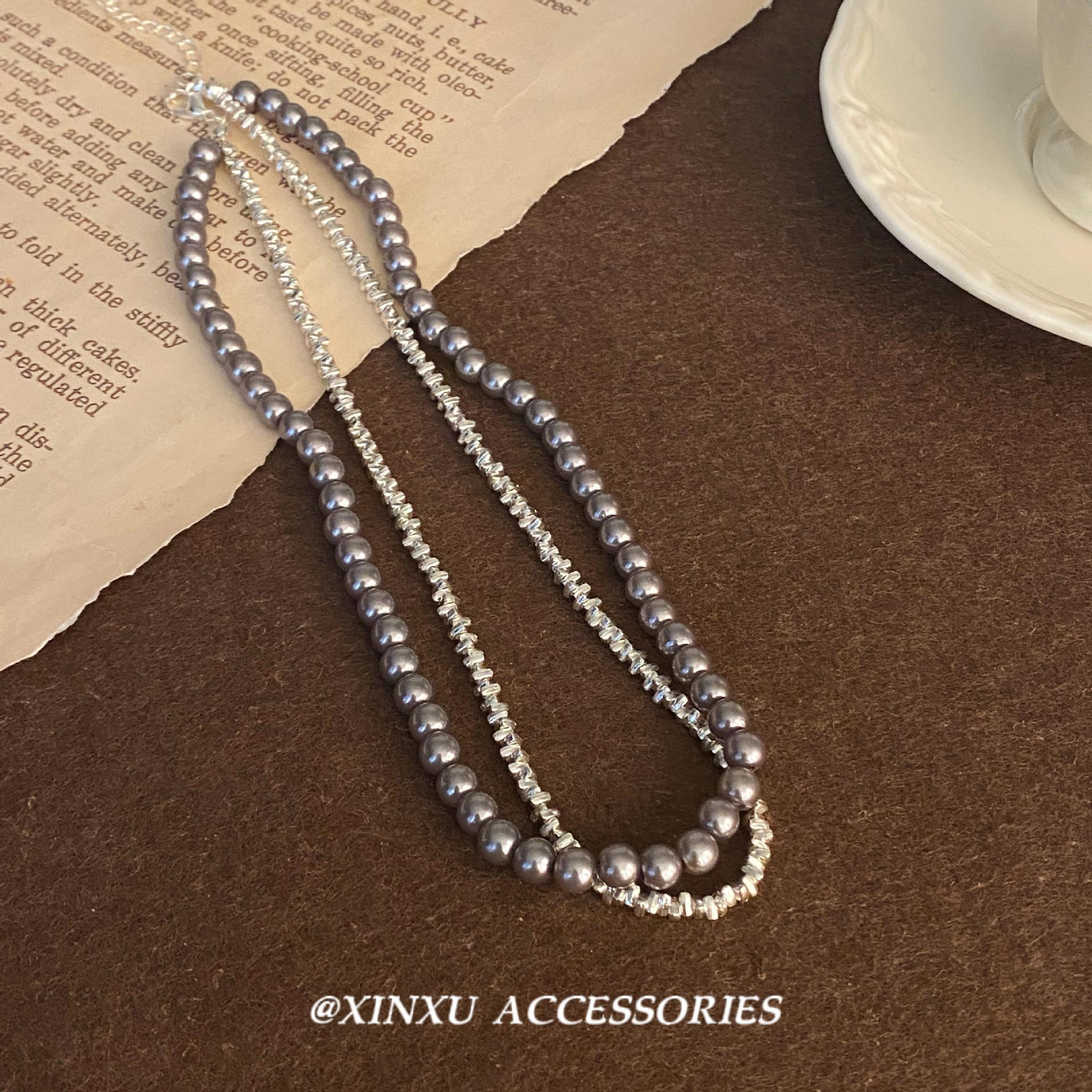 Collar de perlas grises plateadas rotas para mujer, cadena de lana de nicho de lujo ligera, estilo frío, cadena de clavícula, accesorios de collar de alta calidad