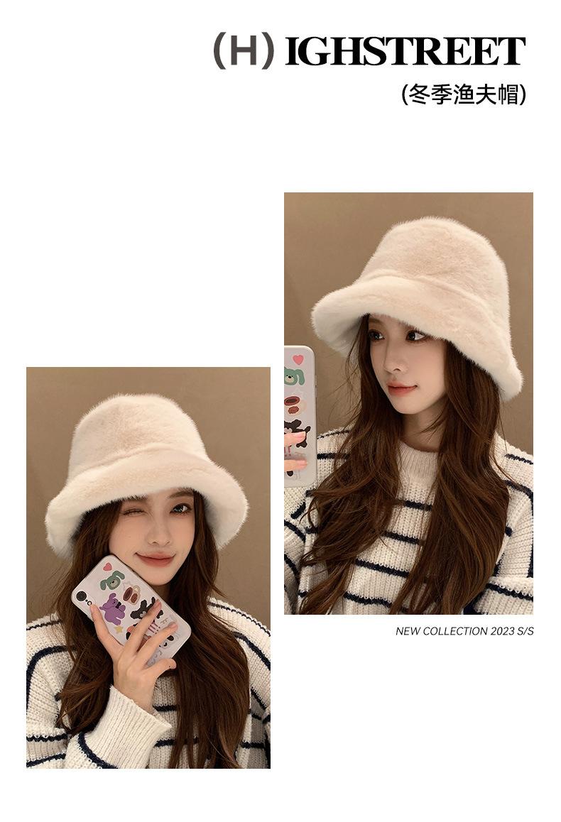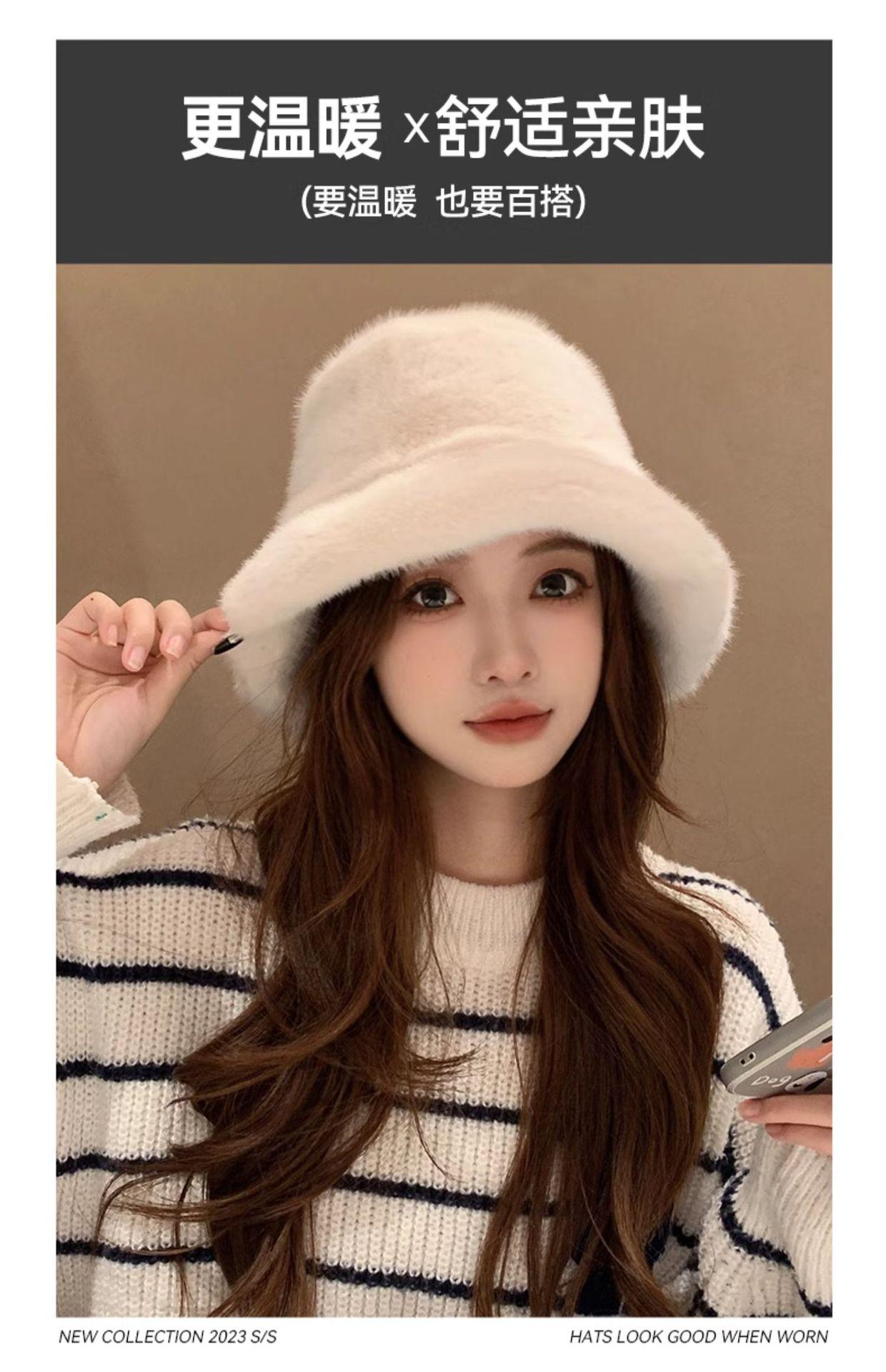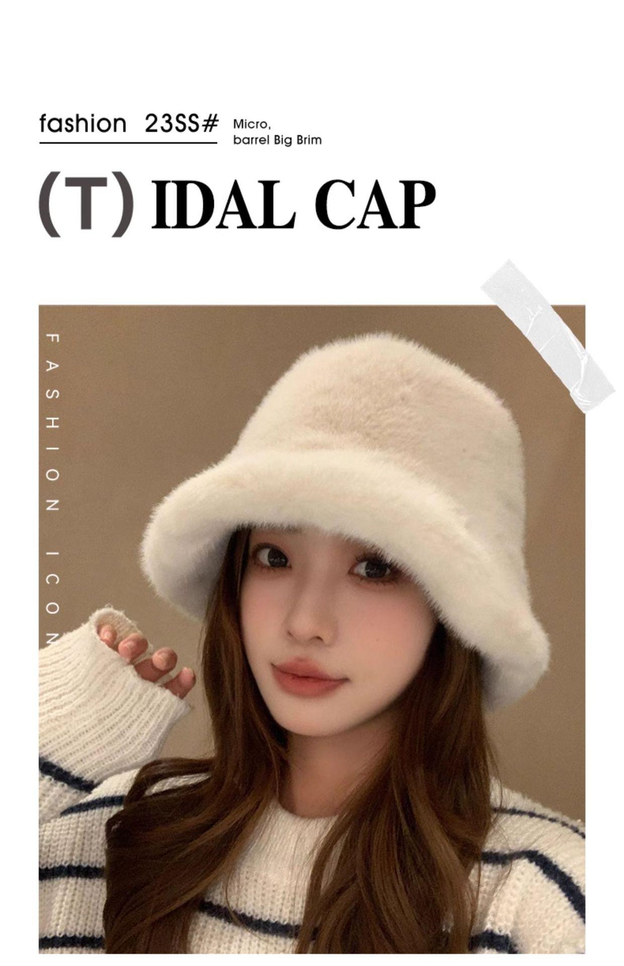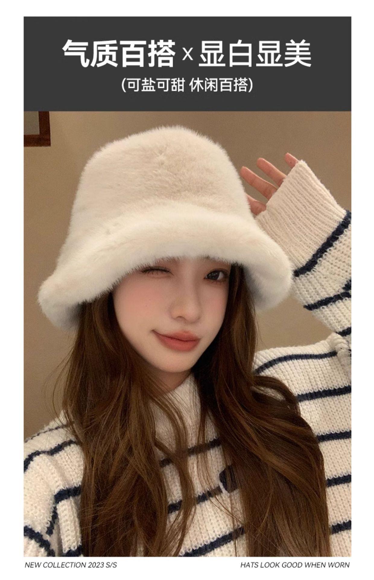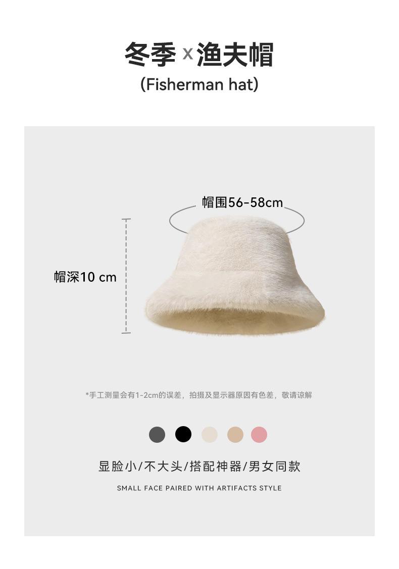 Sombrero de pescador de felpa para mujer, otoño e invierno, nuevo, con gran circunferencia de la cabeza, estilo coreano, versátil, cálido, a prueba de frío, protección para los oídos, sombrero de cubo para lavabo.