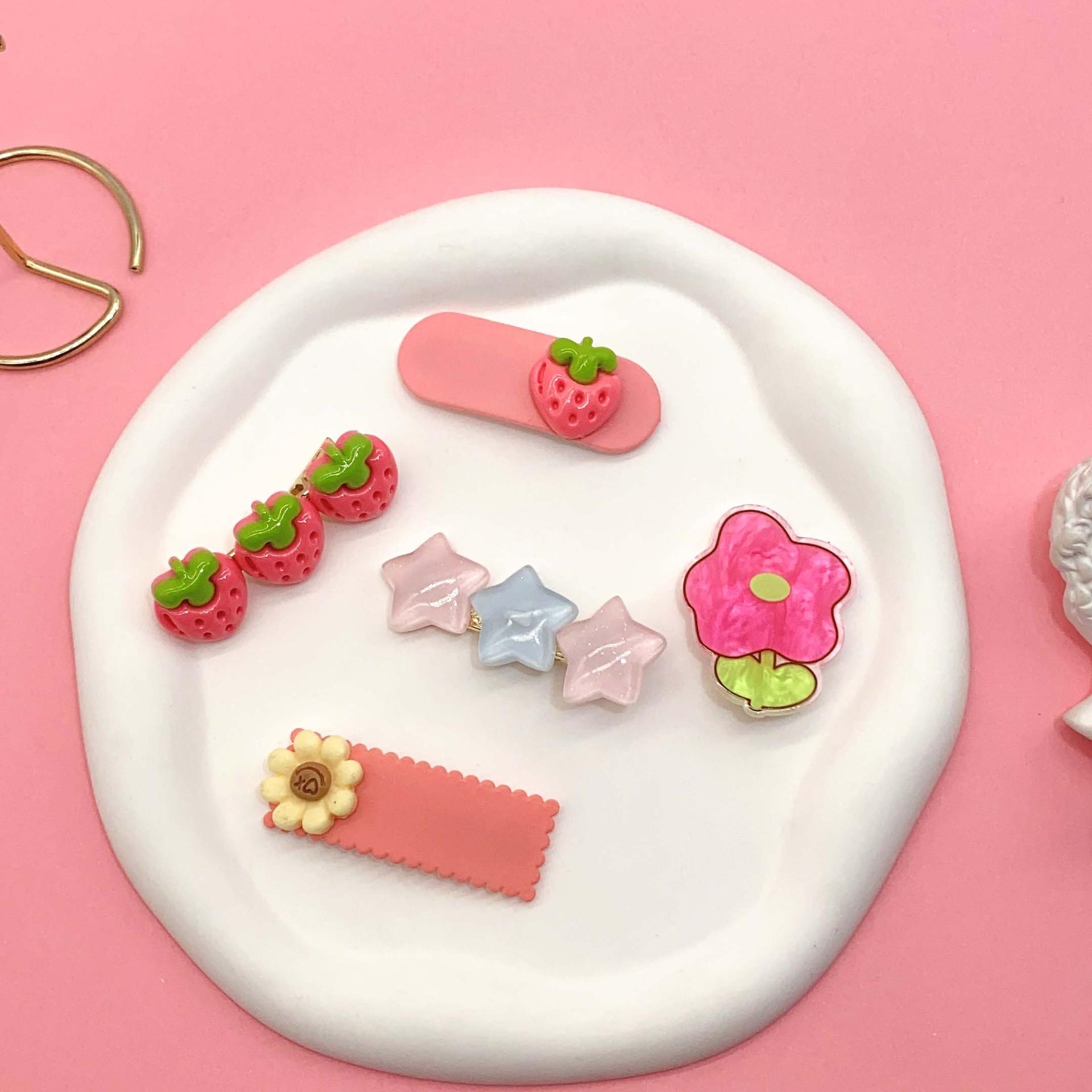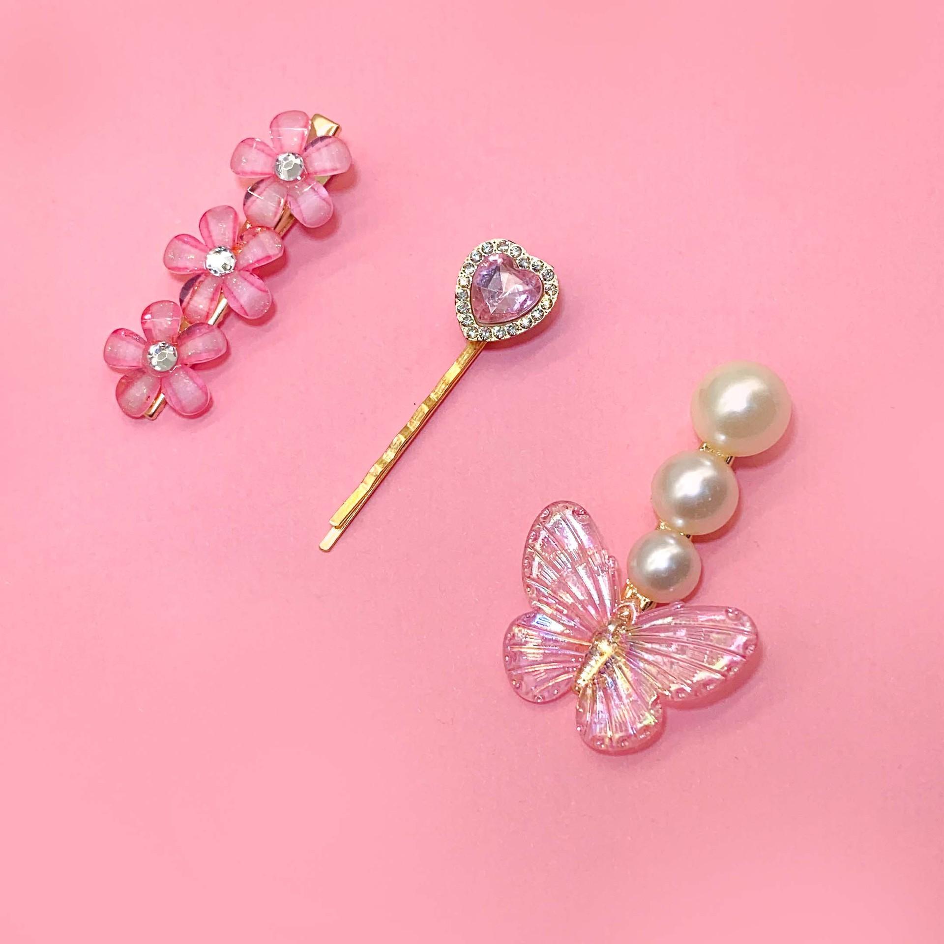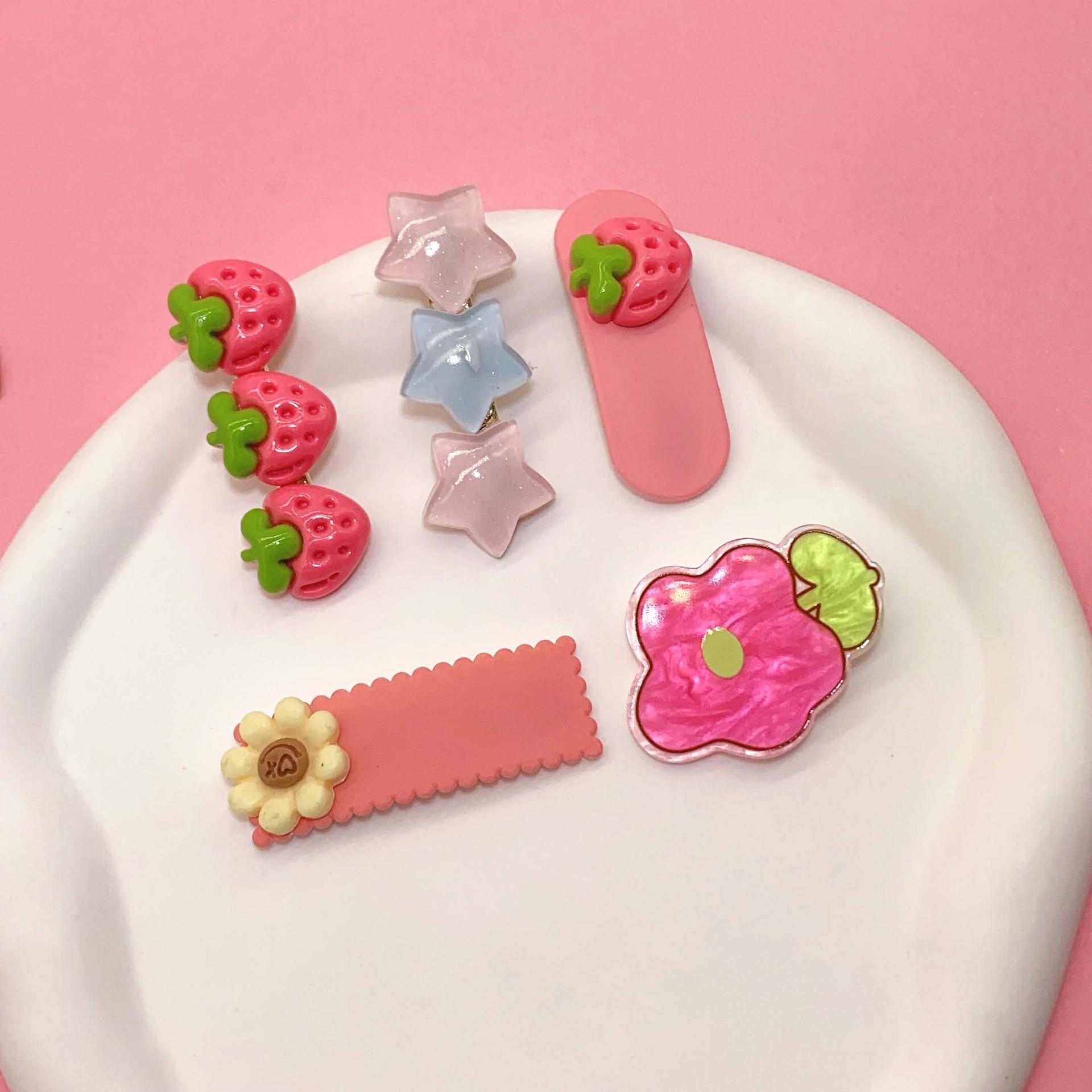 Golden butterfly shell hairpin, Pink Bear Hairpin, Pink Strawberry Hairpin, pink stars love hairpin, White but...