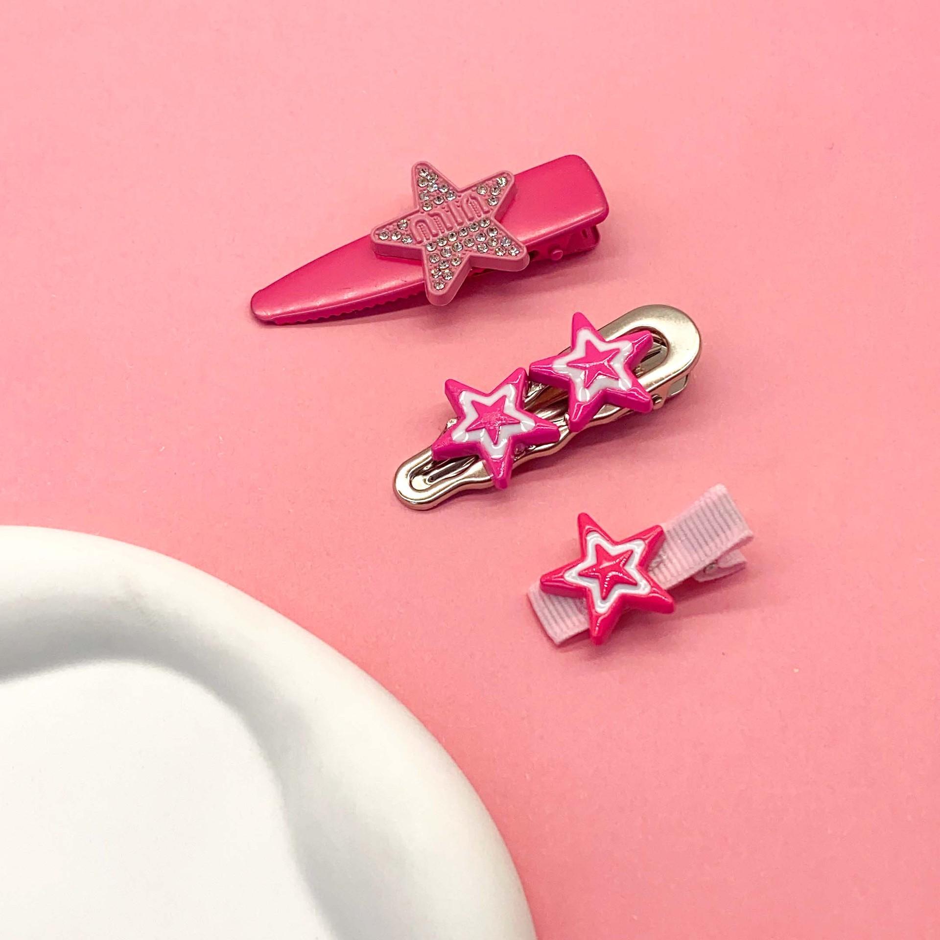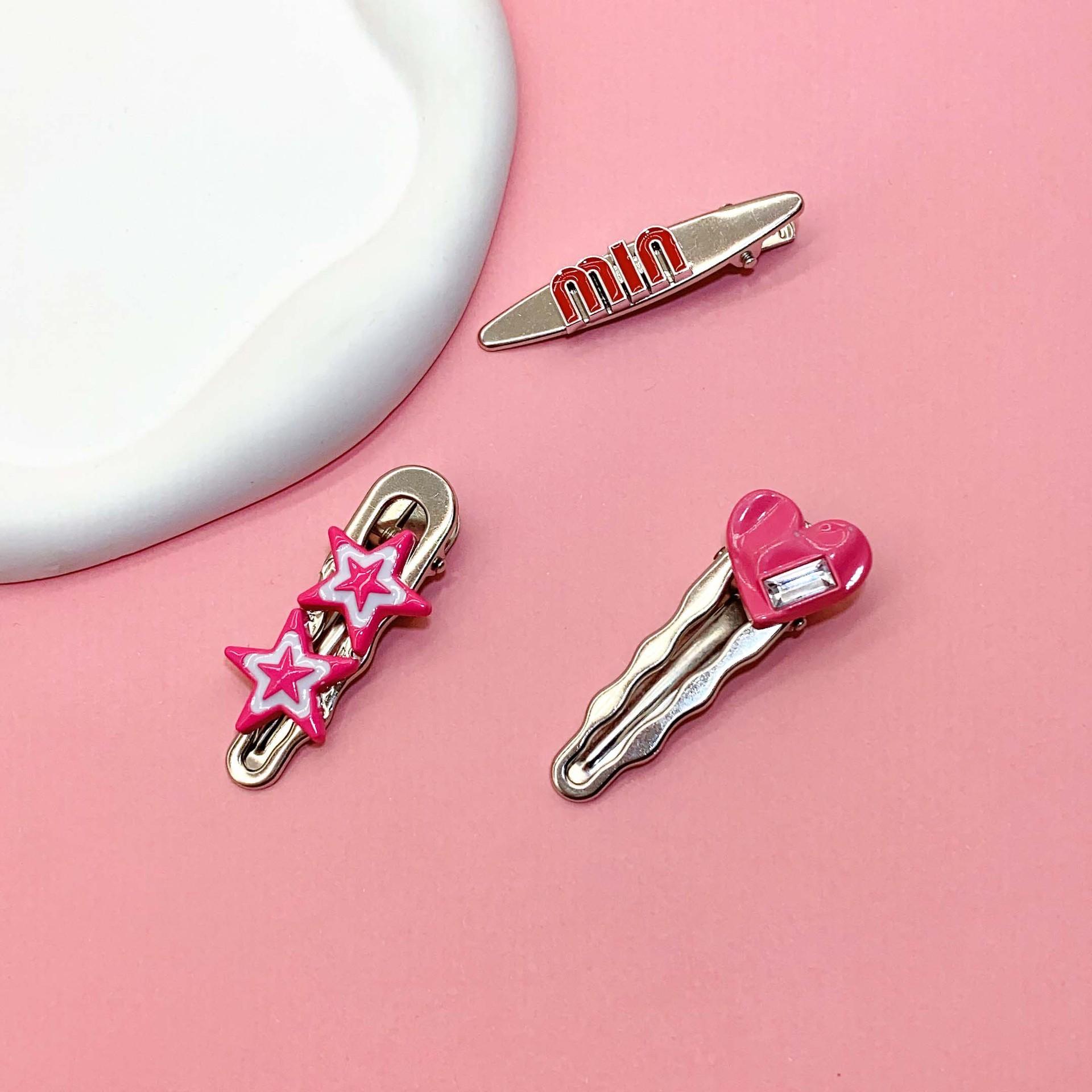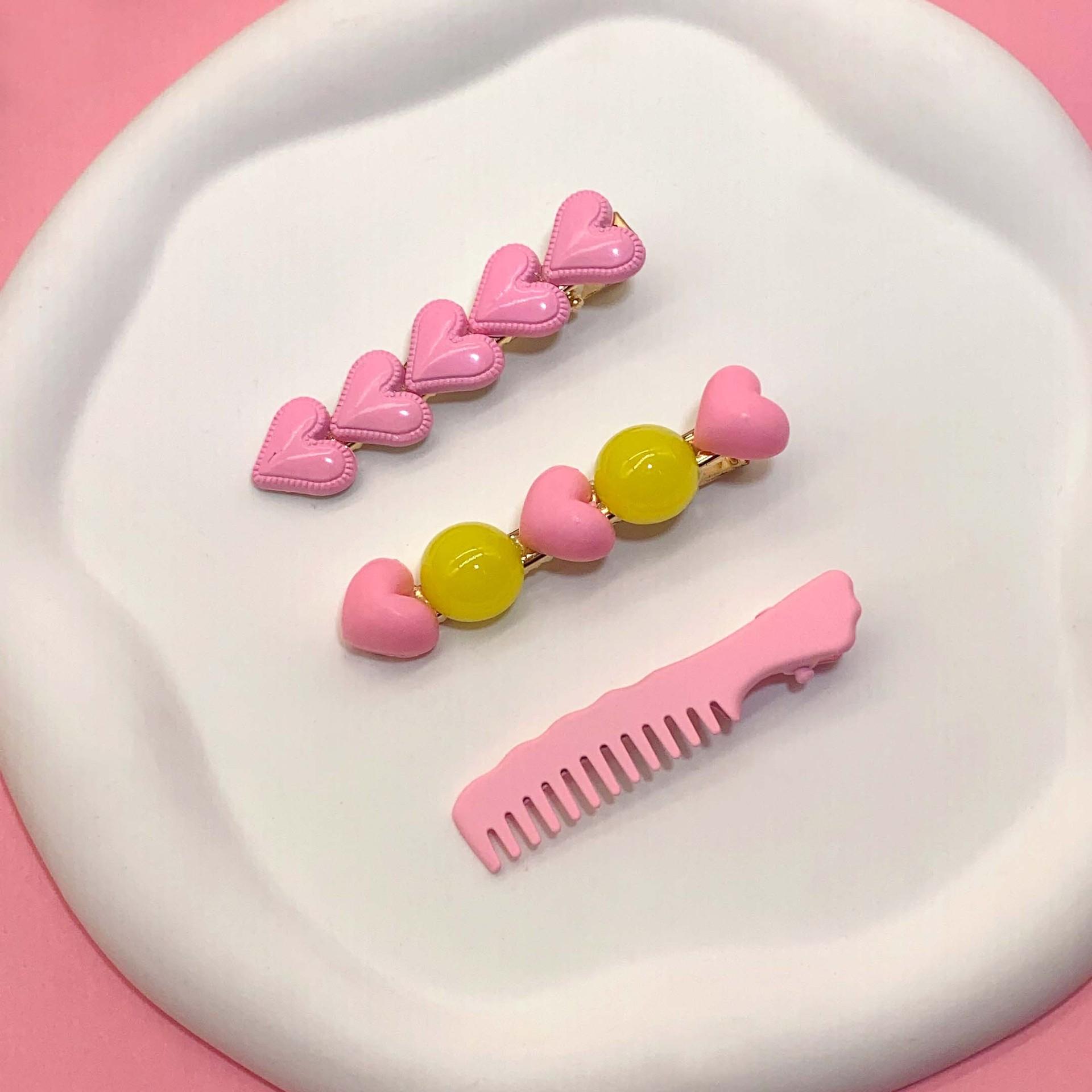 Golden butterfly shell hairpin, Pink Bear Hairpin, Pink Strawberry Hairpin, pink stars love hairpin, White but...