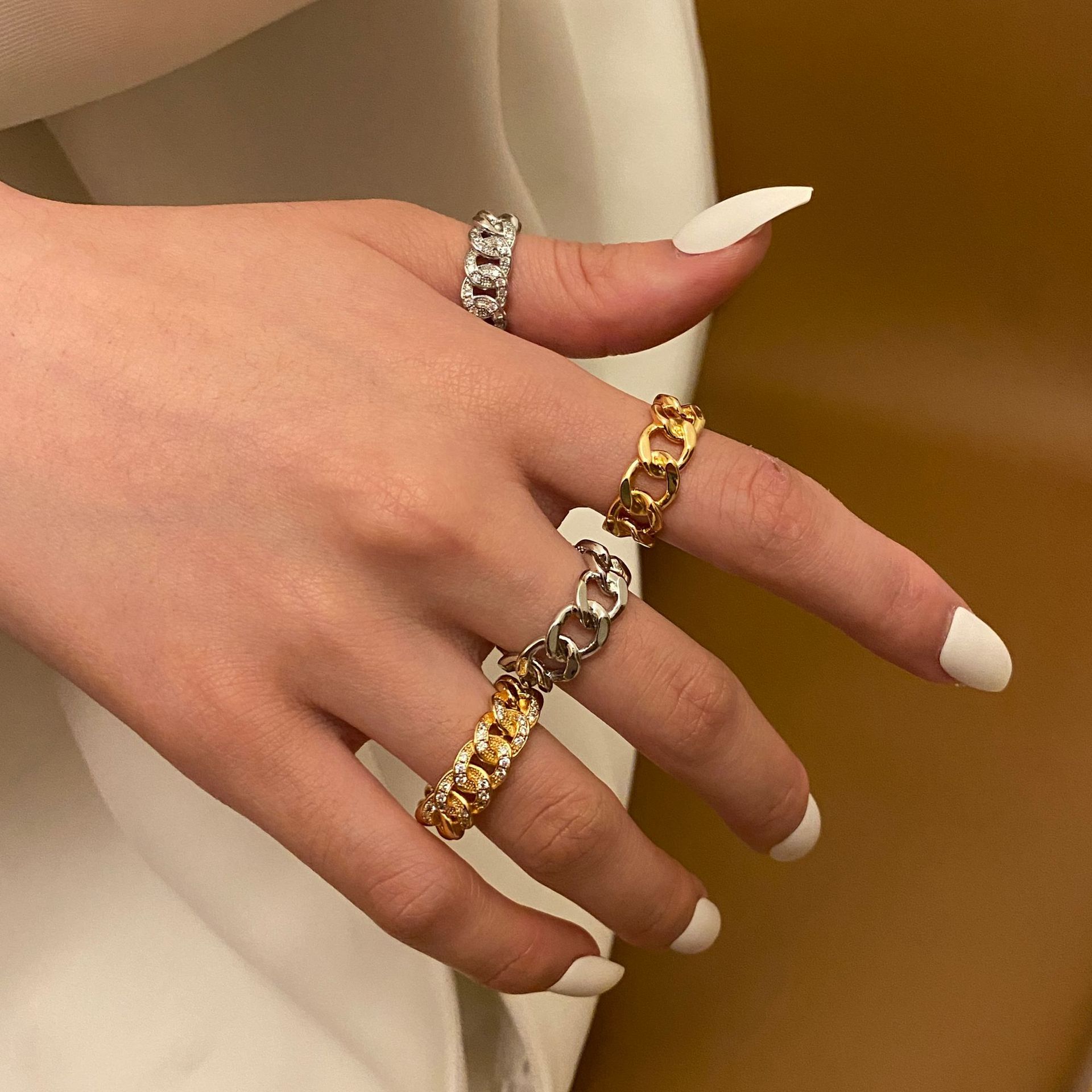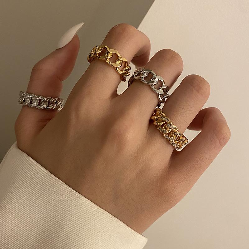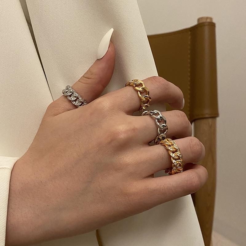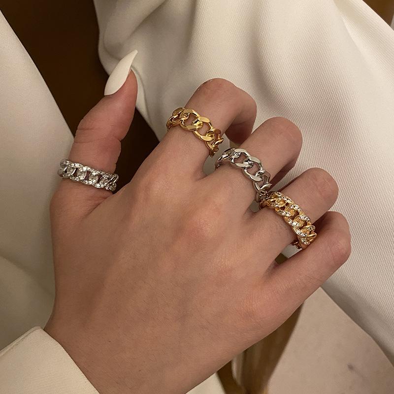 Anillo de cadena de estilo nuevo japonés y coreano que combina con todo, diseño de nicho, joyería de apertura para niña, elegante anillo de diamantes con incrustaciones de estilo coreano