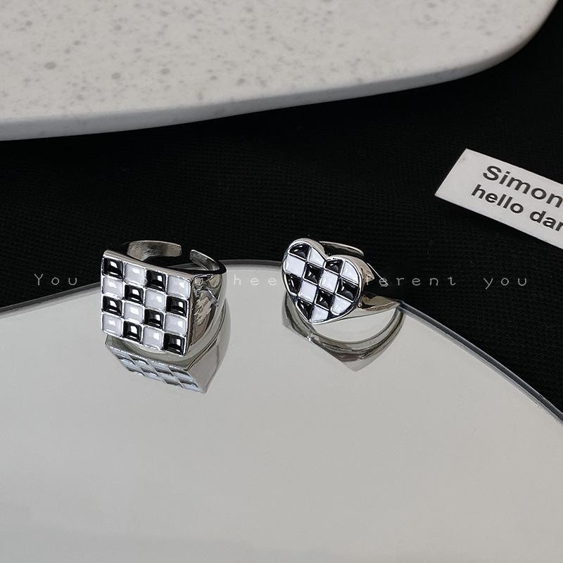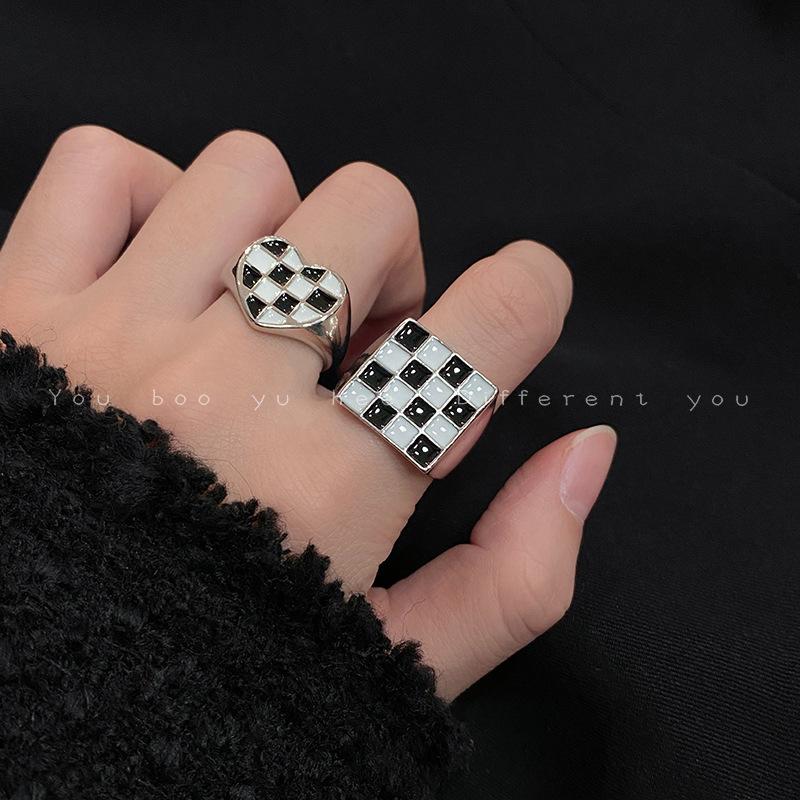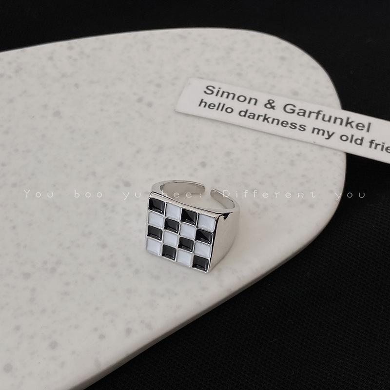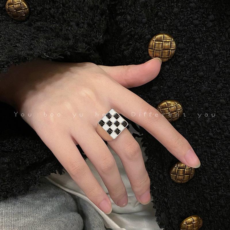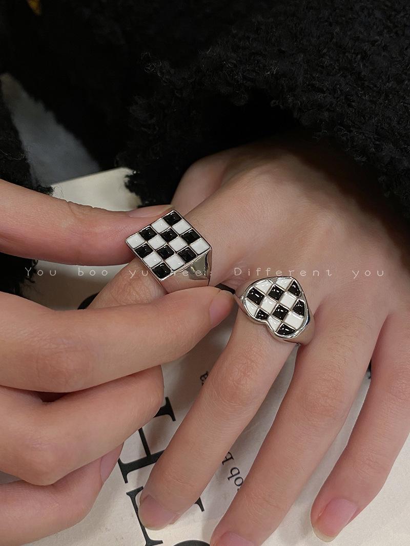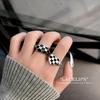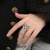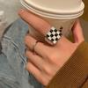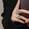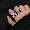 Anillo Ajedrez Esmalte Goteado Color Empalmado Moda Retro para Mujer Anillo de Dedo Abierto de Borde Ancho Plata S925 Anillo de Dedo Comida Moda