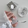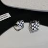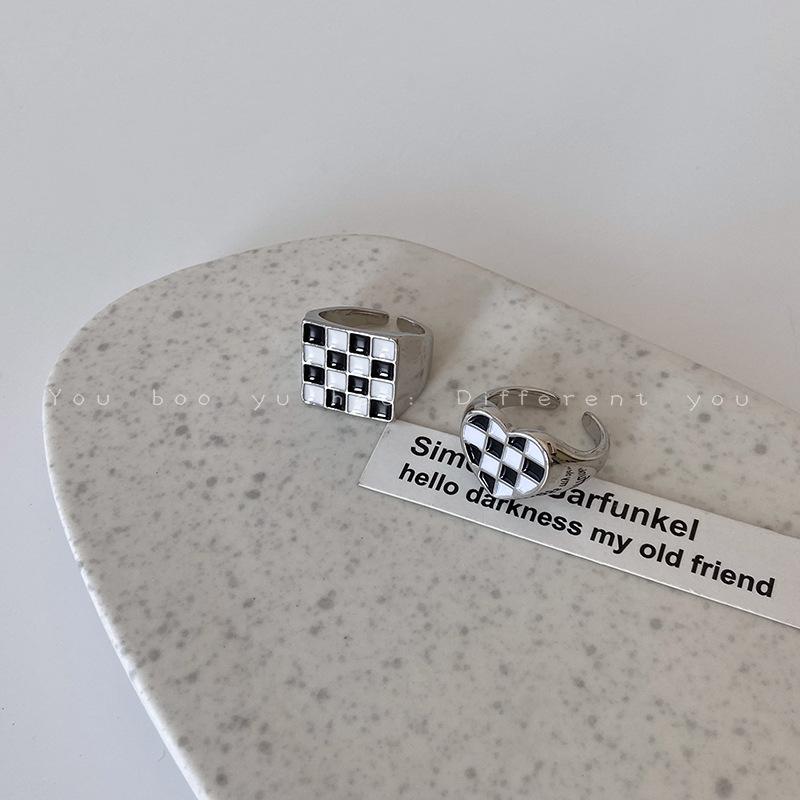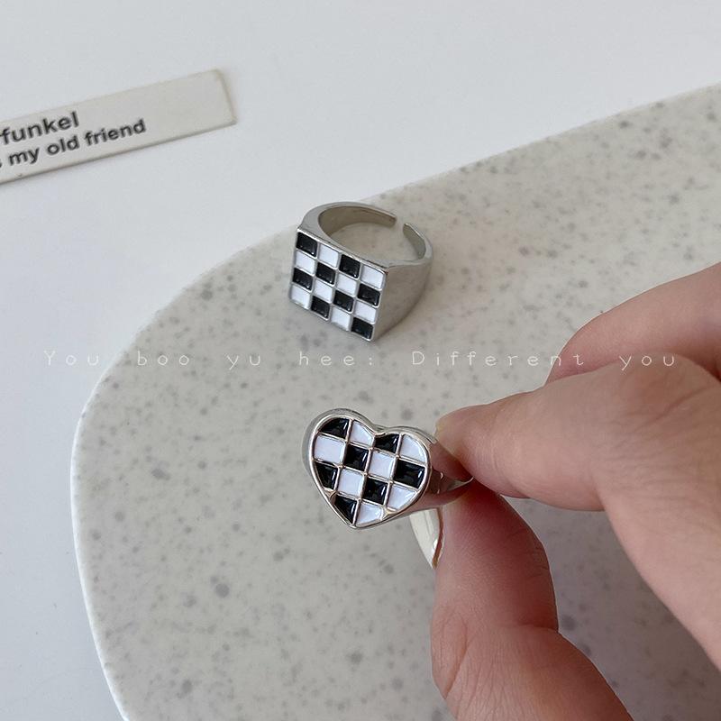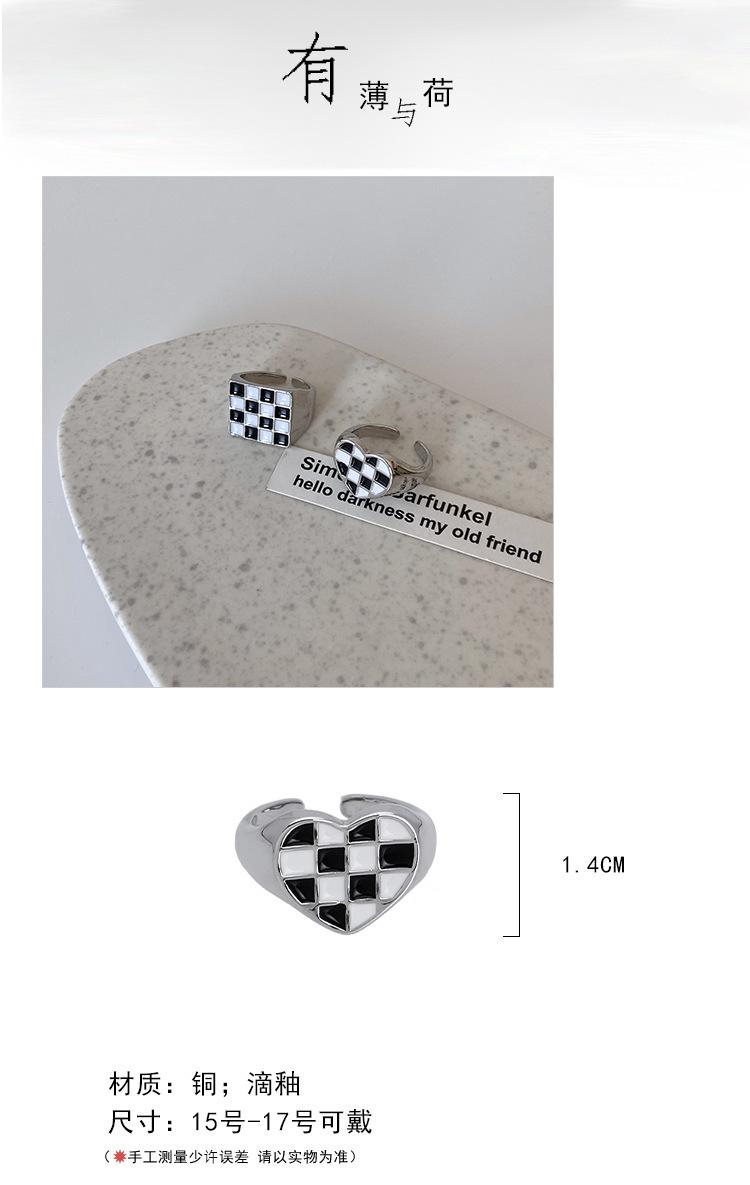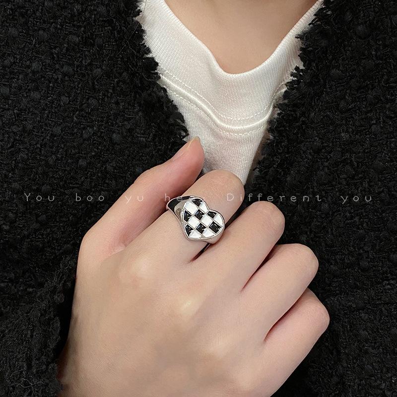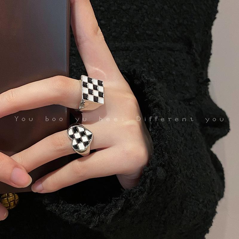 Anillo Ajedrez Esmalte Goteado Color Empalmado Moda Retro para Mujer Anillo de Dedo Abierto de Borde Ancho Plata S925 Anillo de Dedo Comida Moda