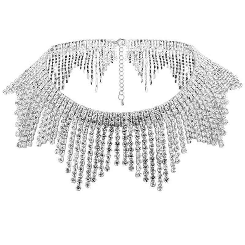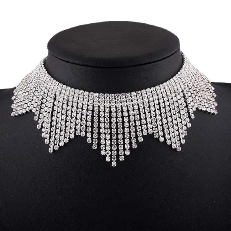 Collar de borlas de diamantes de imitación de moda de venta transfronteriza, joyería nupcial, collar de clavícula de cristal sexy