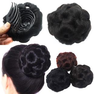 Peluca de media bola para mujer, clip de garra de nueve flores, postizo con clip, forma de cabeza de novia, anillo para cabello rizado, clip de agarre para cabeza con forma de capullo de flor | |